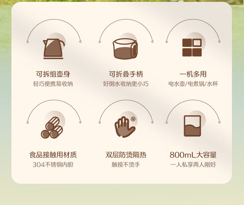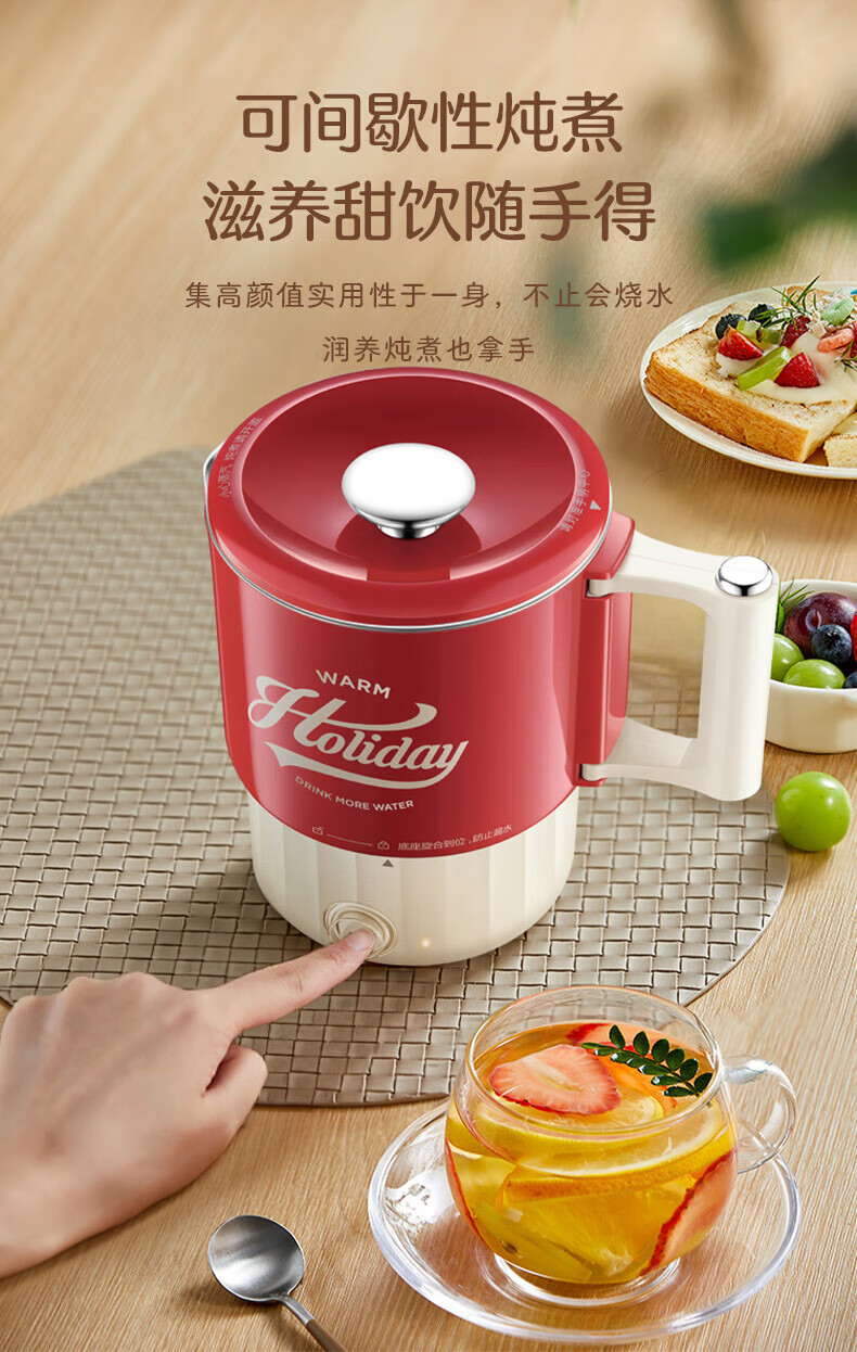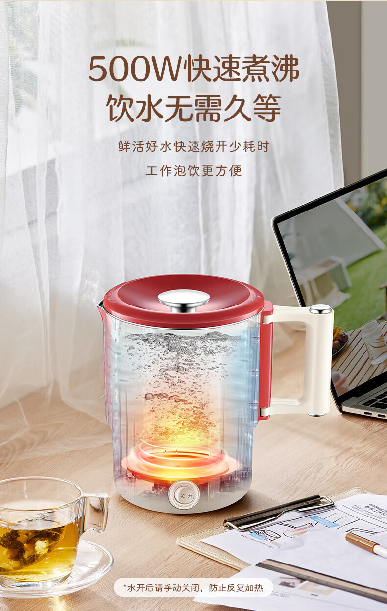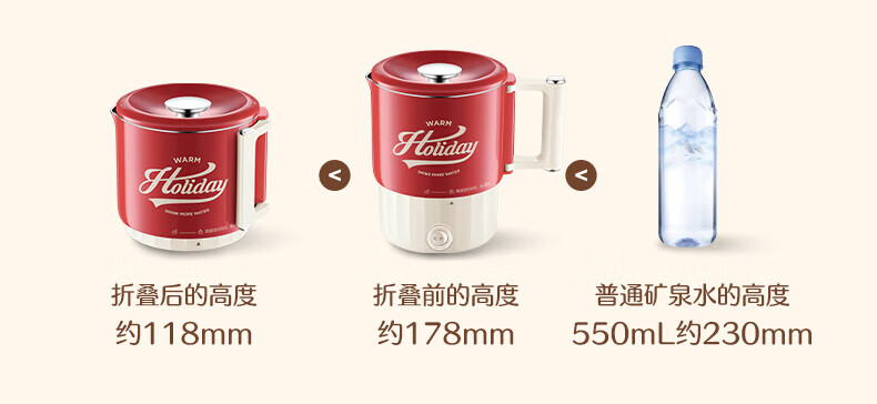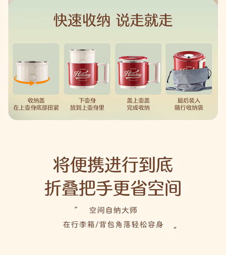 苏泊尔(SUPOR)SW-08S02A多功能烧水壶双层防烫便携式可折叠水壶 泡面 中国红折叠壶