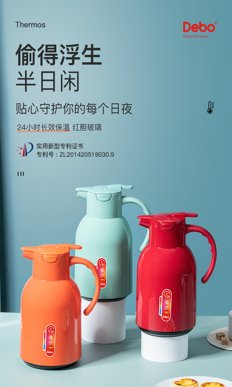 Debo德铂-维莱特红胆保温壶1.45L 专利技术平稳气压排气孔 安全可靠