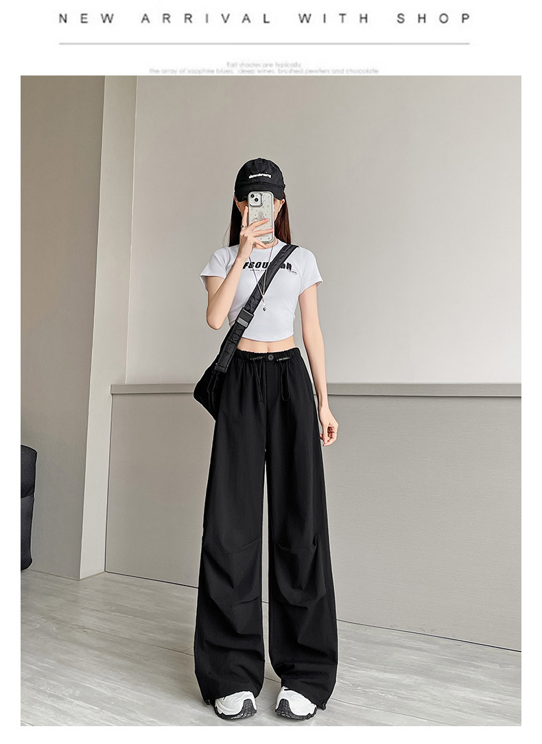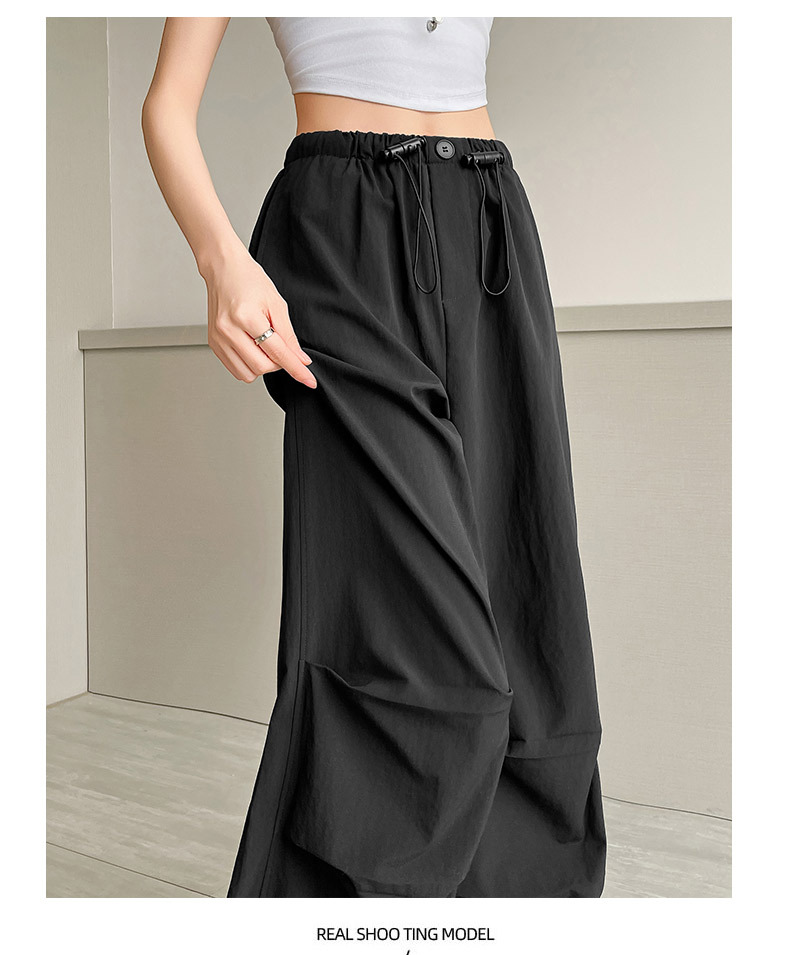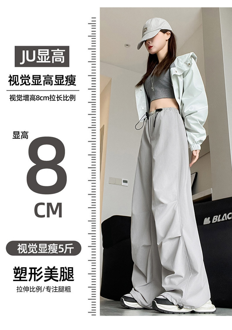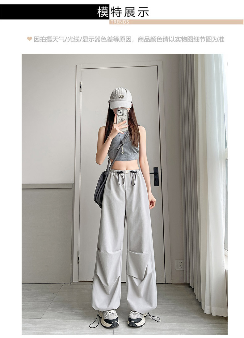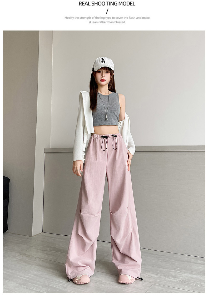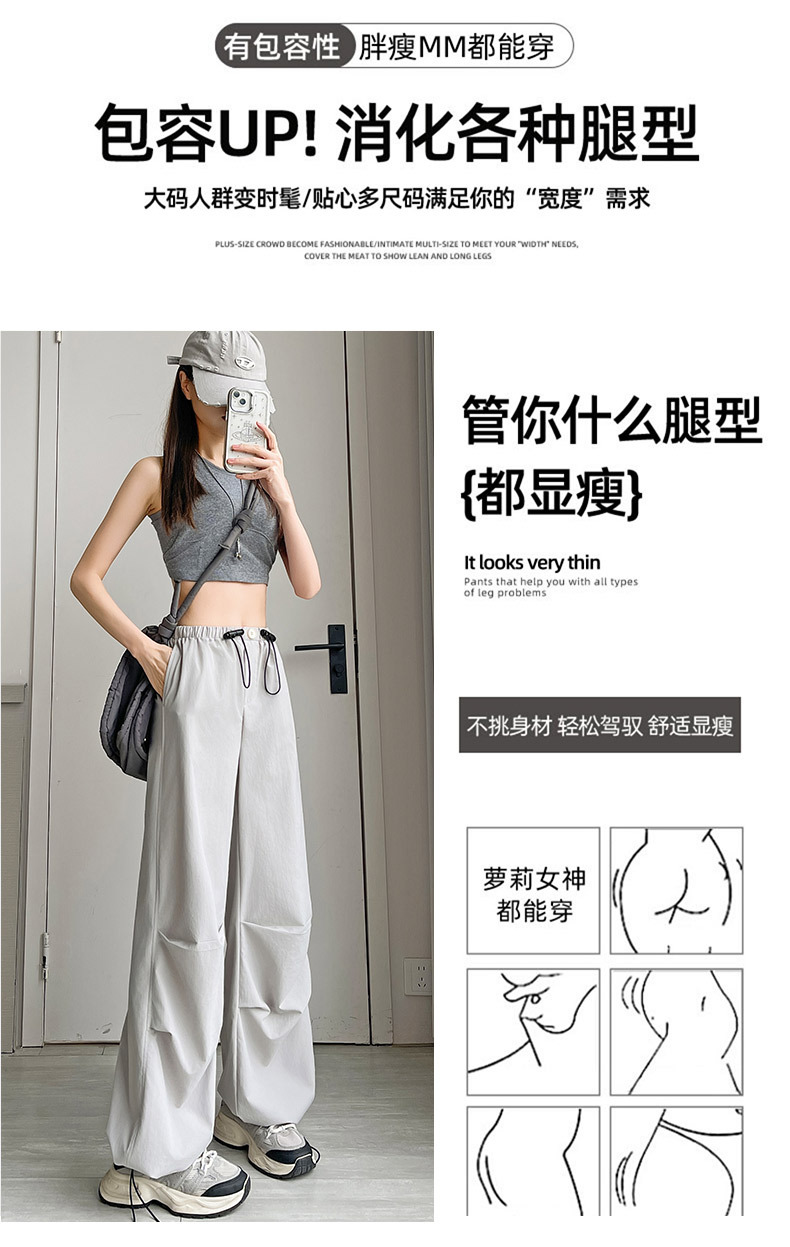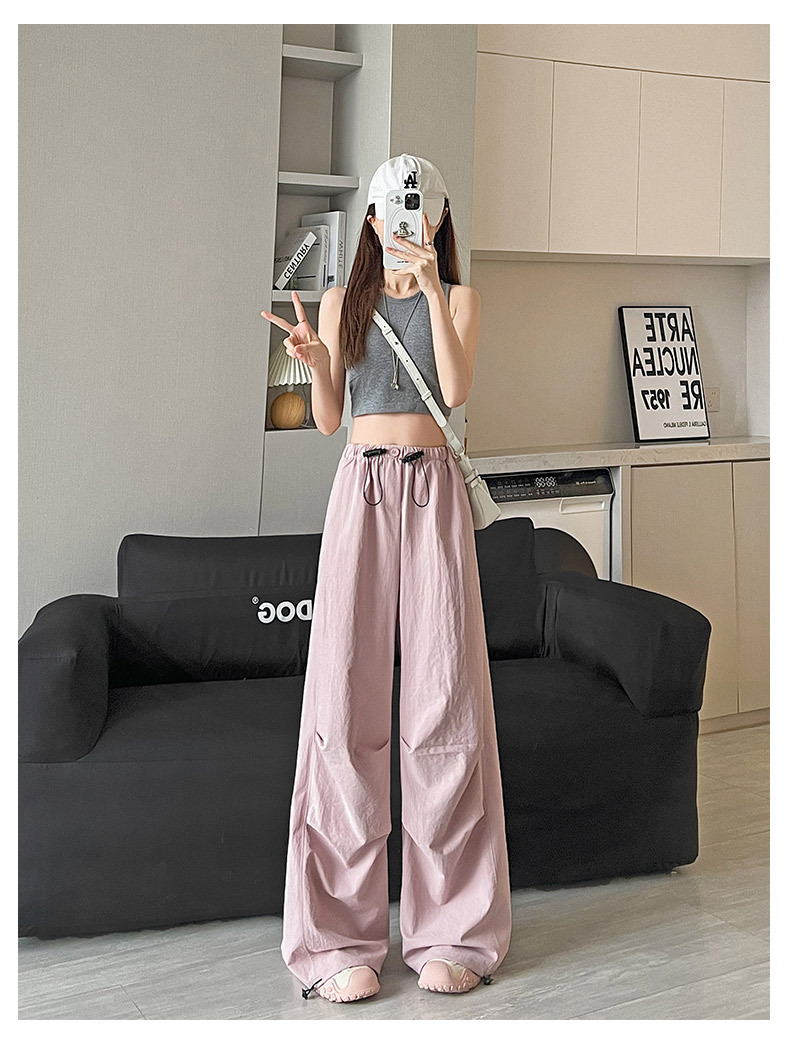 夏季新款女高腰宽松垂感酷飒风休闲运动阔腿裤美式速干工装裤
