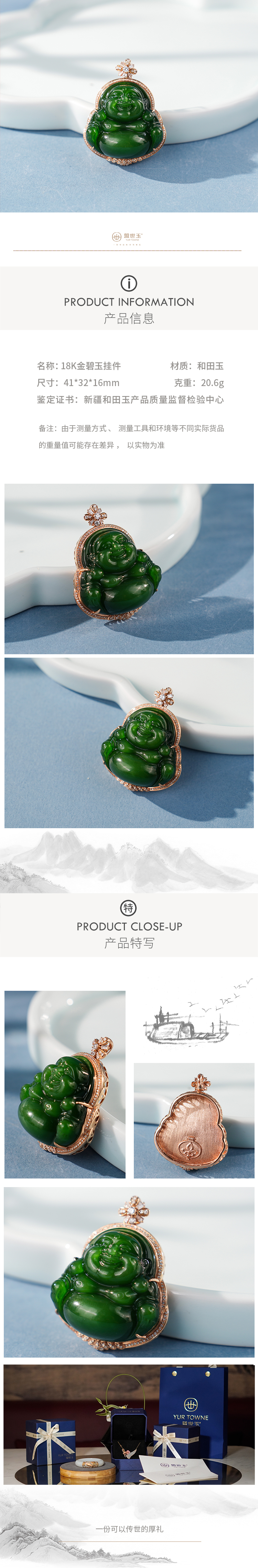 「鎏金岁月」系列【弥烨】金镶碧玉吊坠