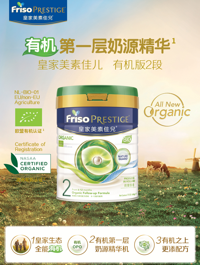 [大罐2段]港版有机皇家美素佳儿Friso Prestige较大婴儿配方奶粉2段(6-12个月)800g