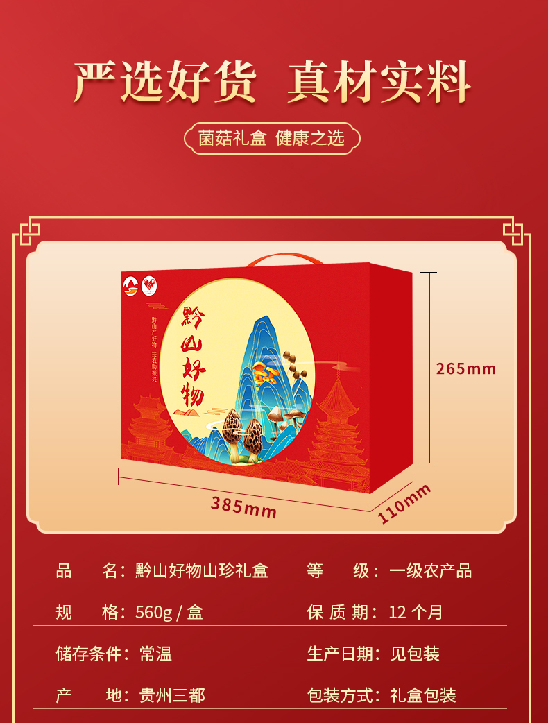 【贵州帮扶】丰收年山珍礼盒 560g (香菇120g*1、虫草花120g*1、黑木耳120g*1、丑耳200g*1)