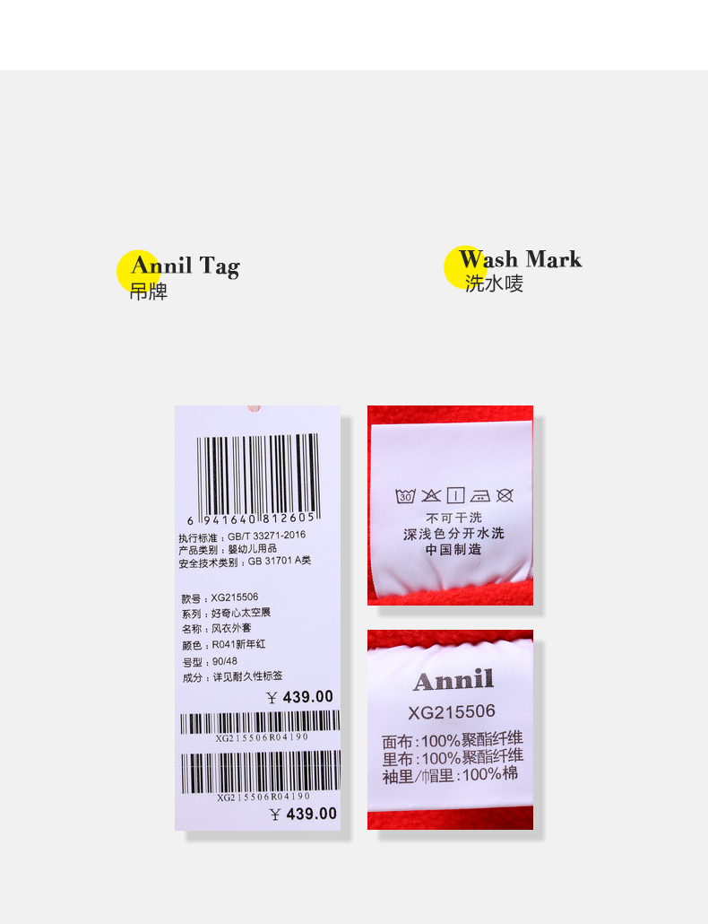 安奈儿女童风衣外套xg215506