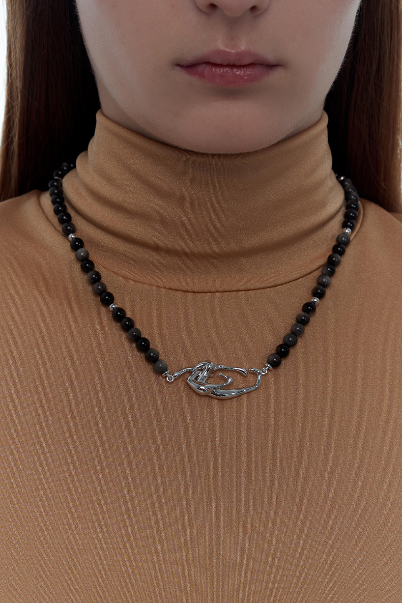 KVK2021时尚黑玛瑙毒液拼接项链女小众设计感轻奢饰品拼接项链