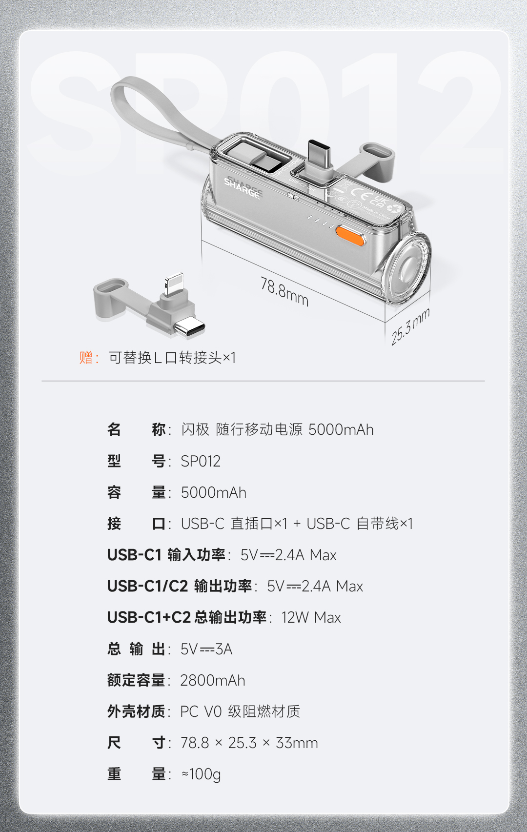 闪极-随行mini 移动电源 5000mAh