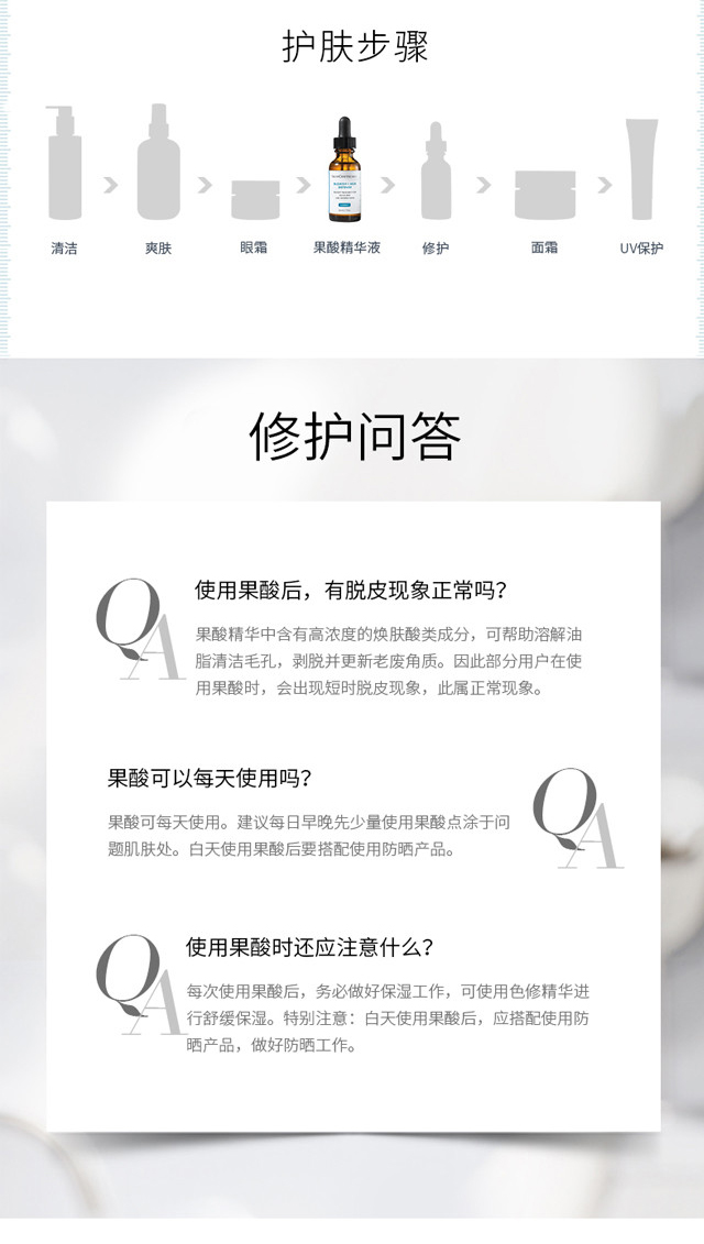 ✅含有五种酸类:甘醇酸、二元酸、辛酰水杨酸、柠檬酸、水杨酸,所以又叫五酸精华