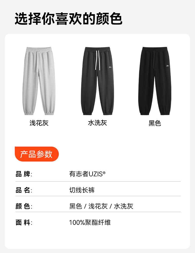 有志者UZIS 重磅针织运动长裤男美式休闲秋季篮球跑步束脚裤[切线