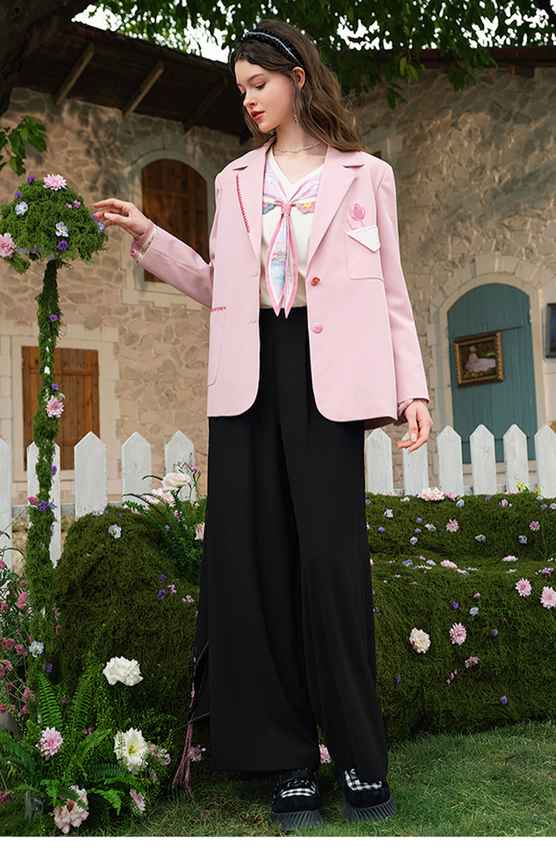 两三事皎月先行2024夏季新款简约米白色西装裤女宽松休闲裤