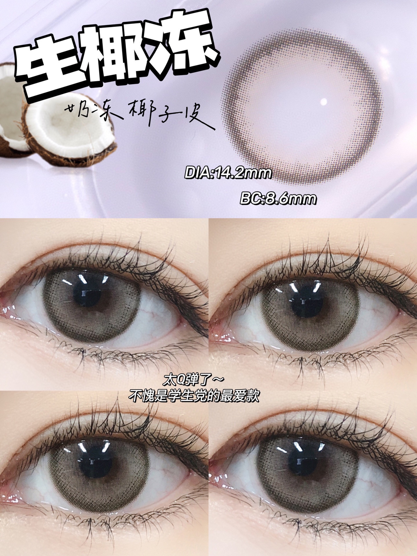 【平价年抛】生椰冻 Hymora | 中直径14.2,着色13.4 | 【同品牌多副更划算,选款色板在详情页138一副 198两幅 238三副】,亚麻棕色美瞳