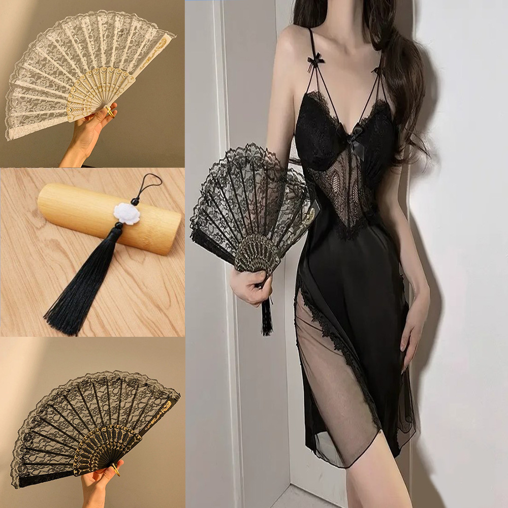 【新中式❗️布艺古风扇子】小巧便携,目常搭配,出行、纳涼、拍照等❗️折扇中国风汉服旗袍蕾丝折叠扇中华小厨娘中华娘