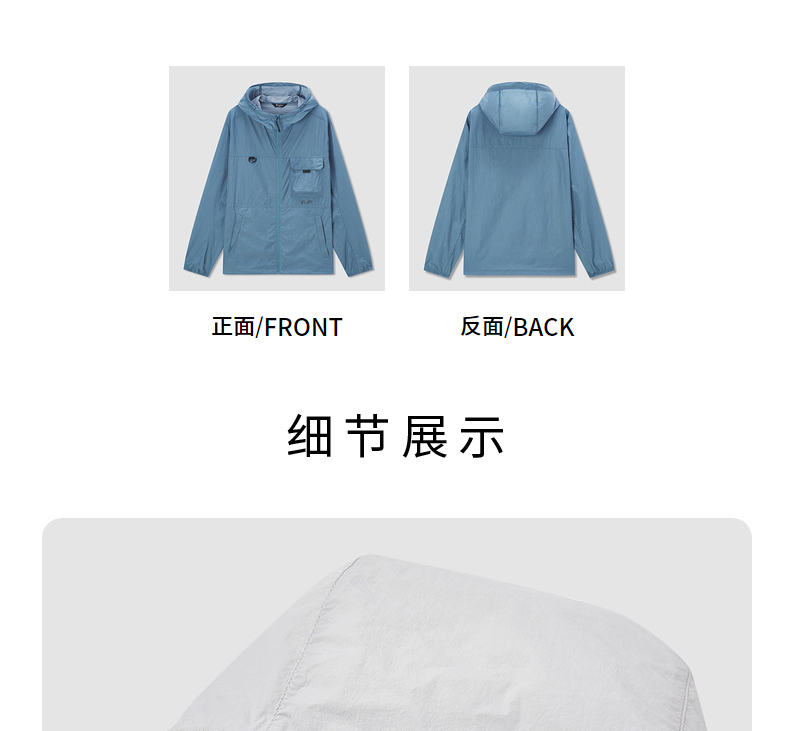 探路者皮肤衣男 22春夏新款户外运动舒适轻薄透气UPF40+连帽休闲上衣TAZK81567