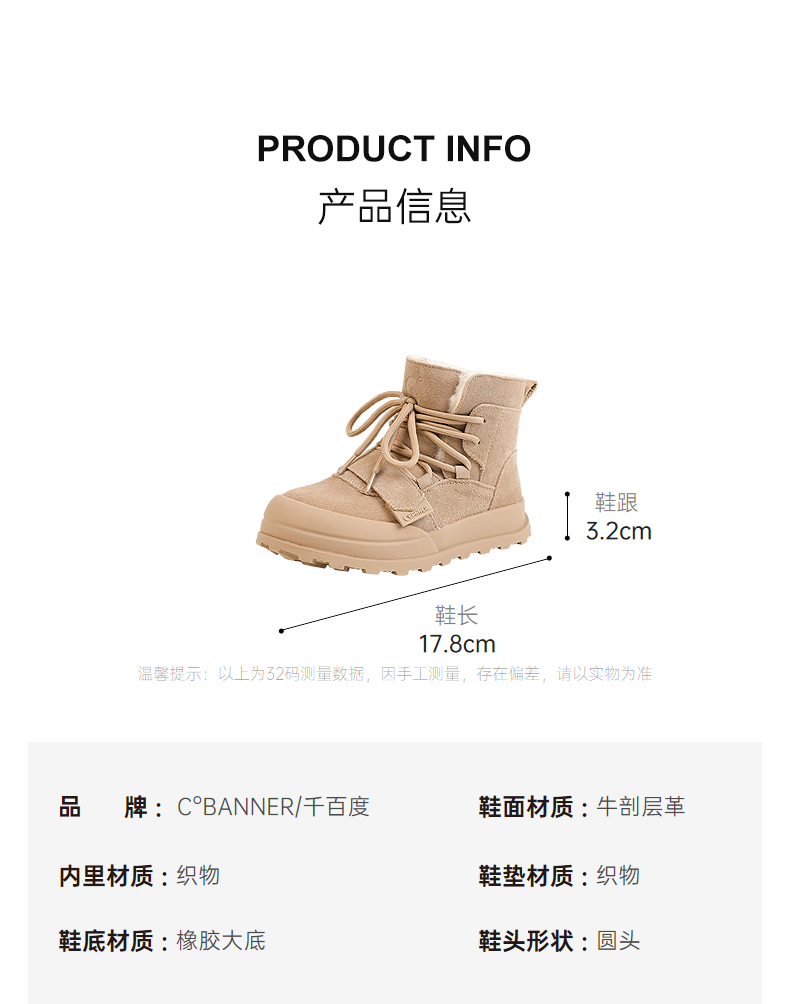千百度冬季雪地靴圆润宽敞鞋头童鞋A25785033