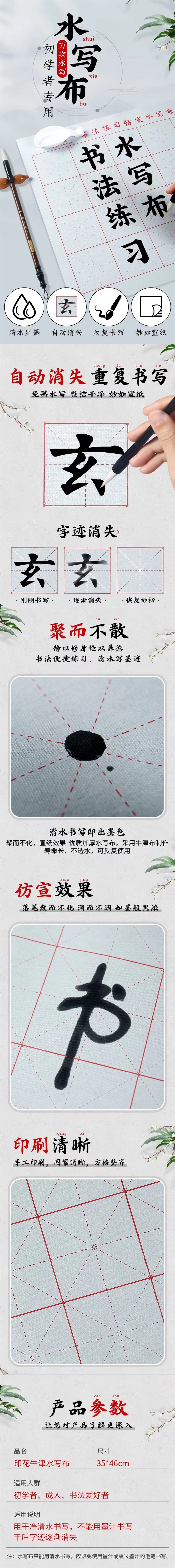 天天练仿宣水写布3546cm米字格 1张 练毛笔字练字兼毫毛笔书法清水布学生初学训练练字