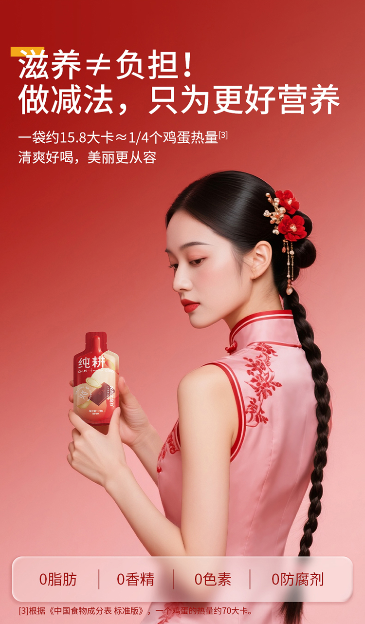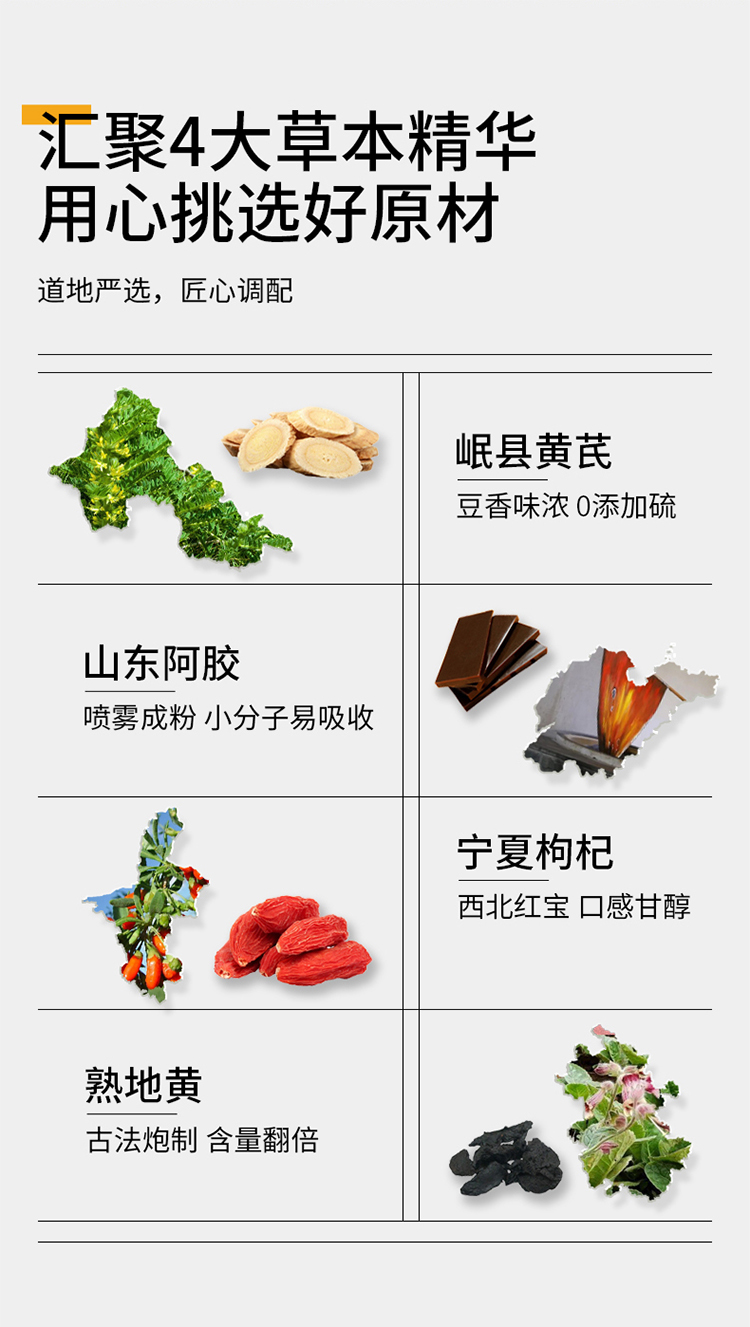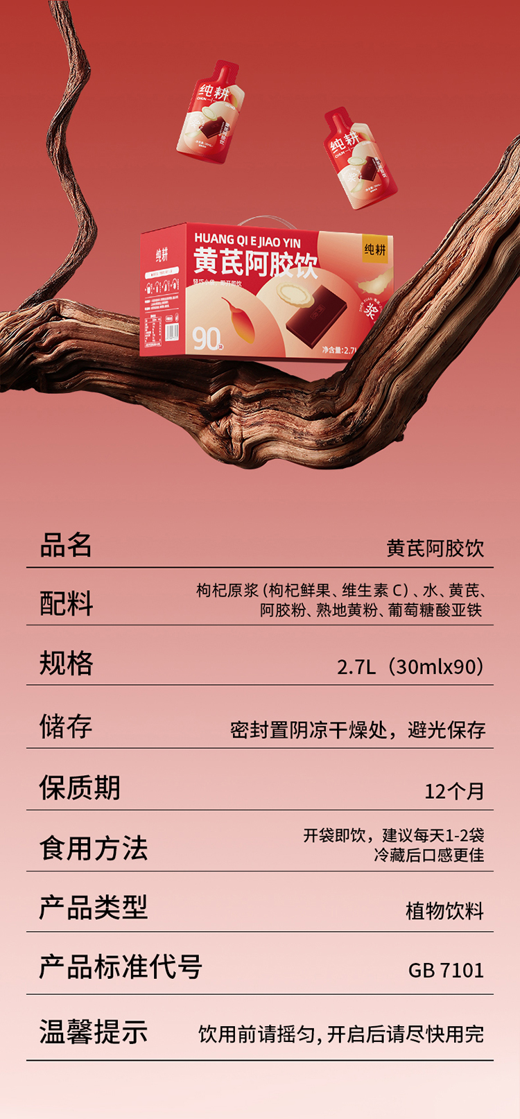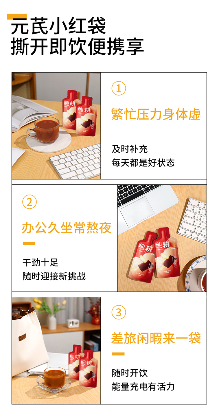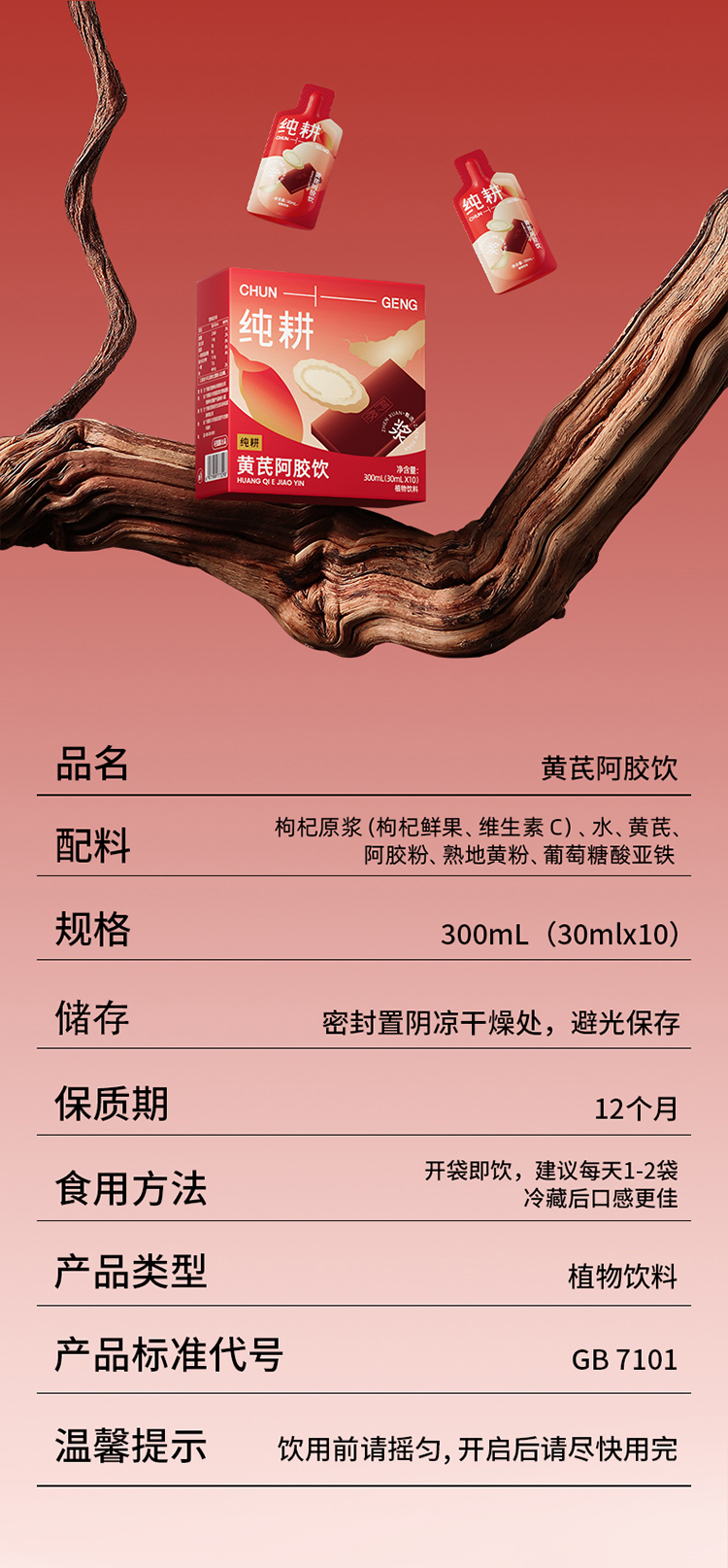 纯耕300ml(10袋)1.2L(40袋)2.7L(90袋)黄芪阿胶饮,每袋30ml;黄芪+阿胶女神饮真驴皮阿胶,丰富铁元素元气满满