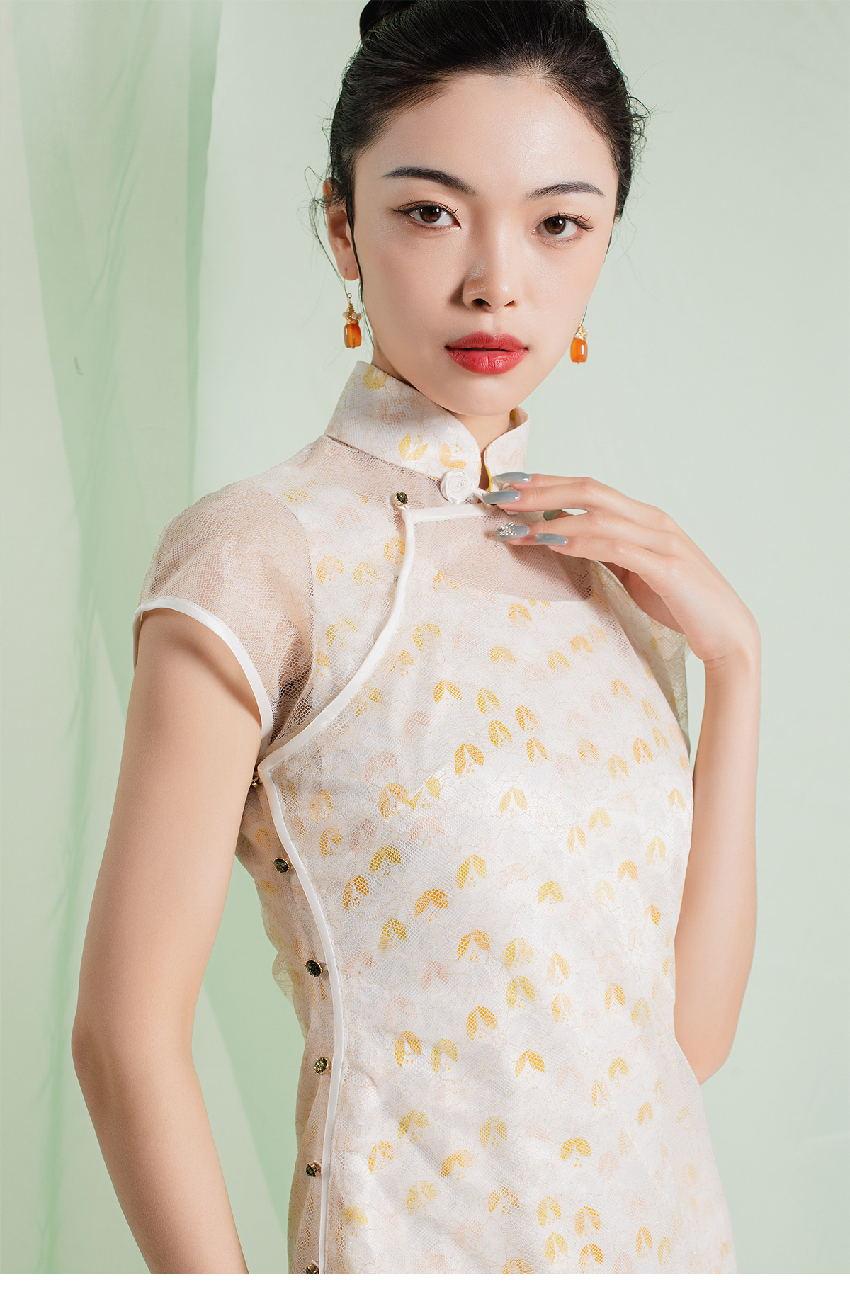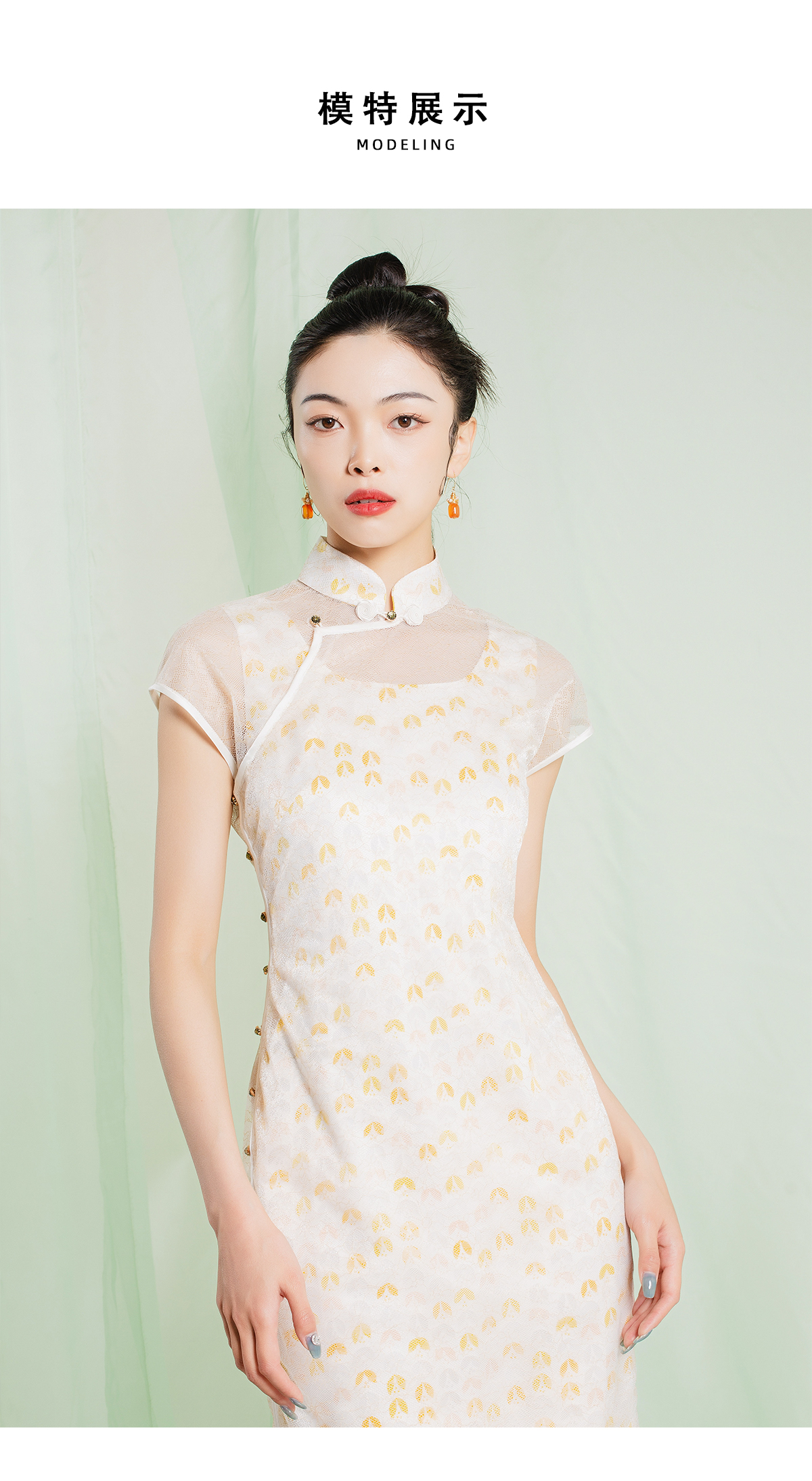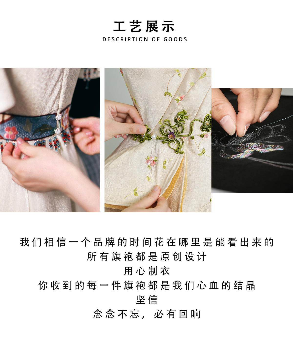 荷言GL旧时闺秀天与娉婷新国风连袖无省古法旗袍2023新品女装