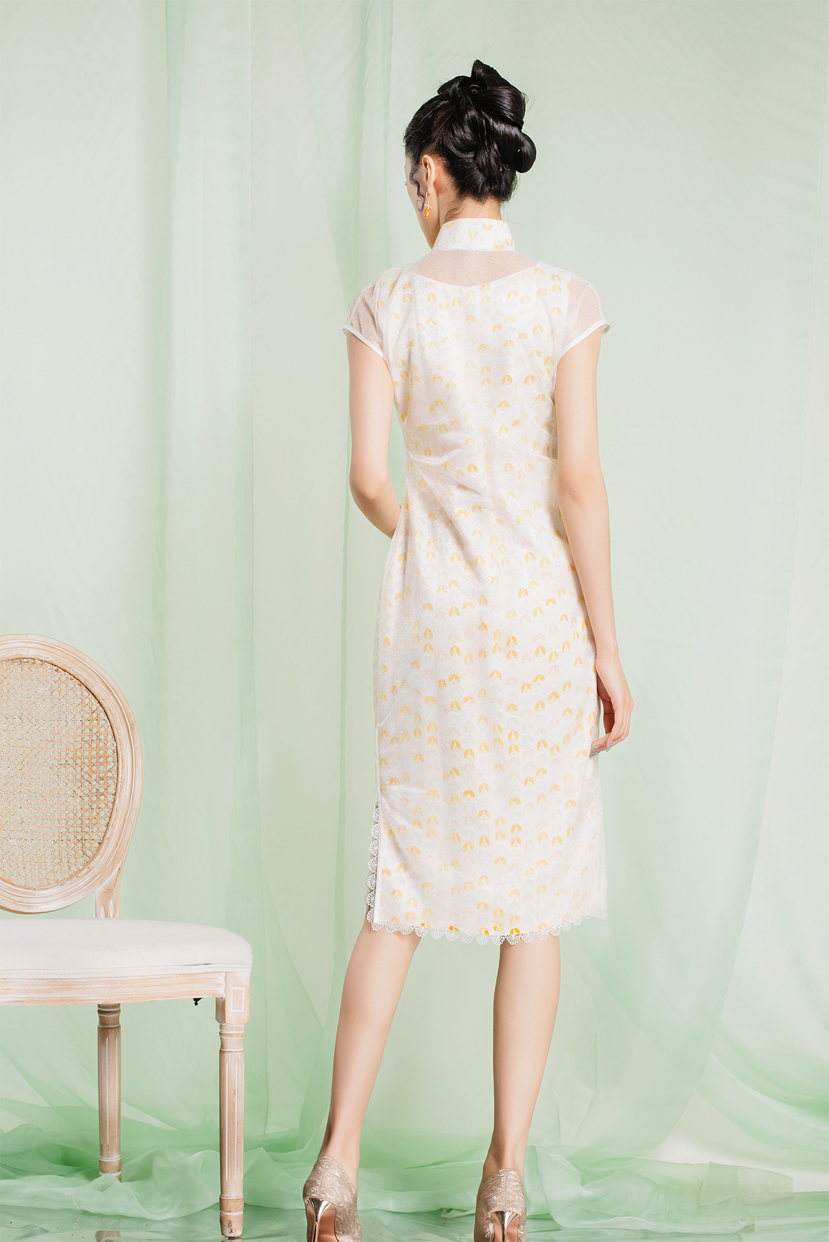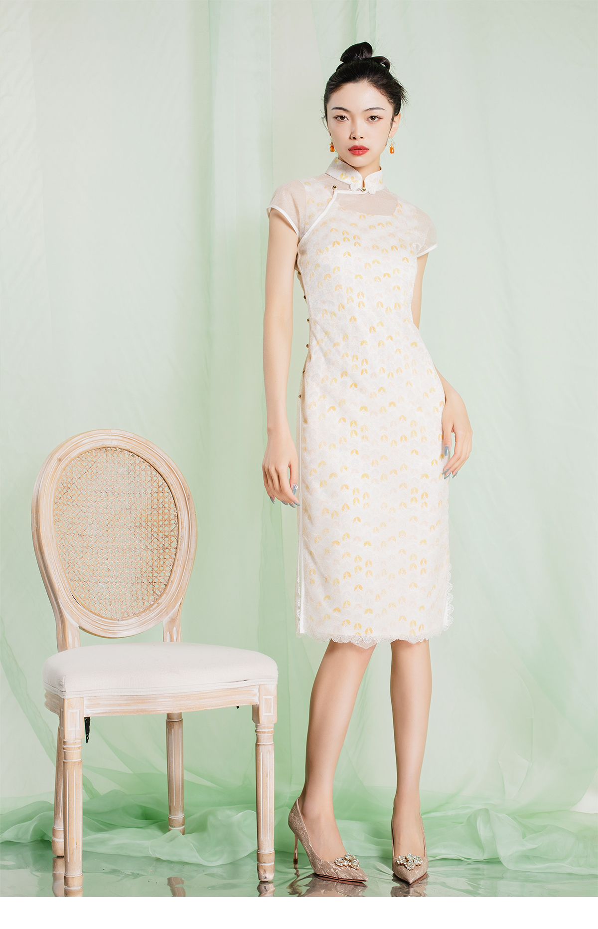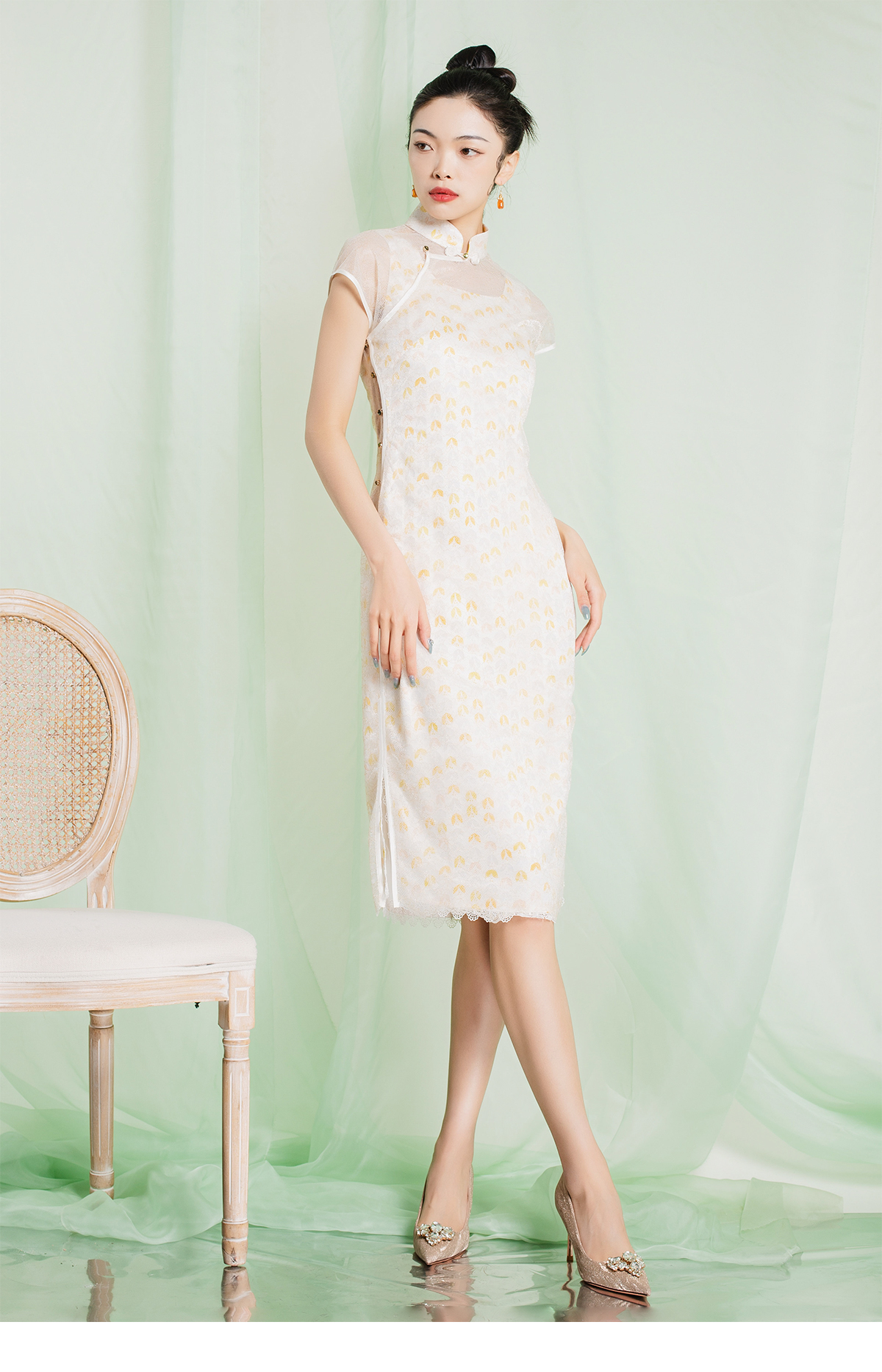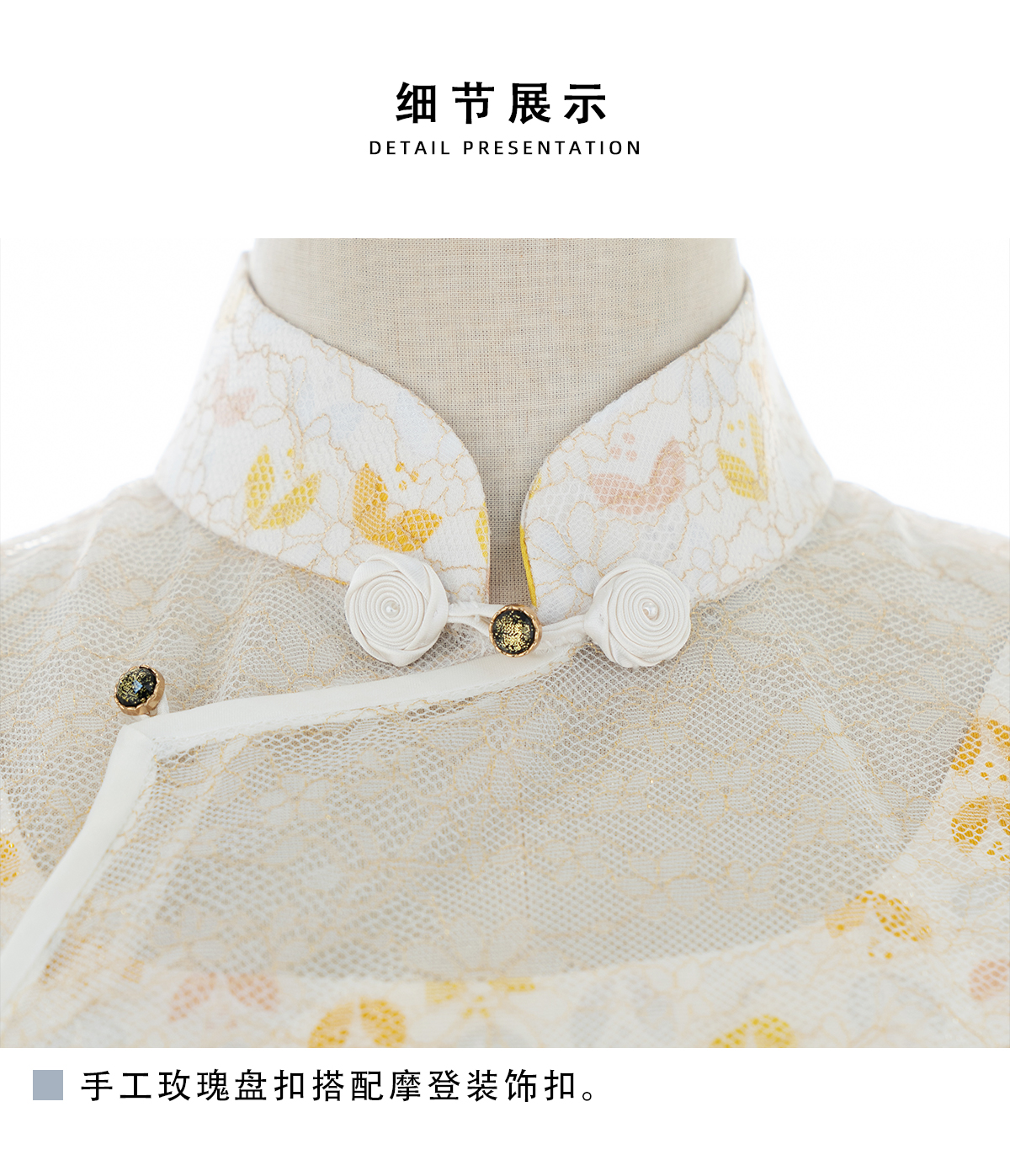 荷言GL旧时闺秀天与娉婷新国风连袖无省古法旗袍2023新品女装