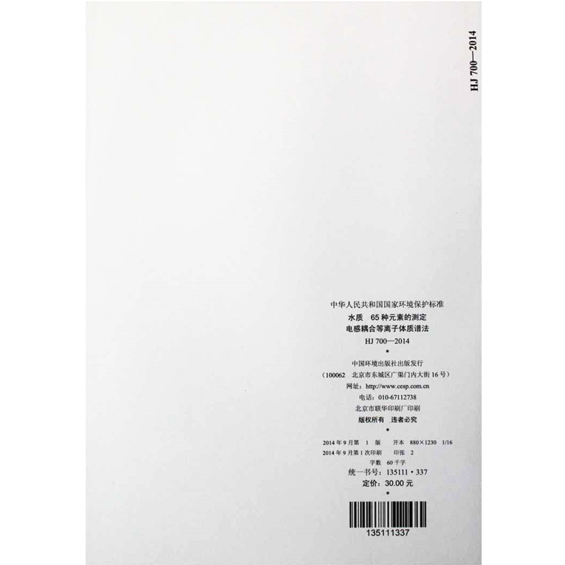 HJ 700-2014 水质 65种元素的测定 电感耦合等离子体质谱法 国家标准 GB 环境保护部 135111337
