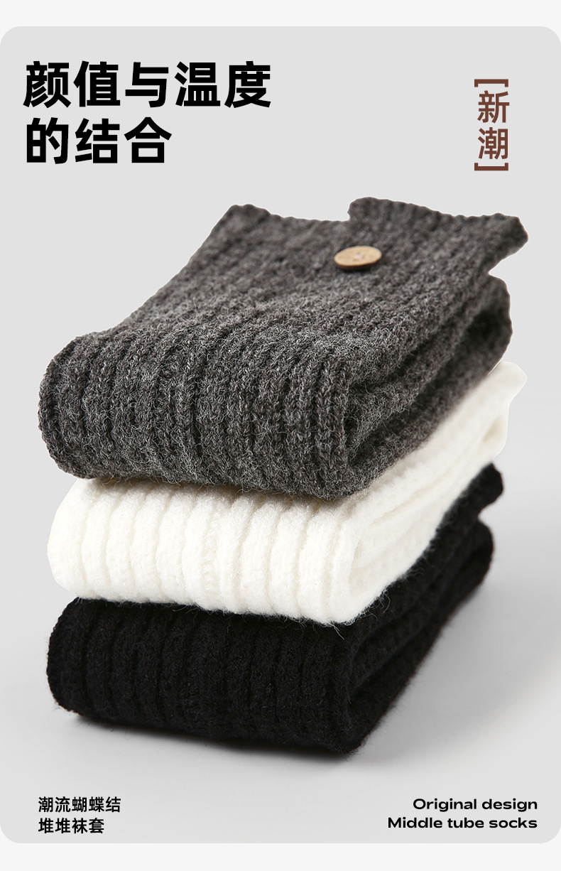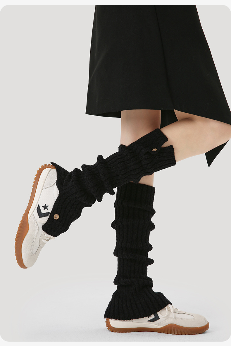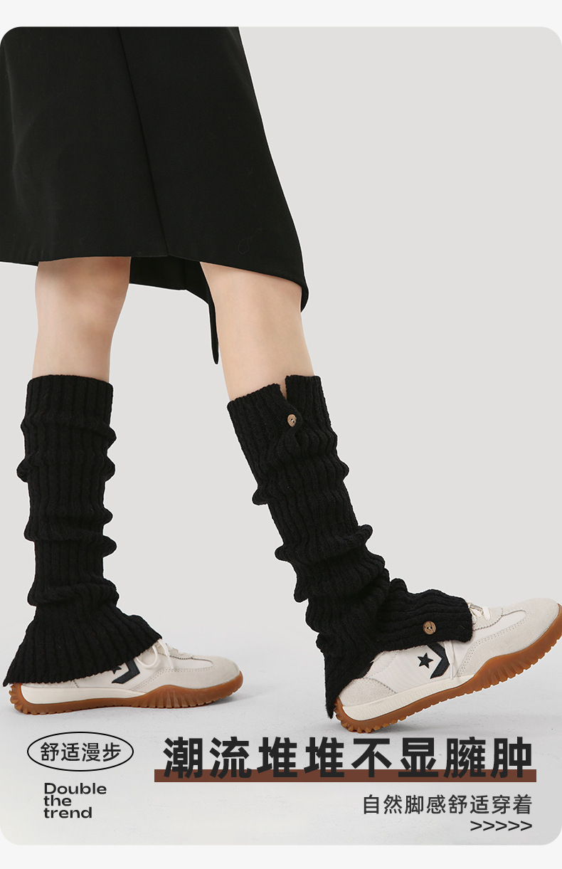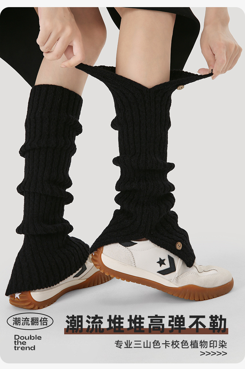 【软软糯糯!时尚加倍!】Renaissance纽扣针织袜套 长款翻边纯色百搭堆堆袜 秋冬保暖腿套潮
