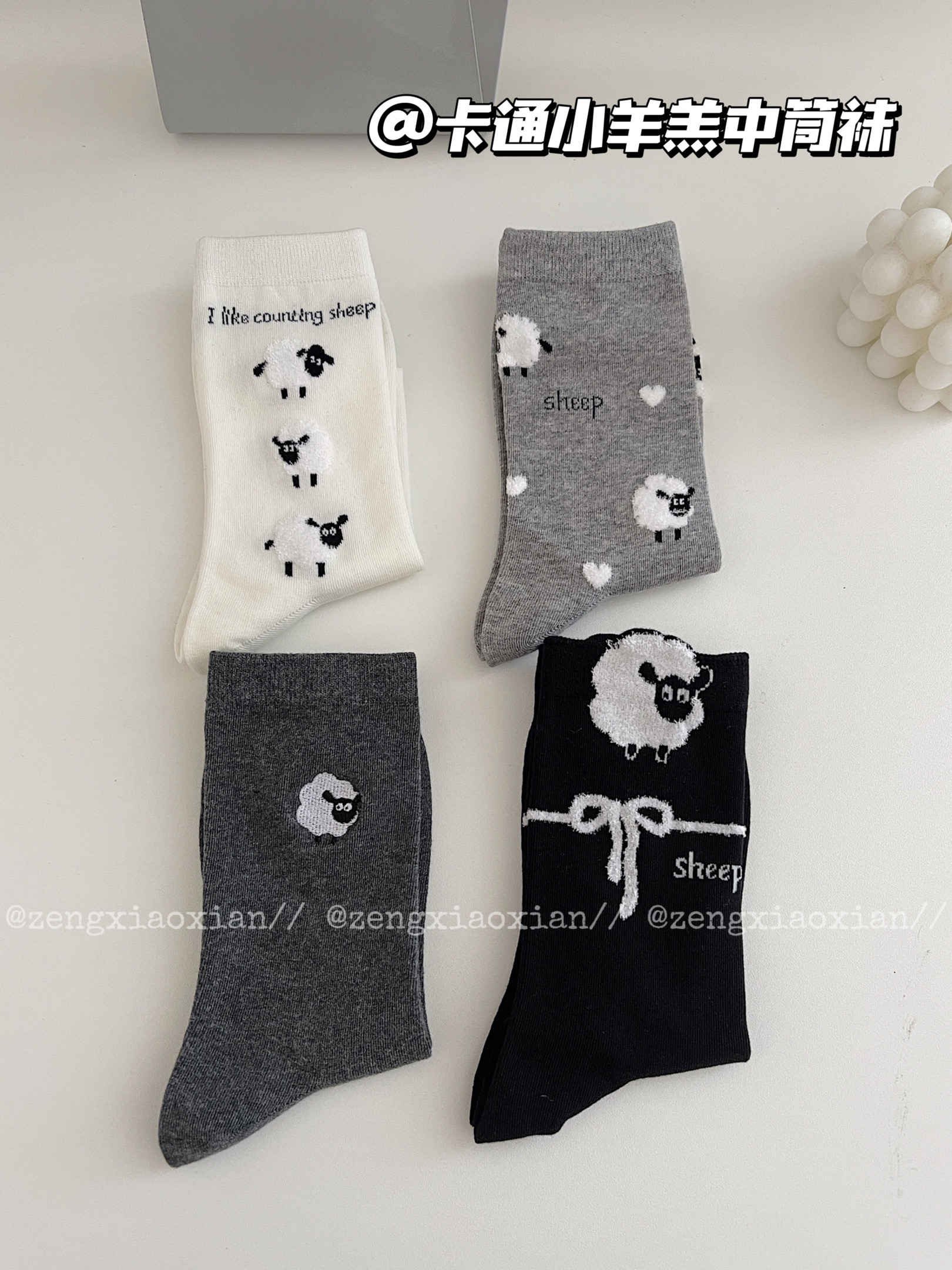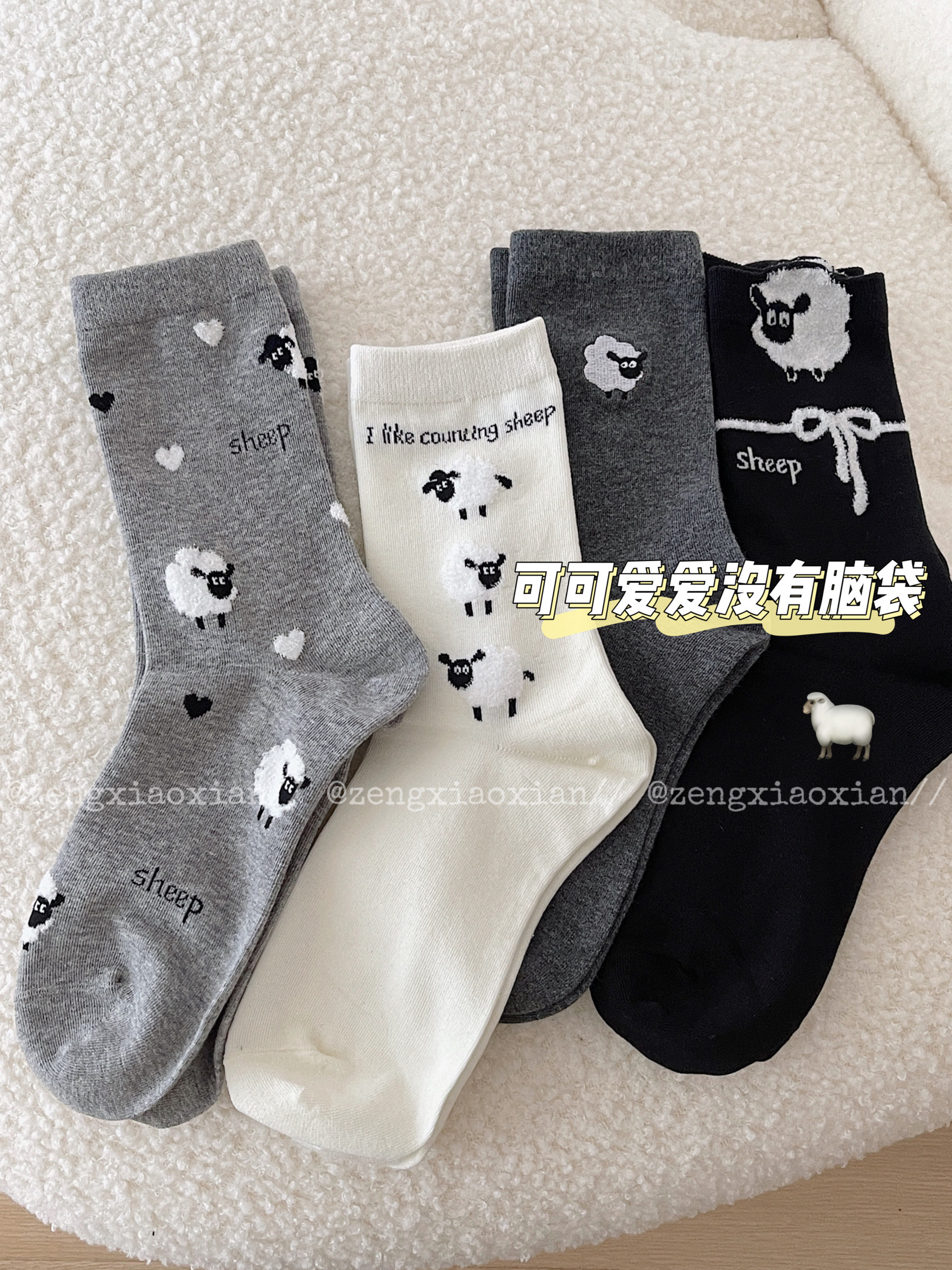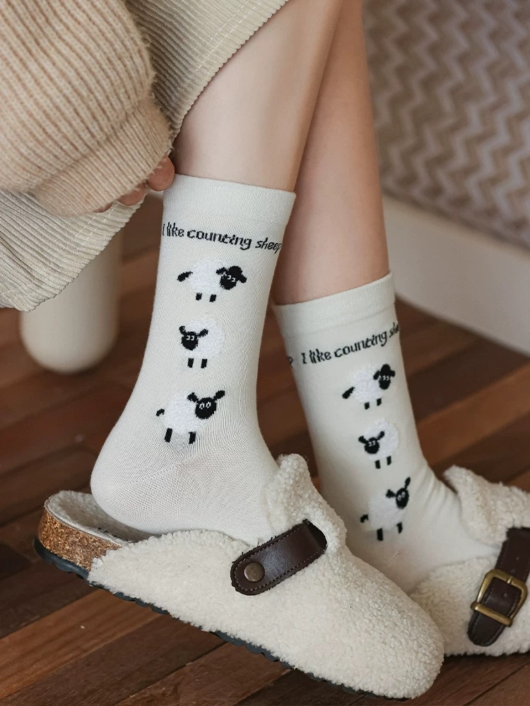 <曾小咸推荐> 卡通小羊羔中筒袜