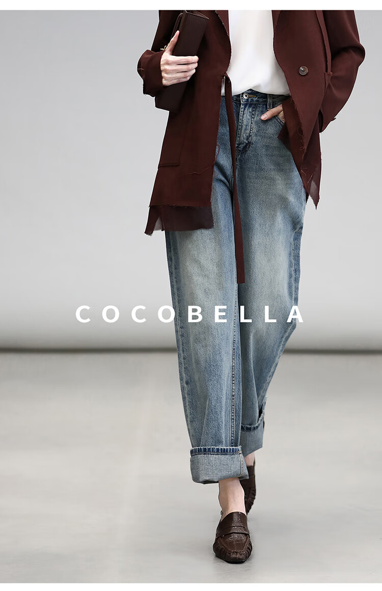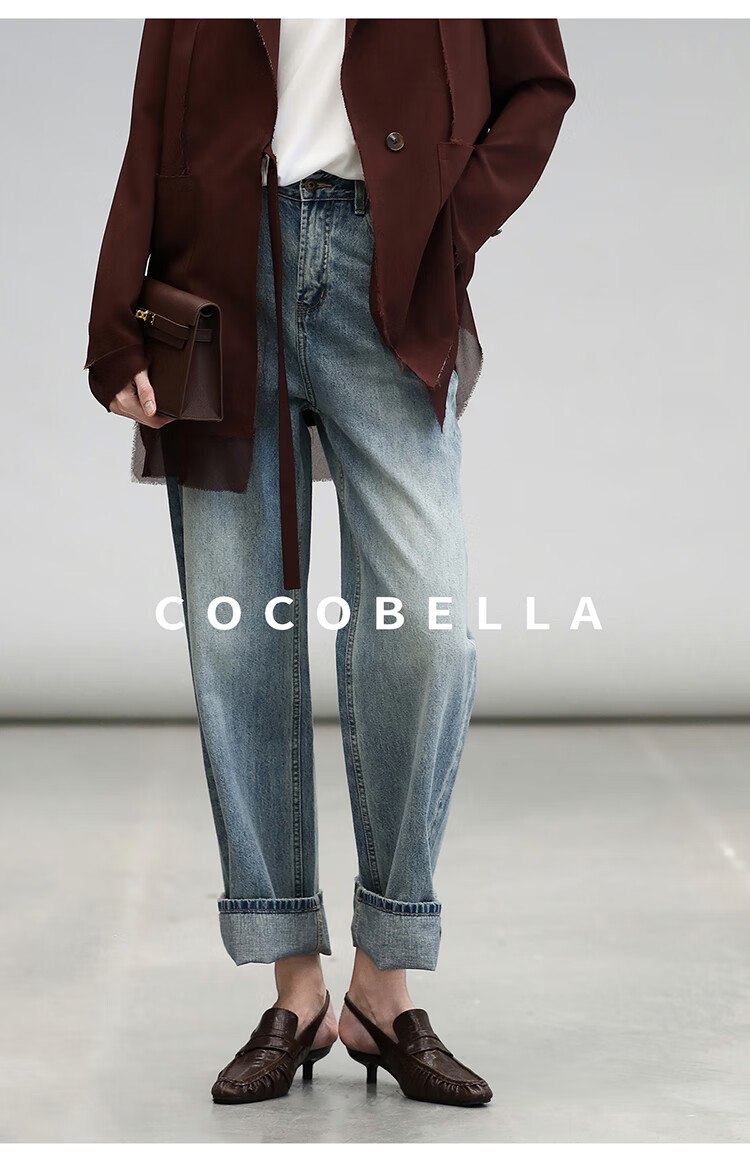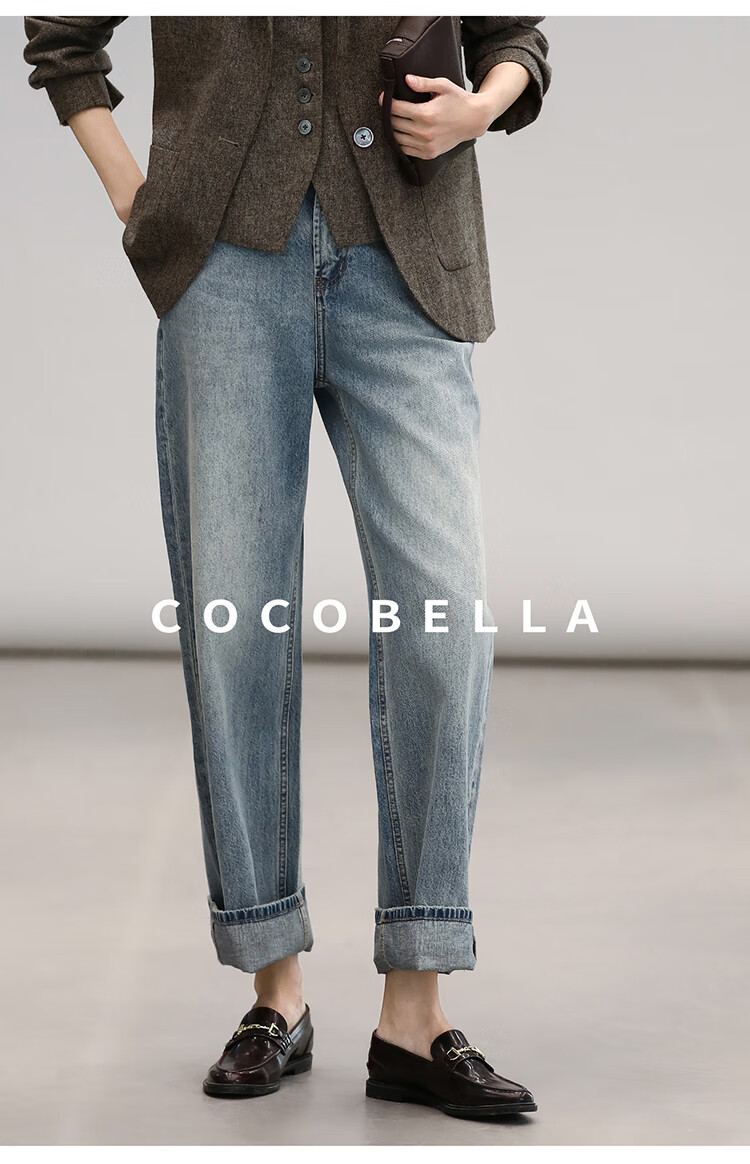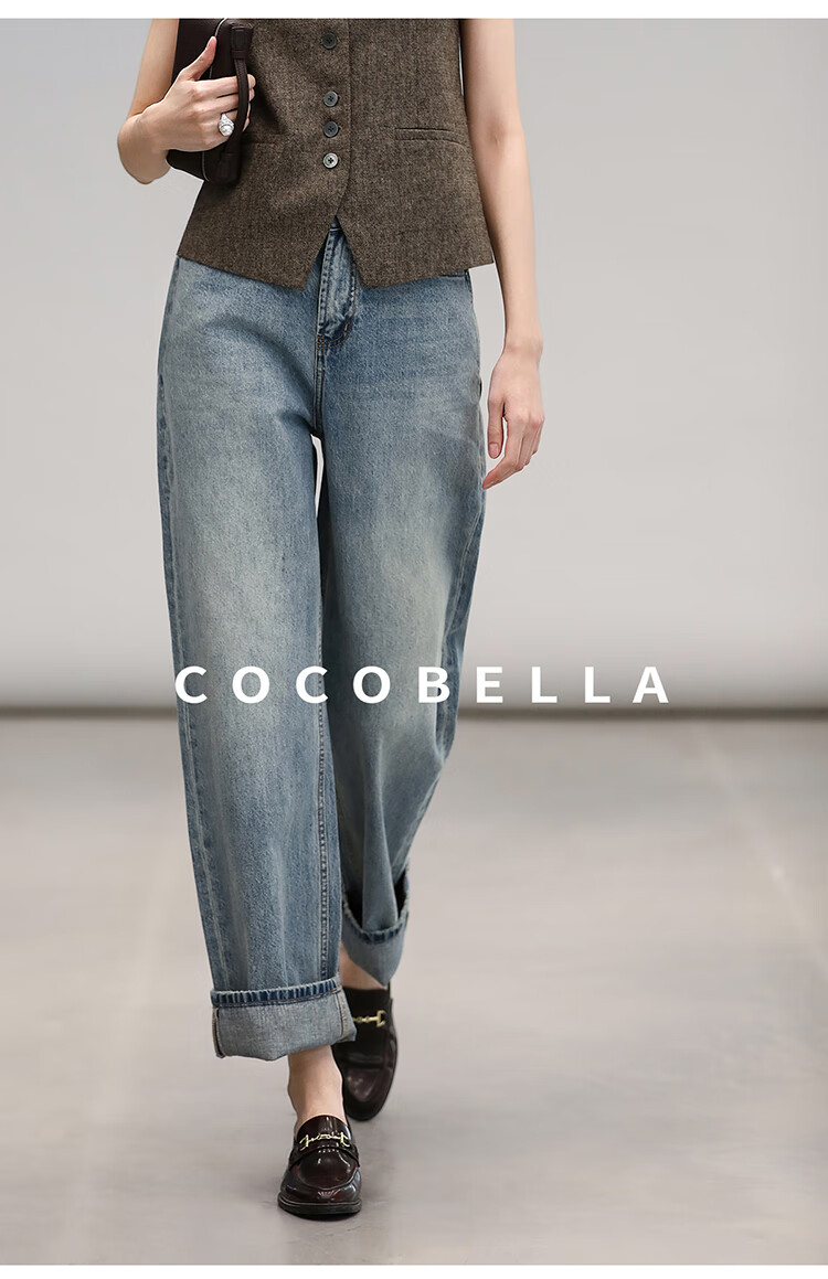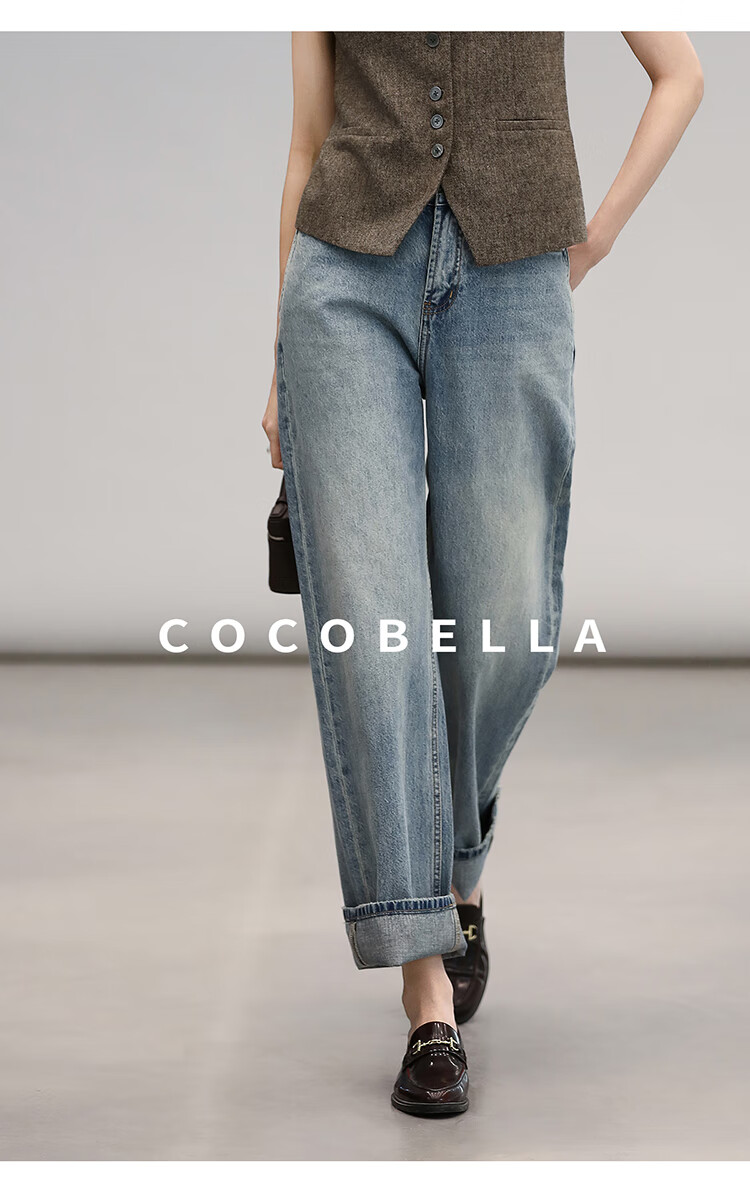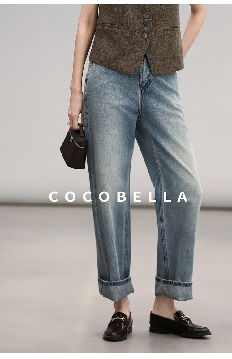 COCOBELLA复古丹宁小V腰牛仔裤女春水洗磨白遮胯休闲裤DN0053