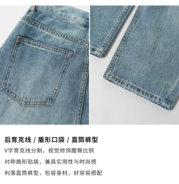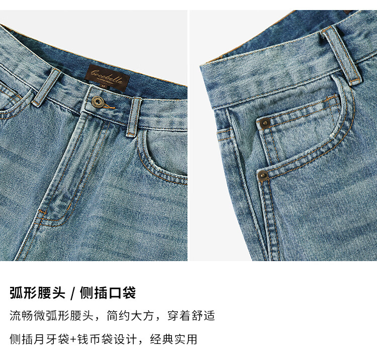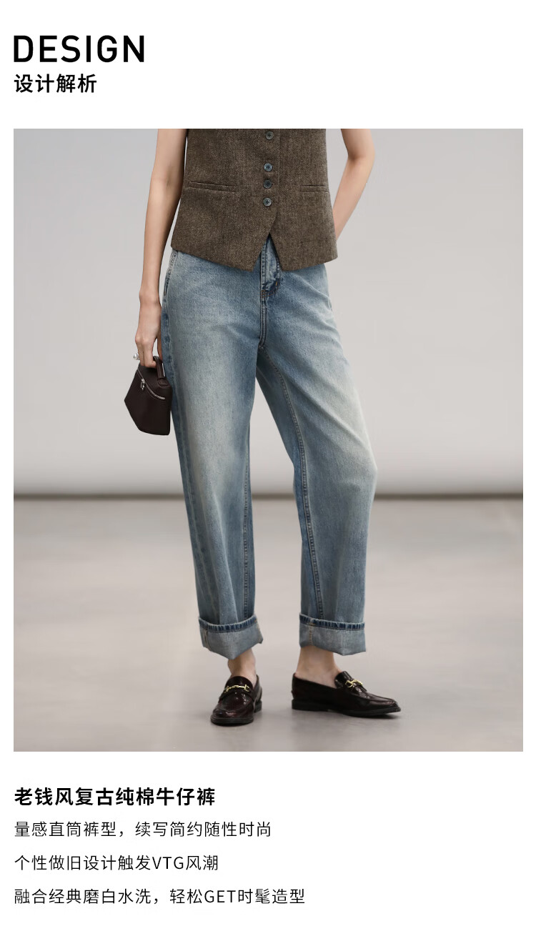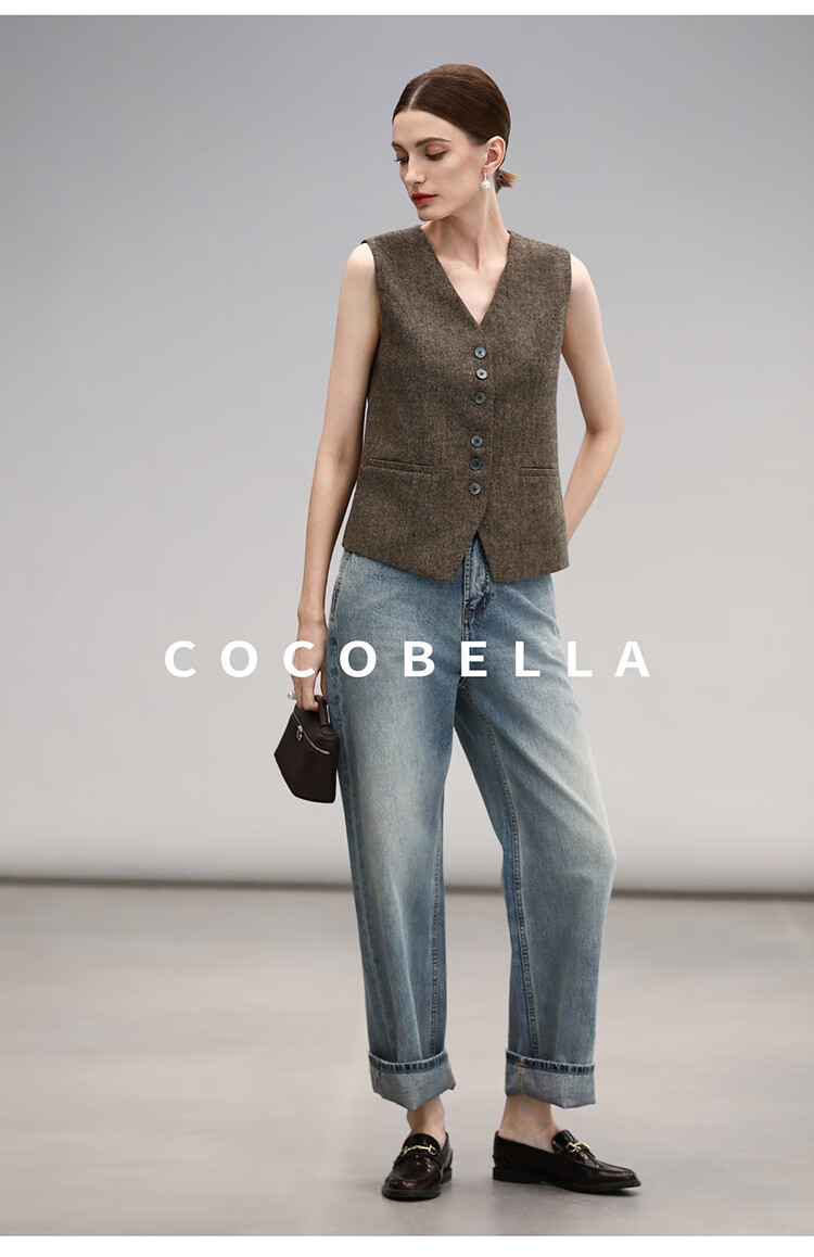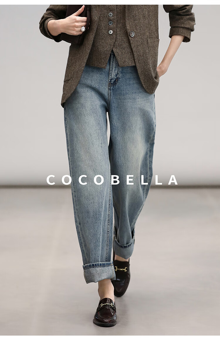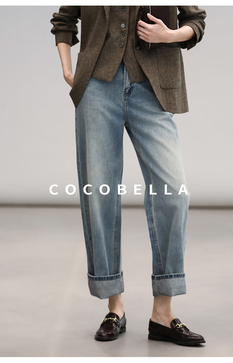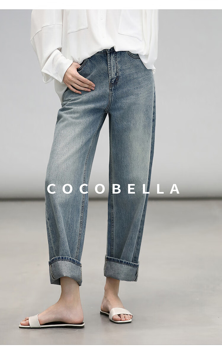 COCOBELLA复古丹宁小V腰牛仔裤女春水洗磨白遮胯休闲裤DN0053