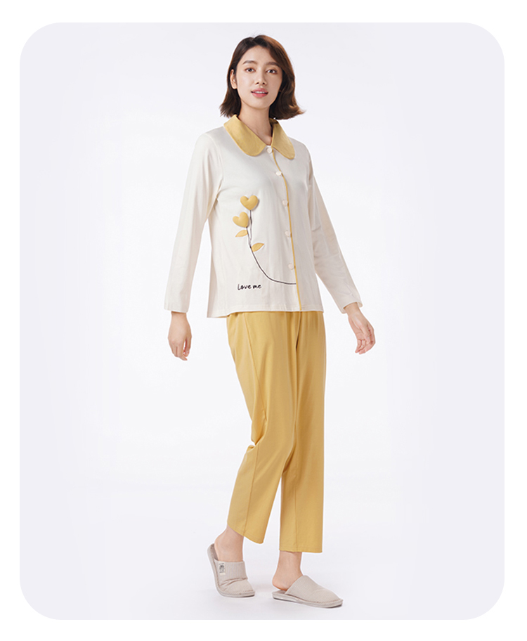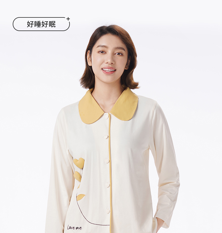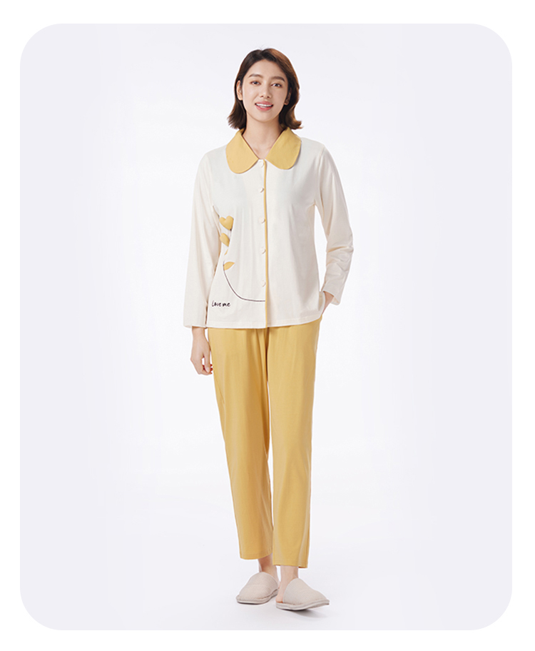 都市丽人睡衣26支CVC单面睡衣女士家居服长袖长裤棉质套装LHH1H2