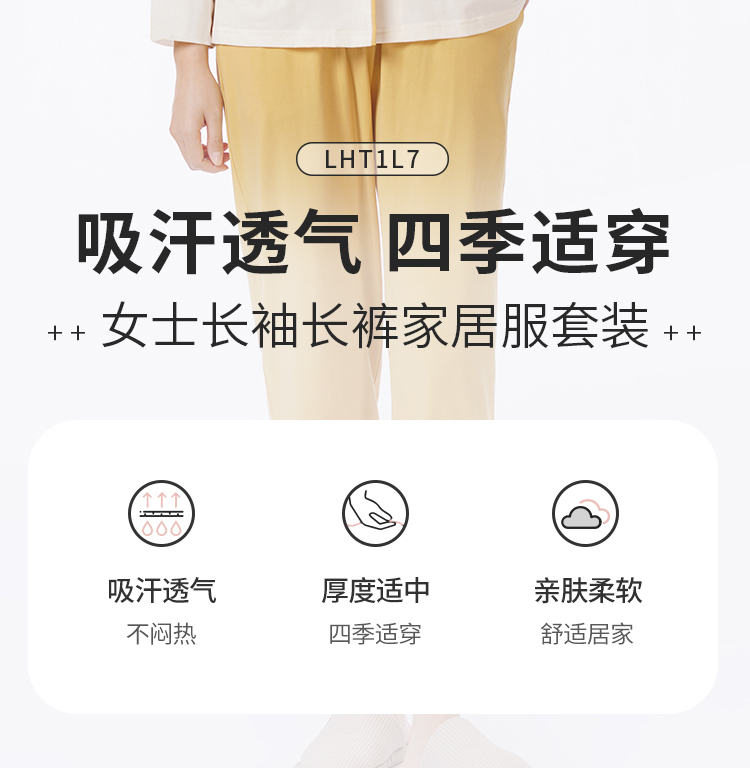都市丽人睡衣会员精选长袖家居服26支CVC单面薄女士棉质套装LHT1L7