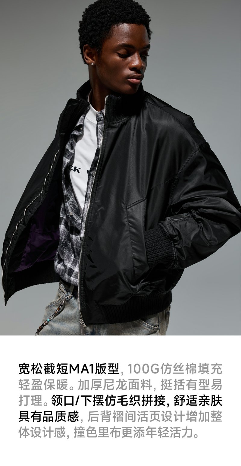 CHINISM赤尘 毛领飞行夹克棉服男冬季美式棉袄夹棉外套立领棉衣