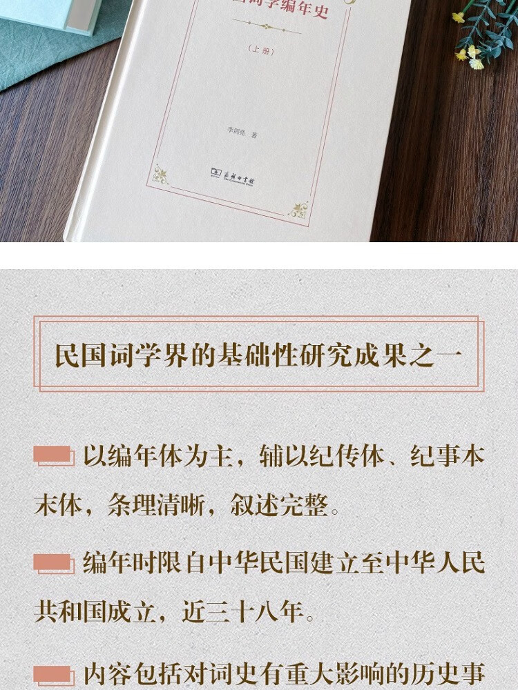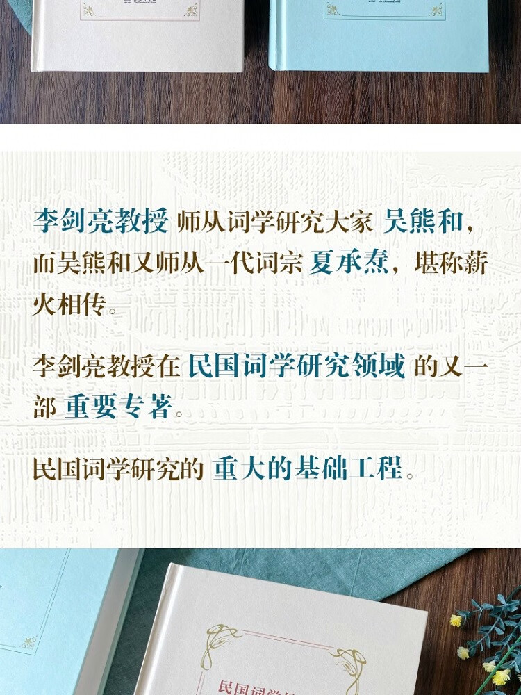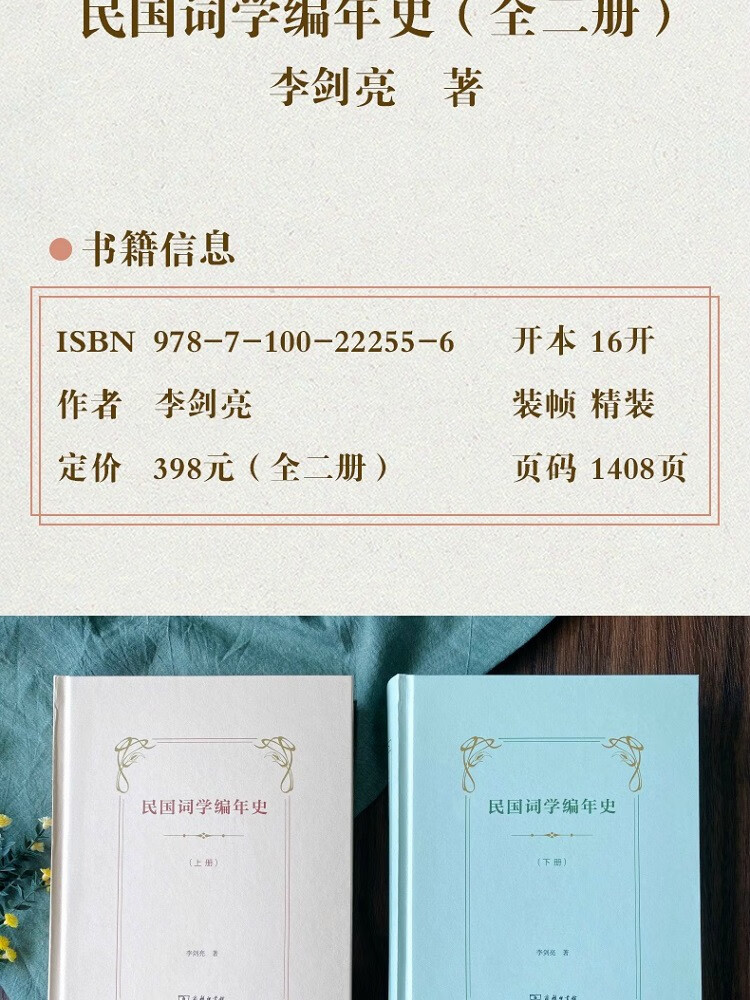 李剑亮教授师从词学研究大家吴熊和,而吴熊和又师从一代词宗夏承焘,堪称薪火相传。《民国词学编年史》一书,以编年体为主,辅以纪传体、纪事本末体等,条理清晰,叙述完整。编年时限自中华民国建立至中华人民共和国成立,即公元1912年至1949年10月,近三十八年,其内容包括对词史有重大影响的历史事件、文学事件、词学结社、词学流派、词人(词学家)交往、词人(词学家)生平事迹、词人(词学家)重要作品的创作、出版和评论,以及民国词学家对前代词学文献,特别是唐宋词学文献的研究整理与评论等各个方面。正如北大中文系钱志熙教授所言,此书不仅全面地盘点了民国词学文献,梳理出民国词学发展之完整脉络,而且对当代的词体创作也有借鉴作用。