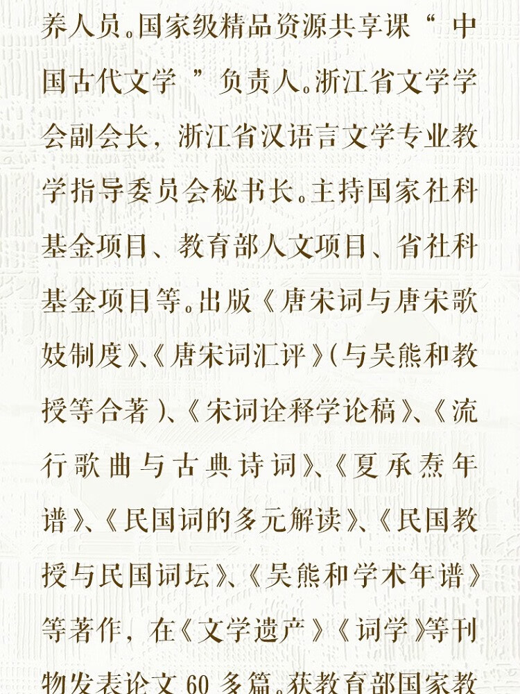 剑亮治词,也是由唐宋词、清词这样沿流而下的。他在民国词学的研究方面已有不少成果,主持“民国词人研究”“民国浙江词坛研究”等项目,并出版了相关专著。近几年我们都对夏承焘先生的词学感兴趣,他在这方面也写了好几篇文章,并撰《夏承焘年谱》。去年12月初,剑亮兄在浙工大之江学院主持“浙江诗路文化带的发掘与重构学术研讨会”,热情邀我参加。会上他又送给我新著《吴熊和学术年谱》,其中所充注的对吴师的感情,令我感动!当晚捧读吴师年谱,前尘影事,历历在眼。现在他的这部巨作又要出版了,邀我写序,我曾以自己并非词学专家为理由而婉辞,但他强调同门之谊,我也不好再推托了。略书上面这几段文字,权当是大著出版的祝贺之词吧!
