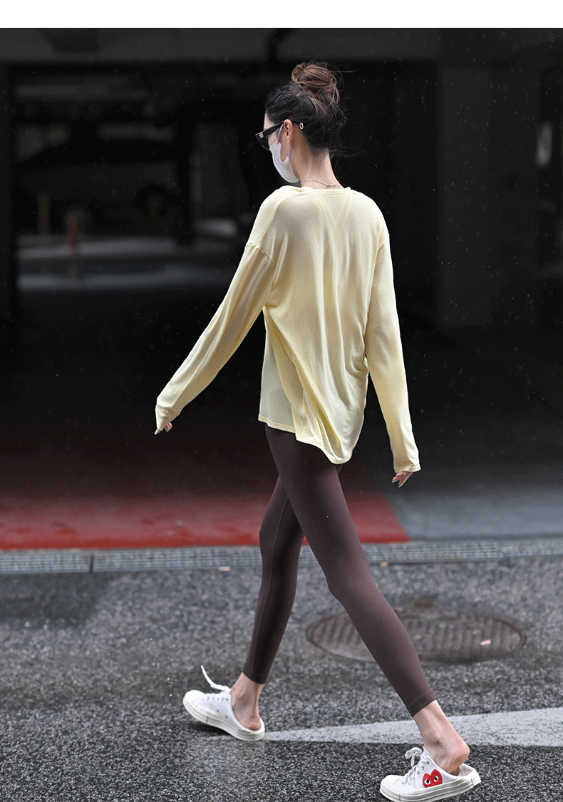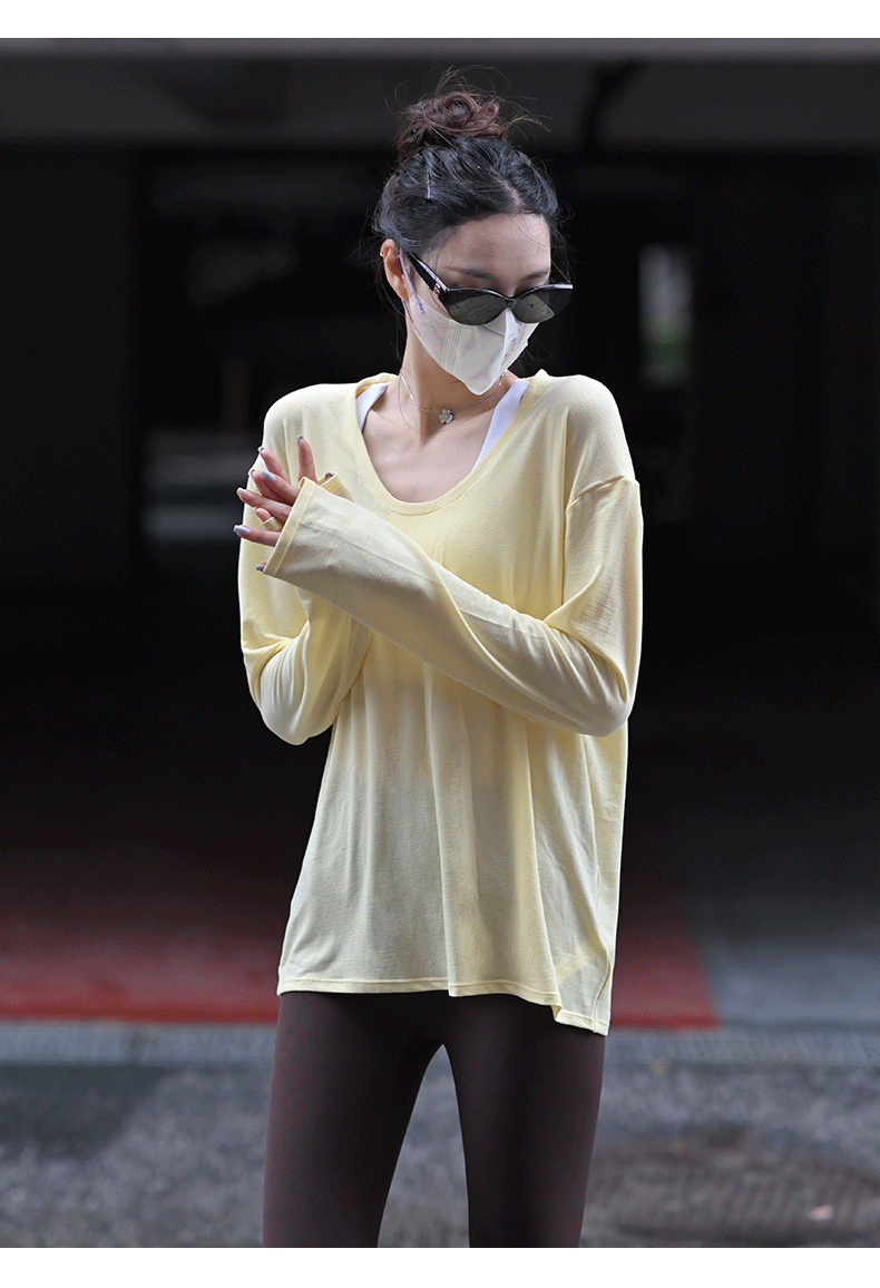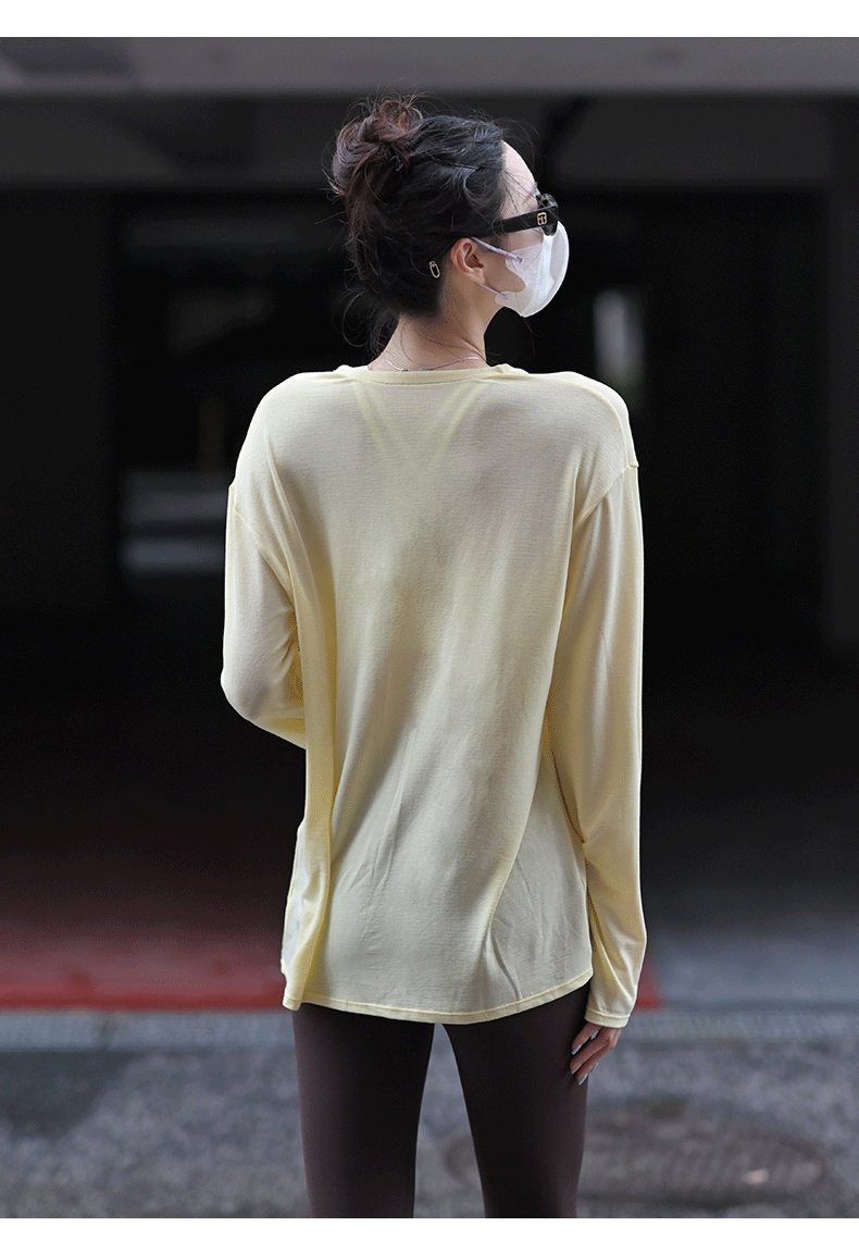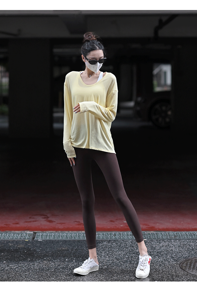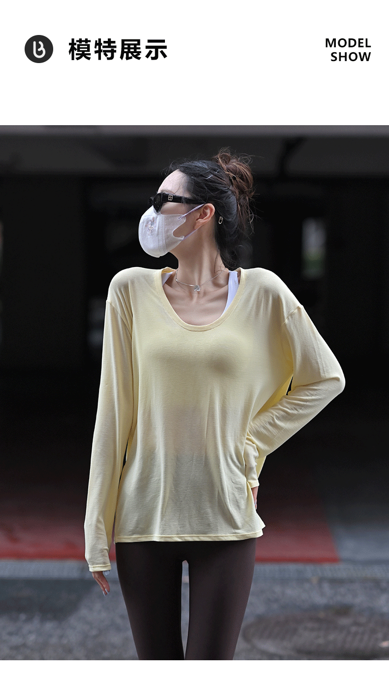 Beemen瑜伽服运动上衣女外穿宽松遮臀秋季高弹长袖t恤