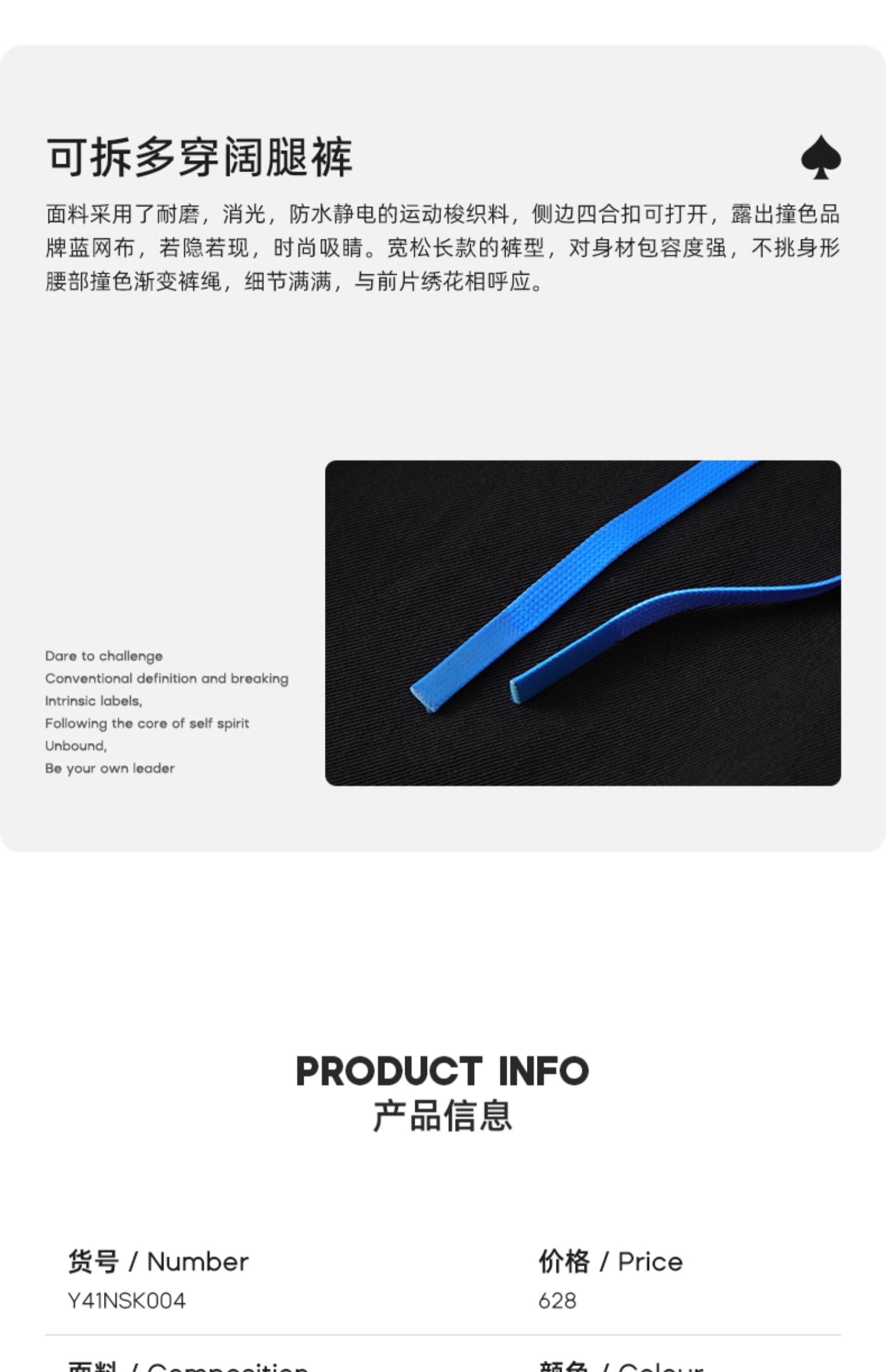 YKYB设计感休闲阔腿裤2025年春季新款潮流可拆两穿撞色运动休闲裤