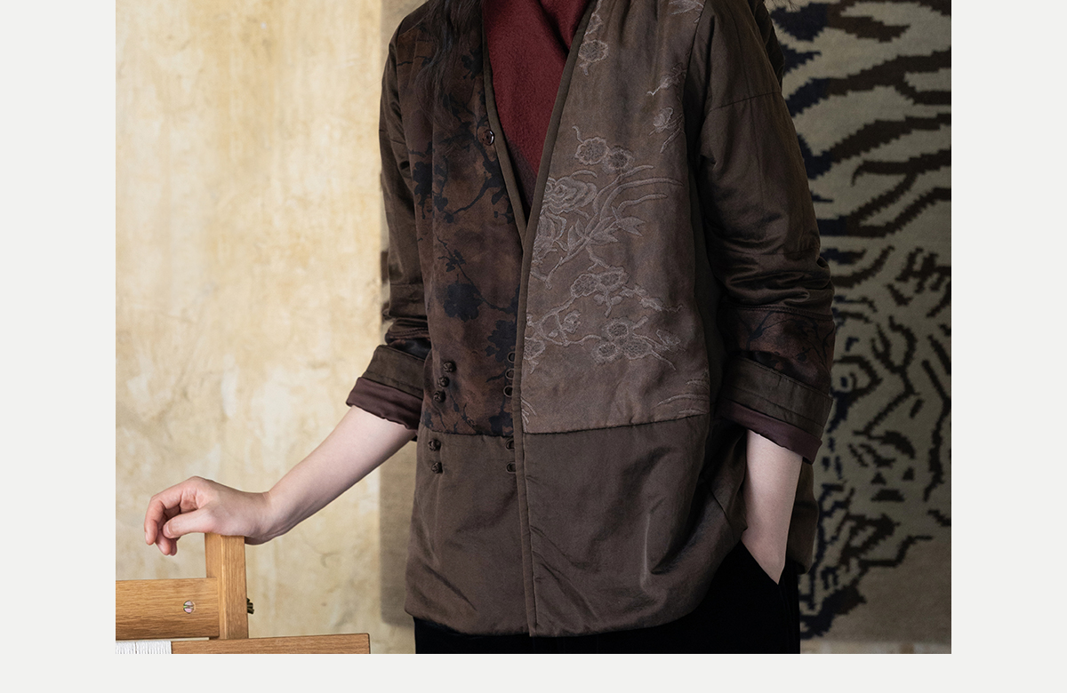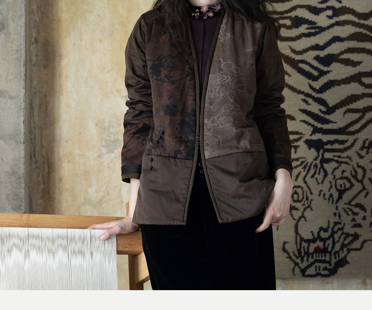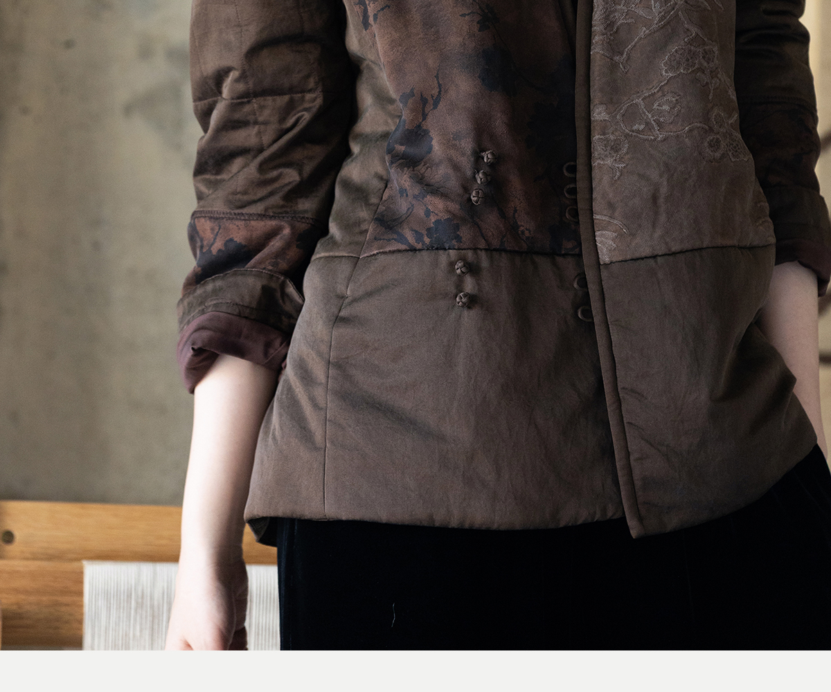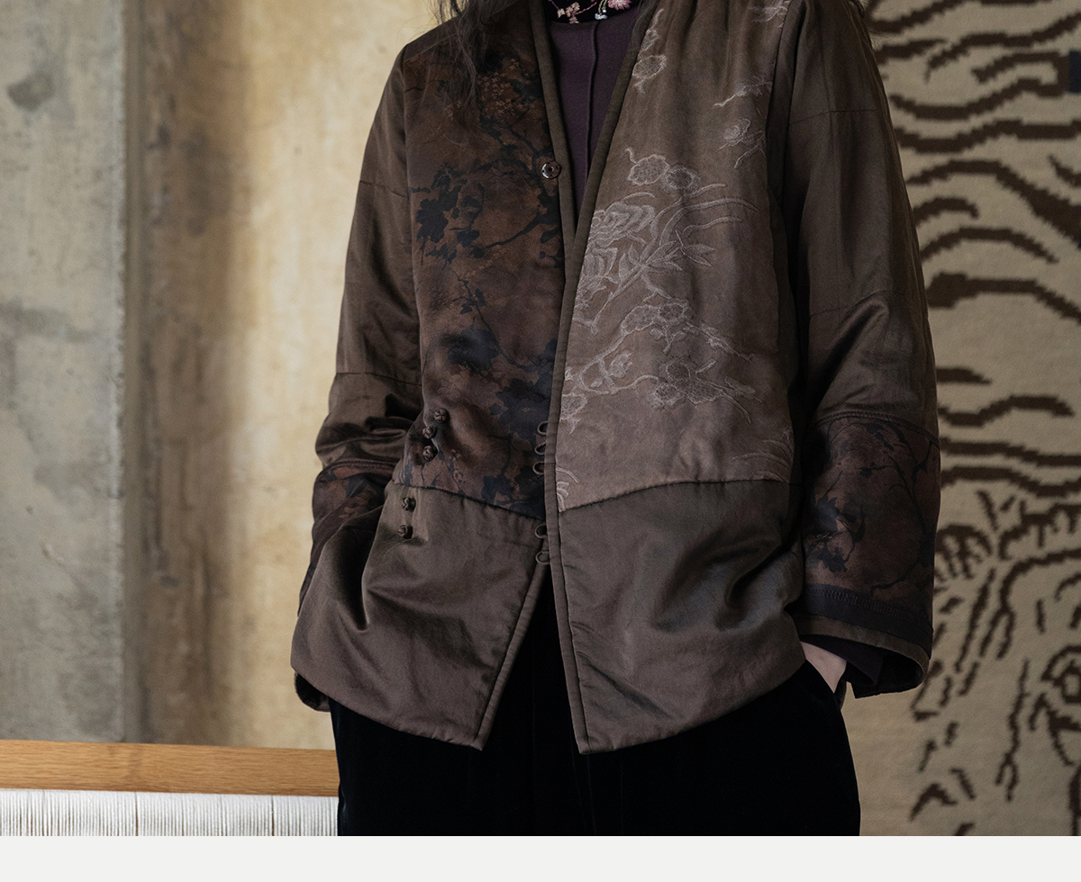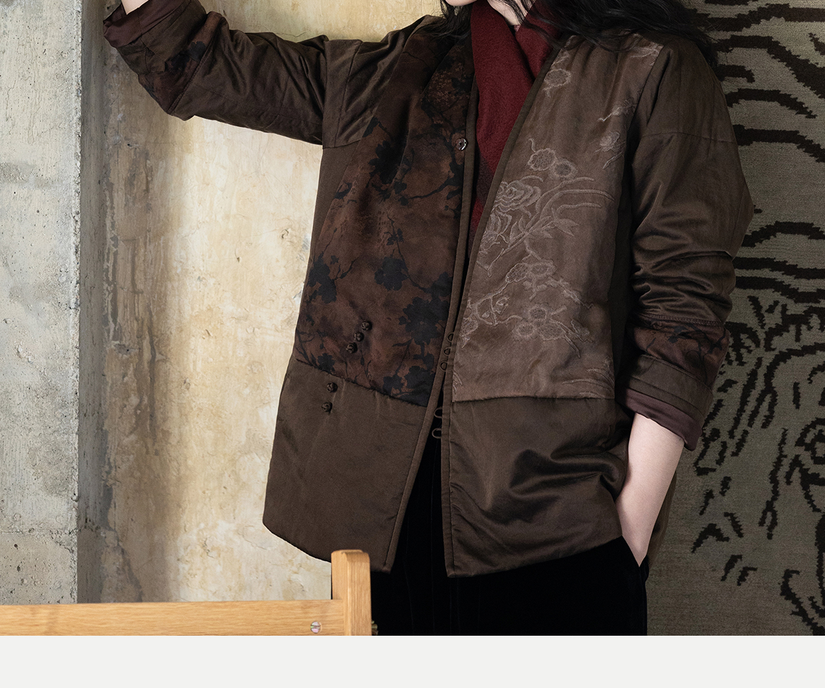 牧衣游原创 重磅22姆米香云纱拼接夹棉棉衣女复古名族风外套 汐跃