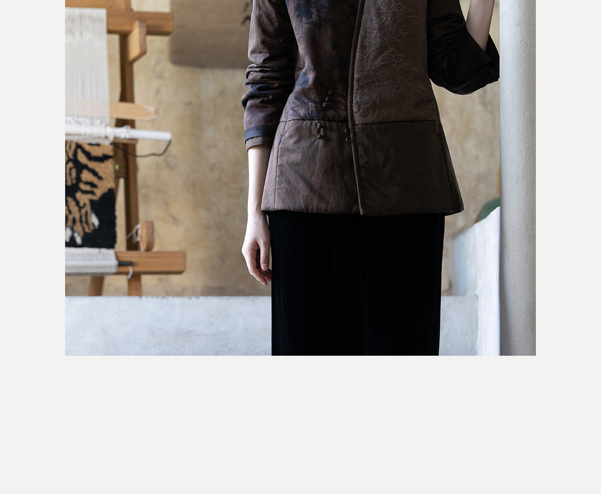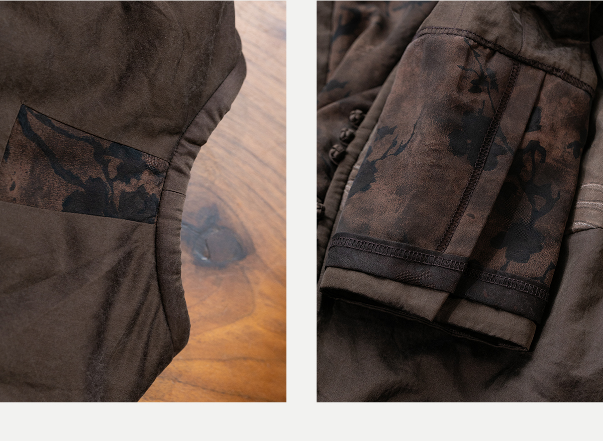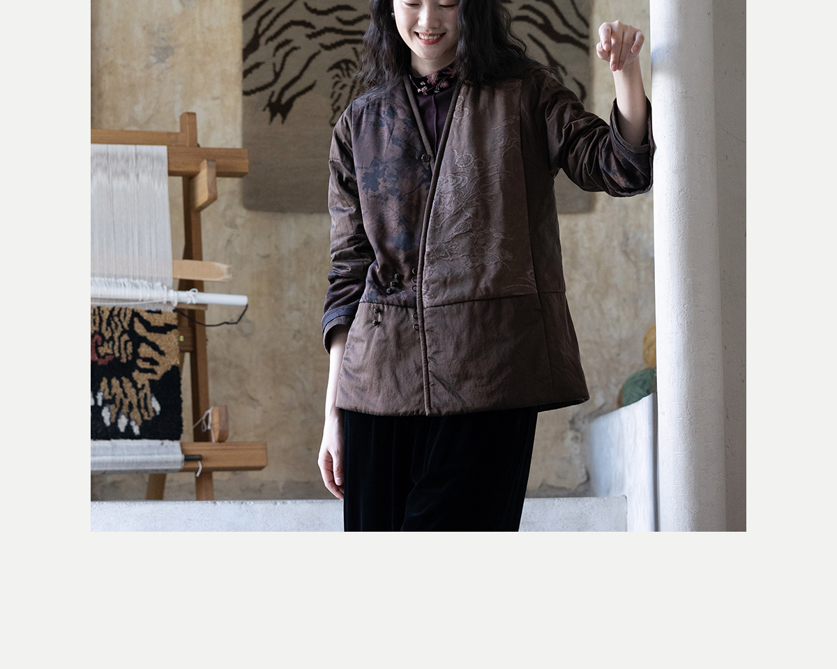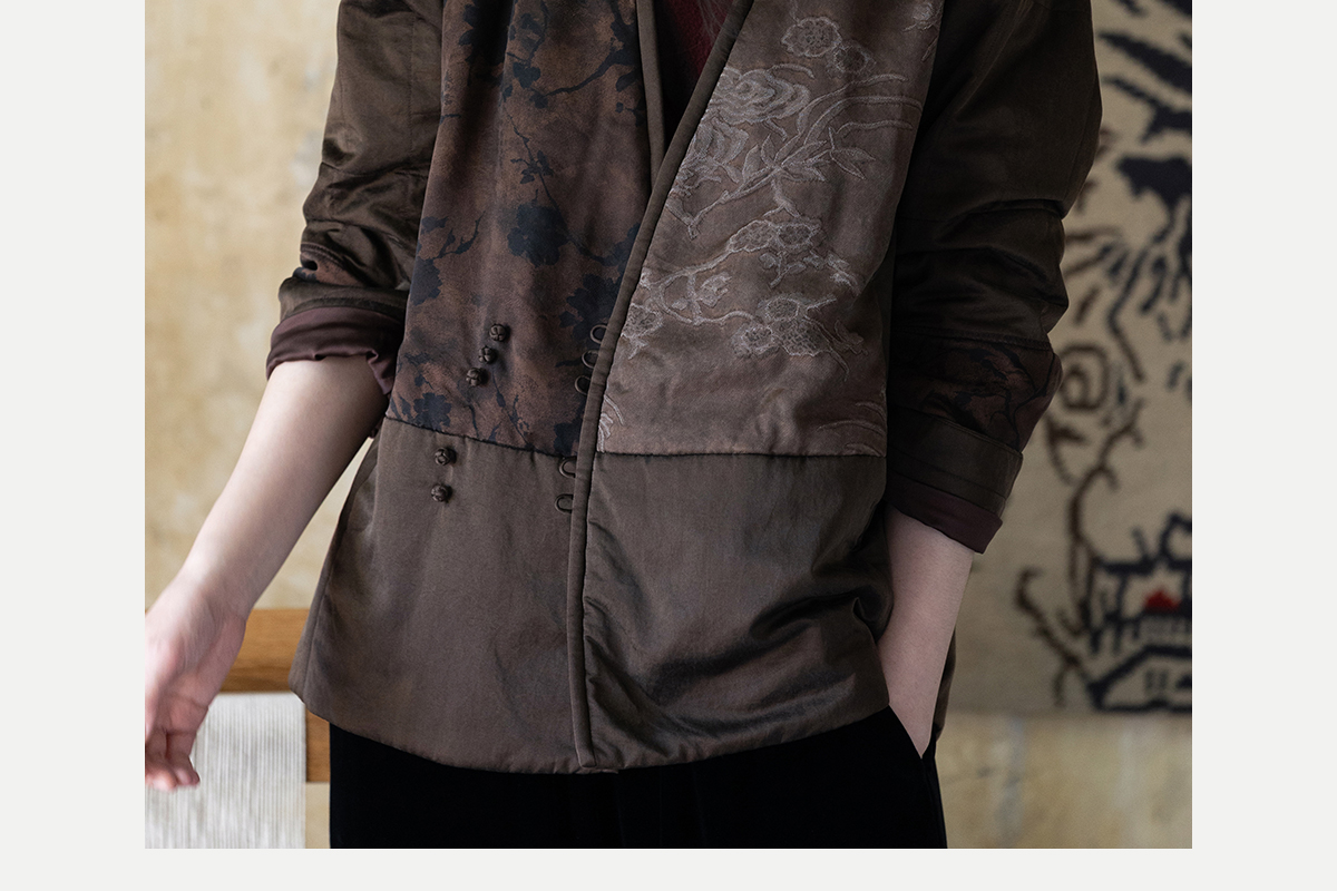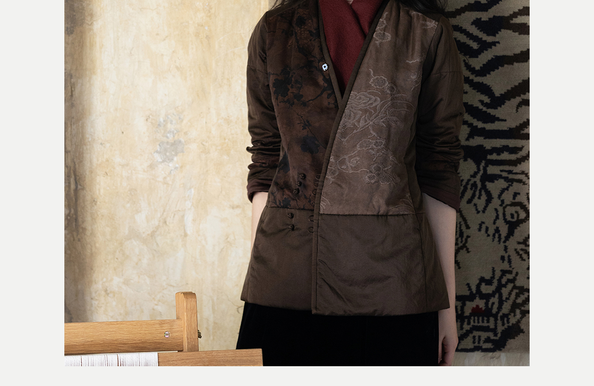 牧衣游原创 重磅22姆米香云纱拼接夹棉棉衣女复古名族风外套 汐跃
