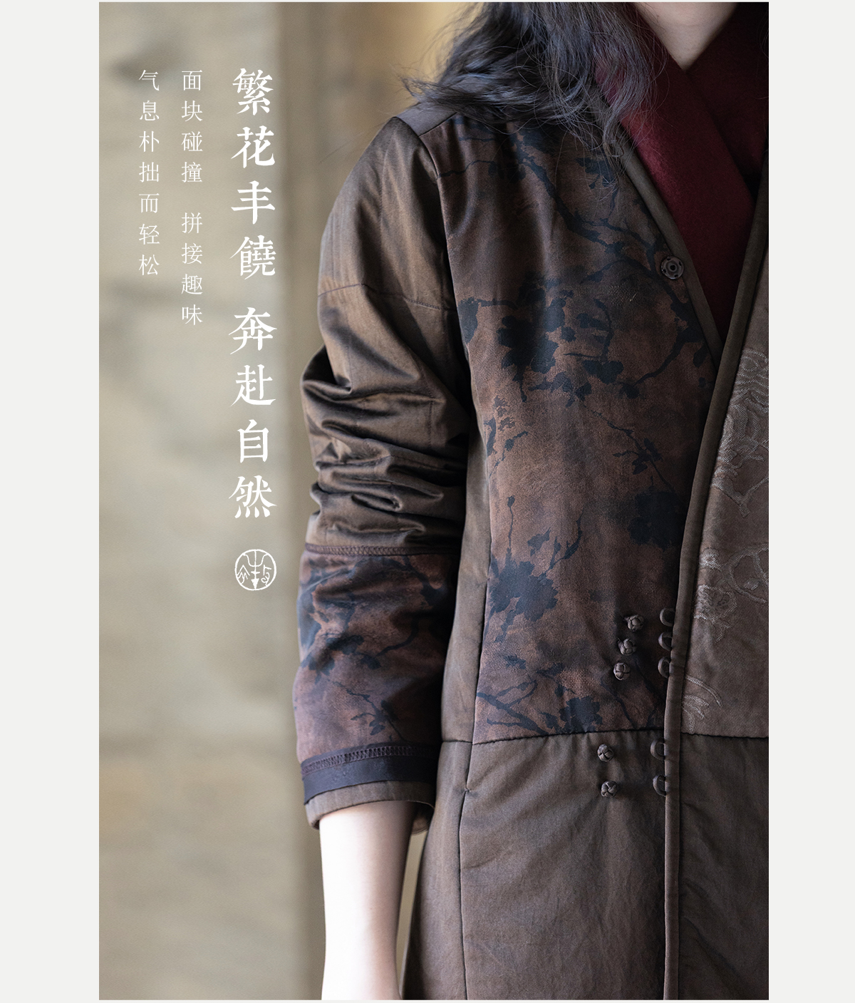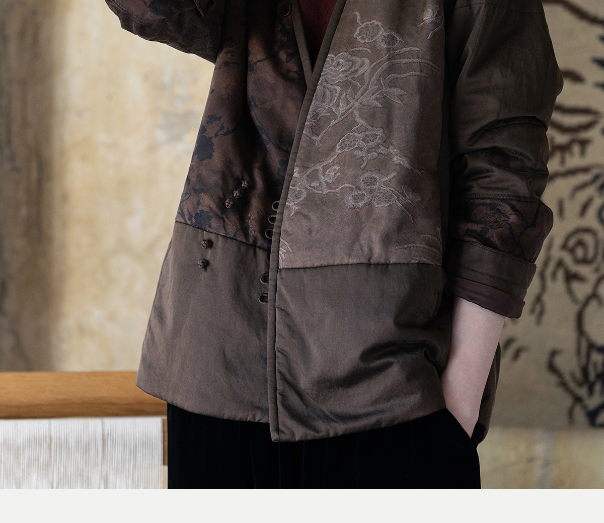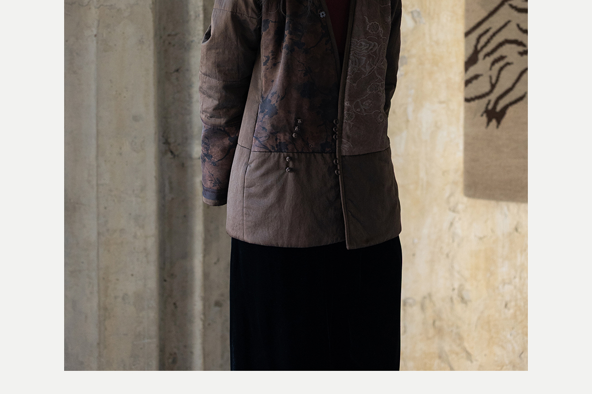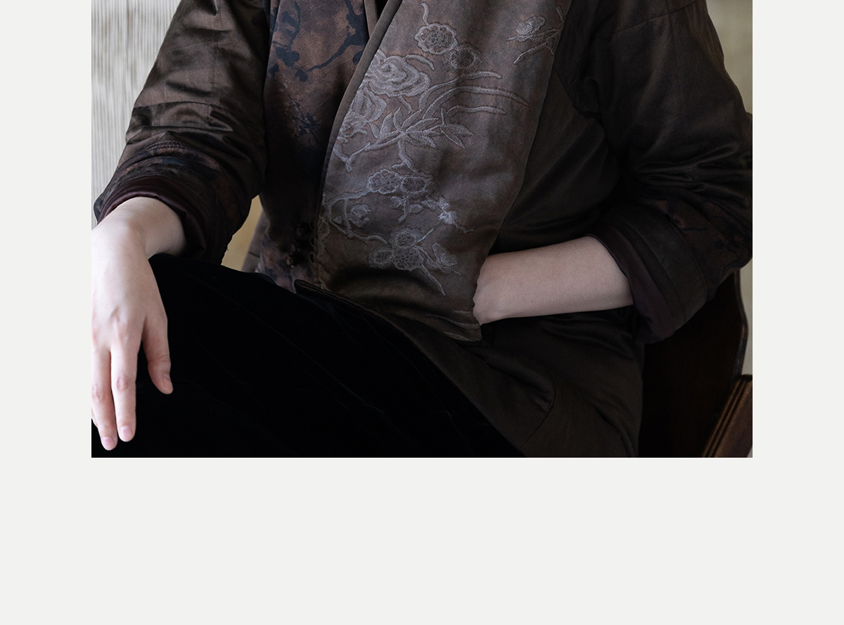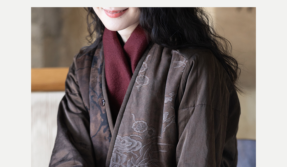 牧衣游原创 重磅22姆米香云纱拼接夹棉棉衣女复古名族风外套 汐跃