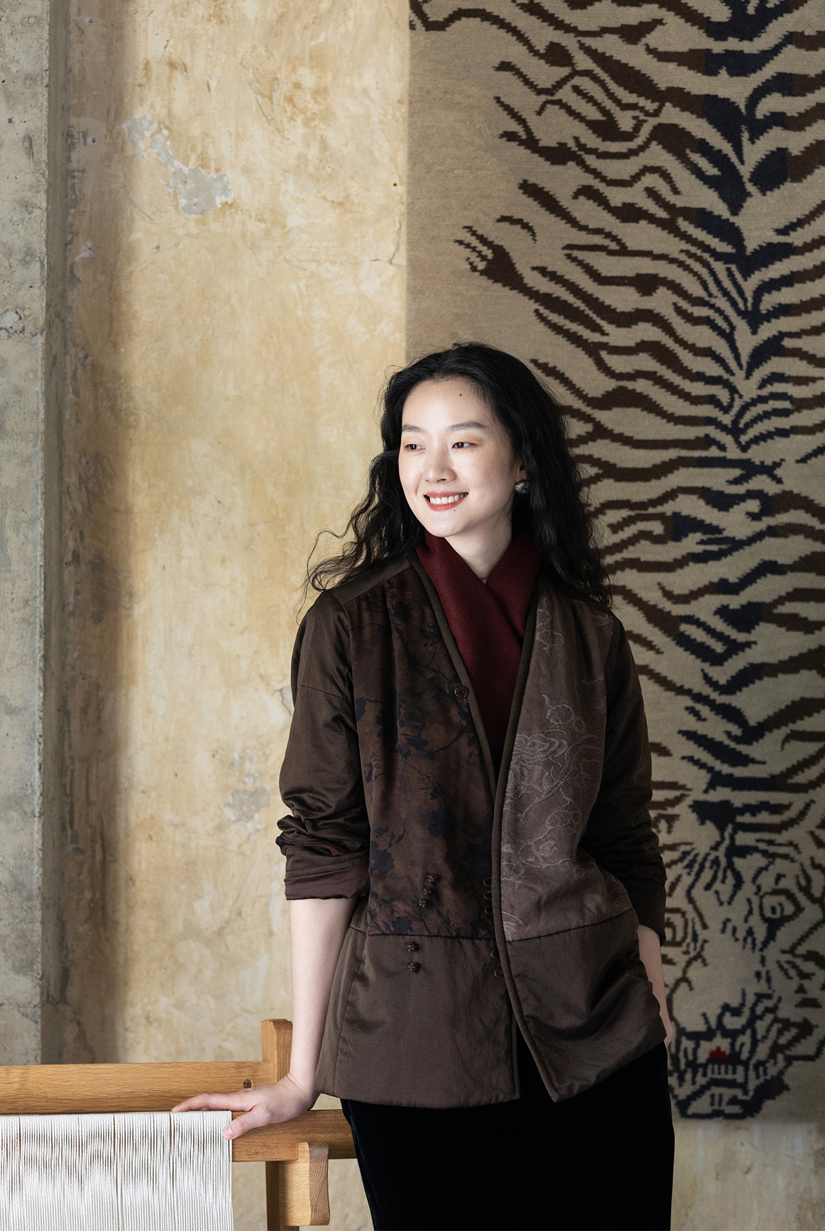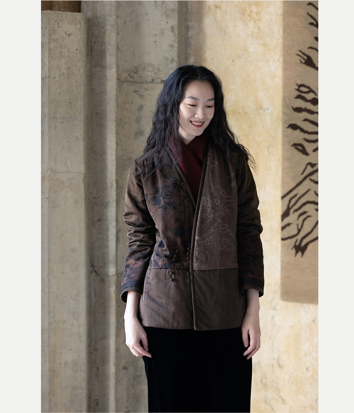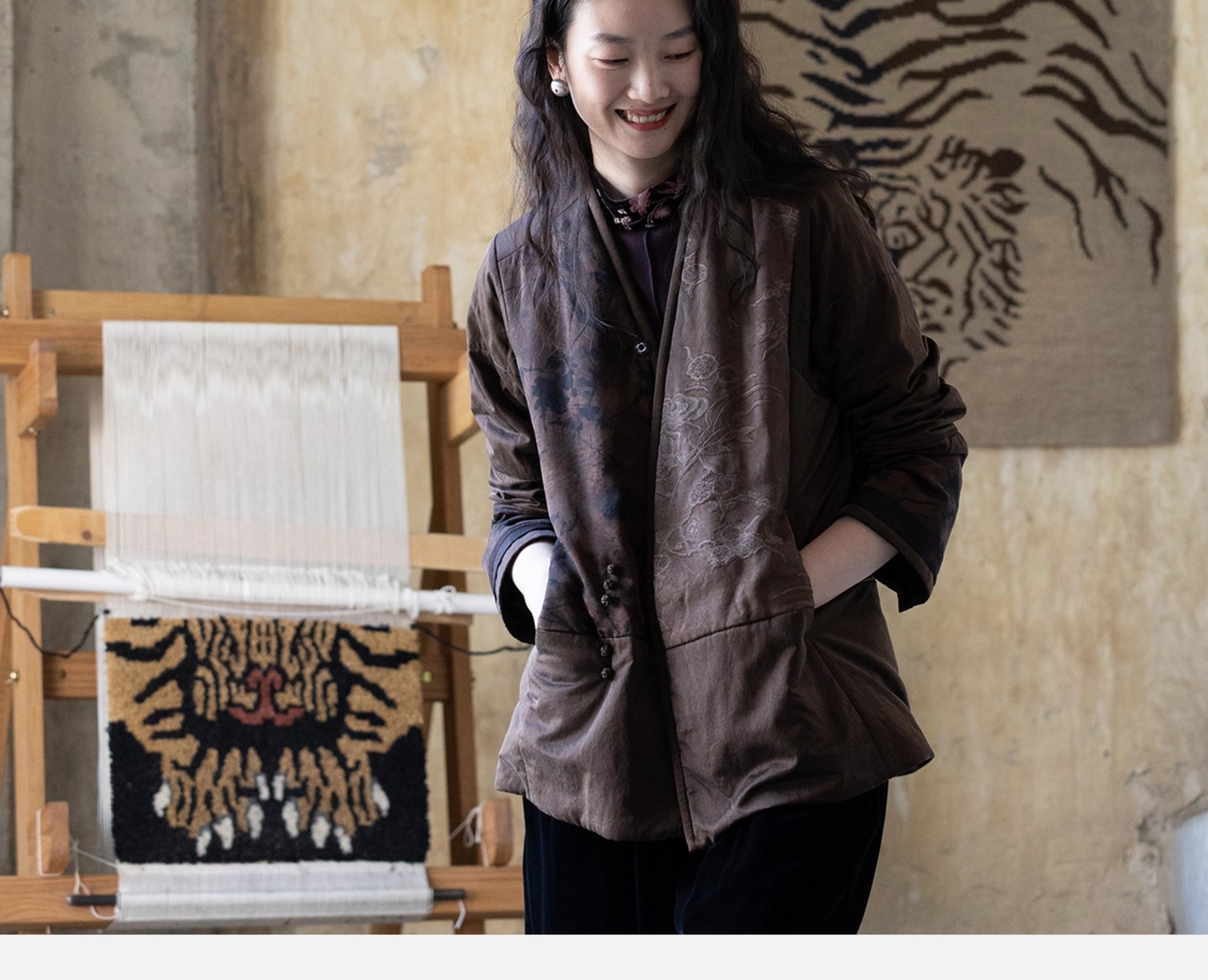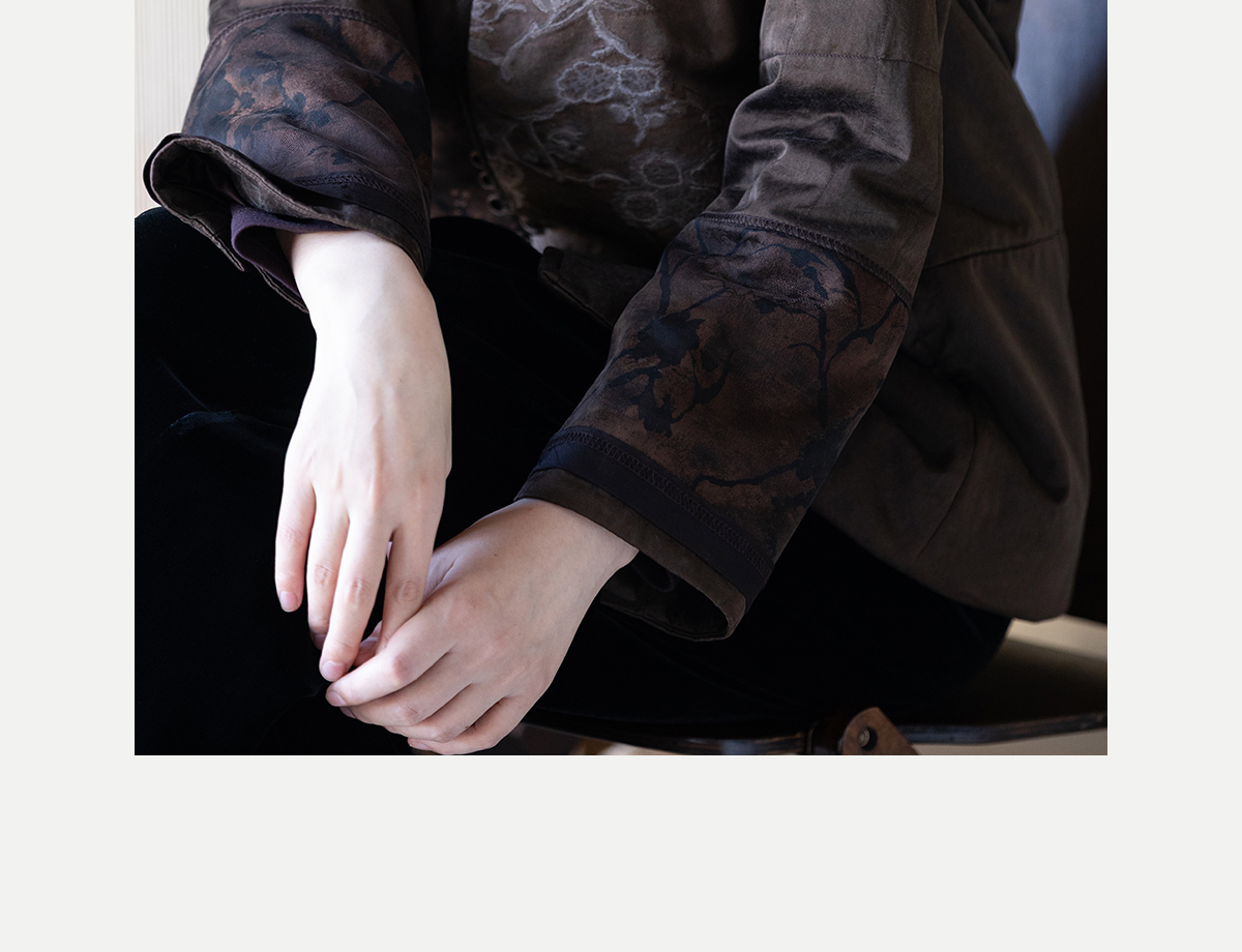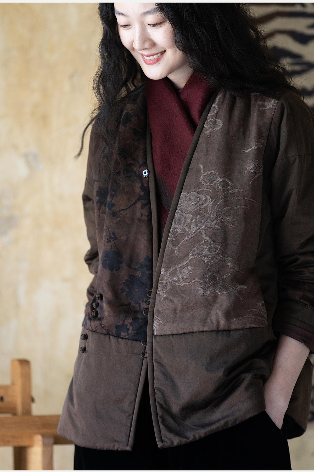 牧衣游原创 重磅22姆米香云纱拼接夹棉棉衣女复古名族风外套 汐跃