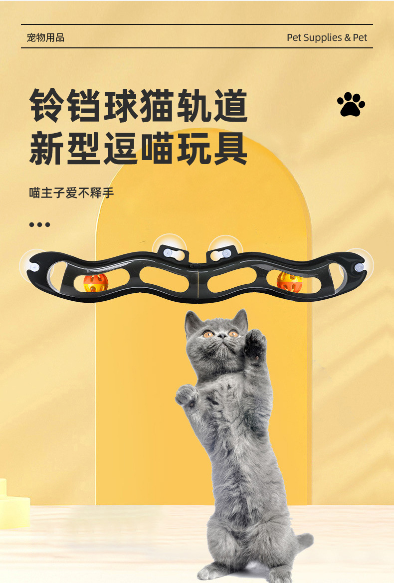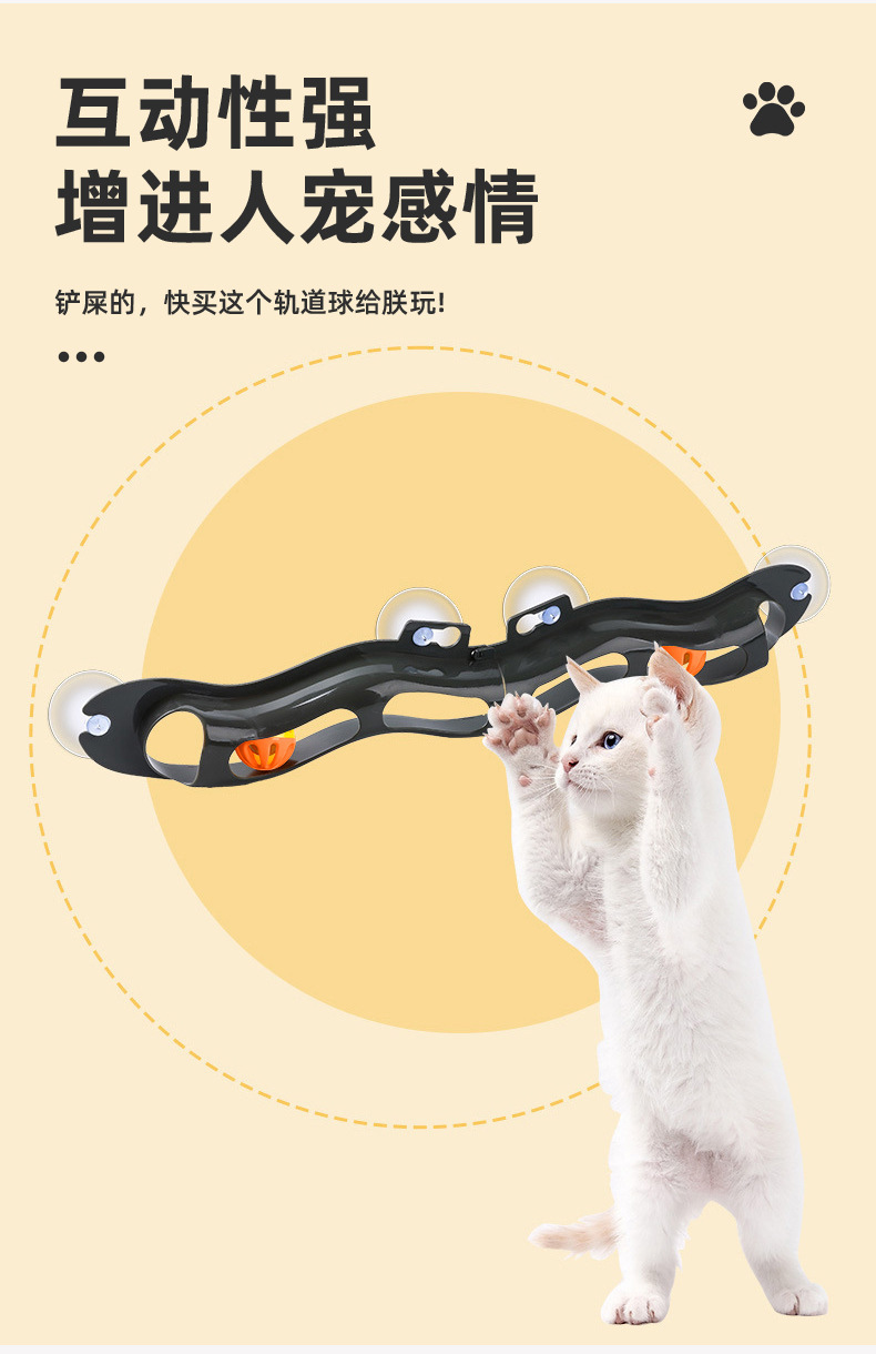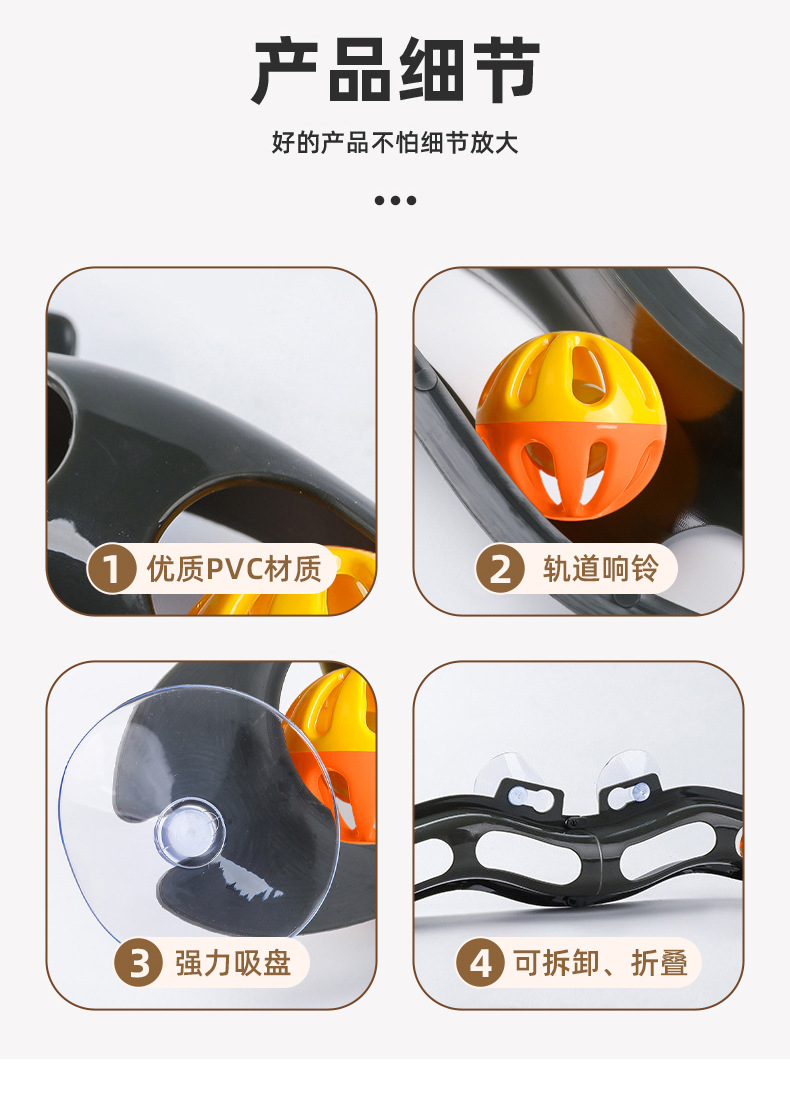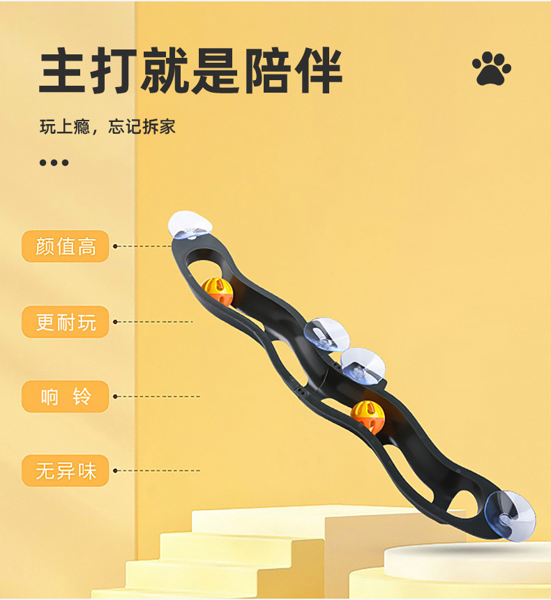 新款新品可折叠轨道铃铛球猫玩具吸盘轨道球自嗨猫抓板窗台玩具