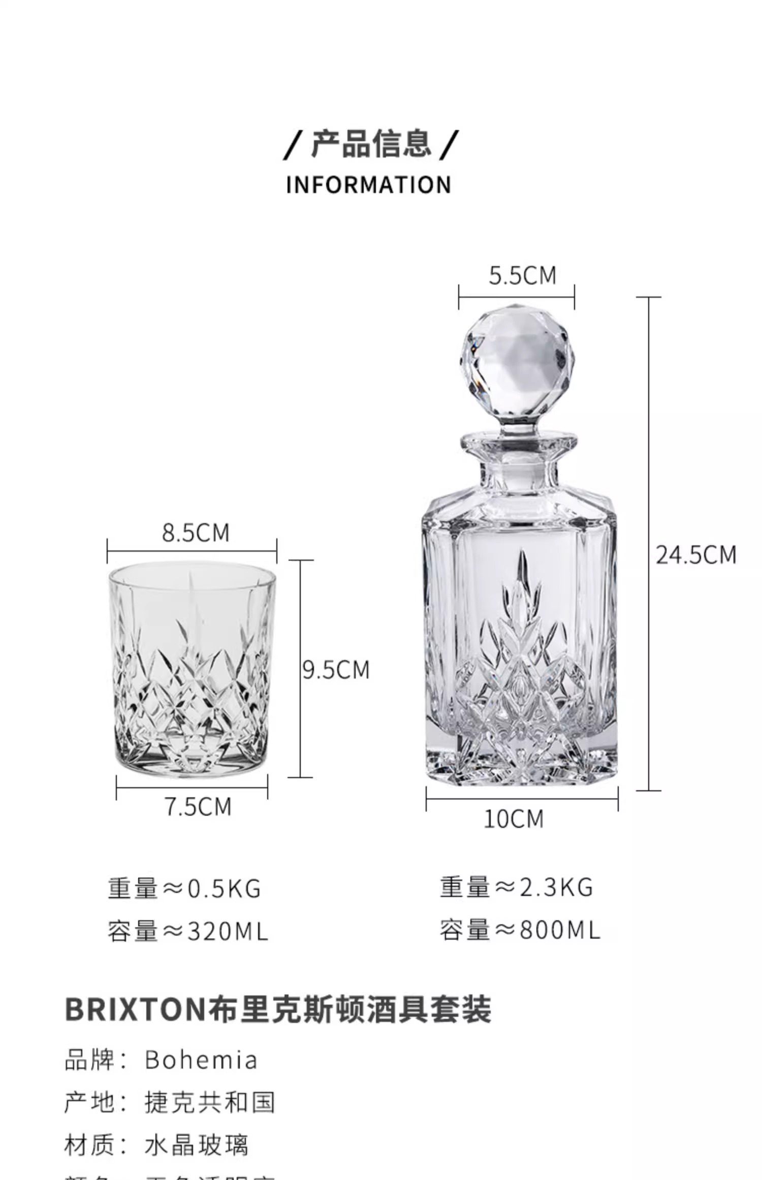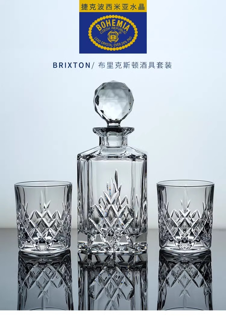 【特惠4折,仅1套,无货退款】BOHEMIA捷克进口水晶玻璃杯 布莱克斯顿 酒具酒樽家用创意奢华布里克斯顿威士忌套装1樽6杯