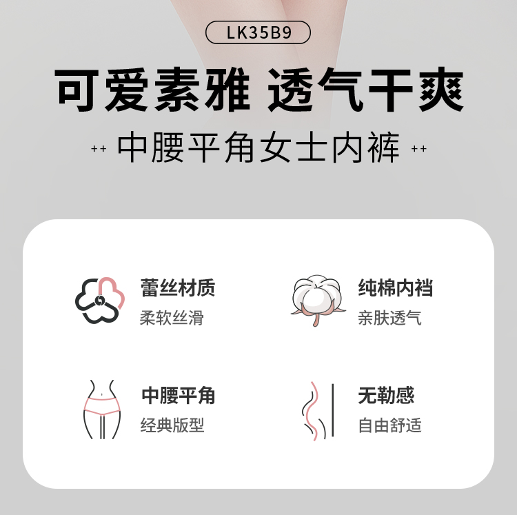 都市丽人基础系列蕾丝平角裤女士内裤中腰平角裤LK35B9
