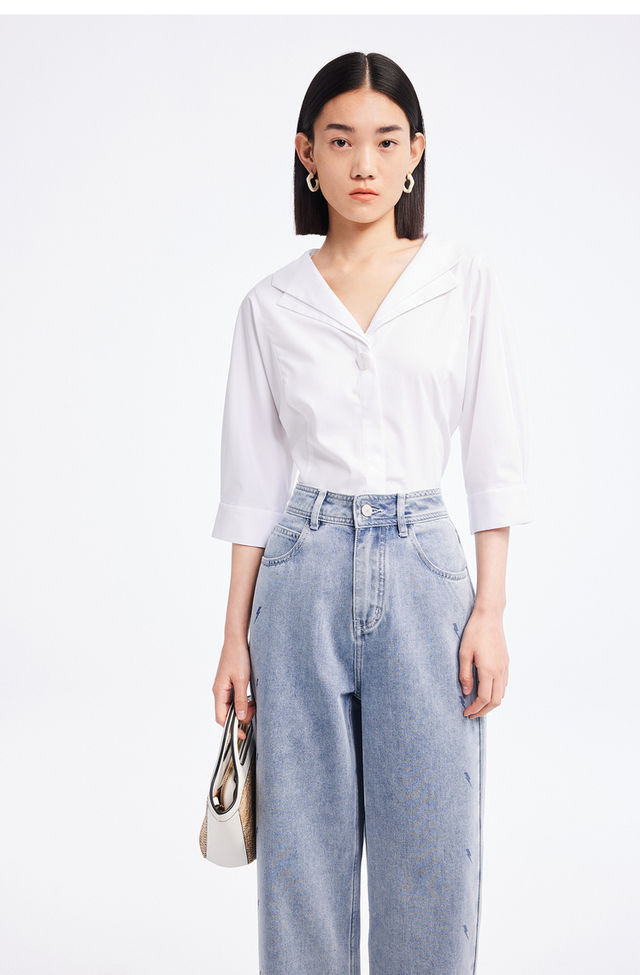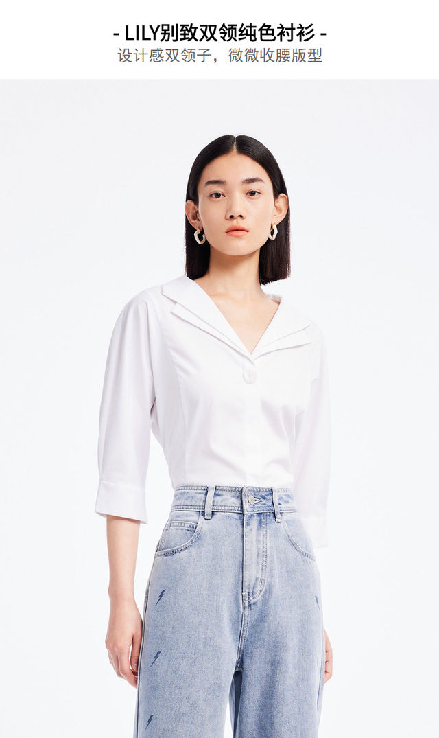 LILY别致双领纯色衬衫122240C4186
