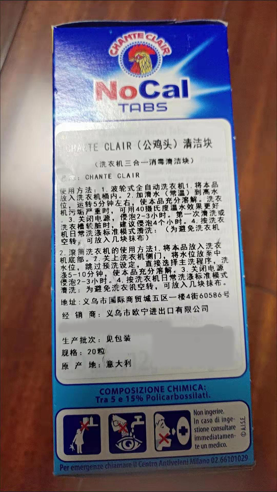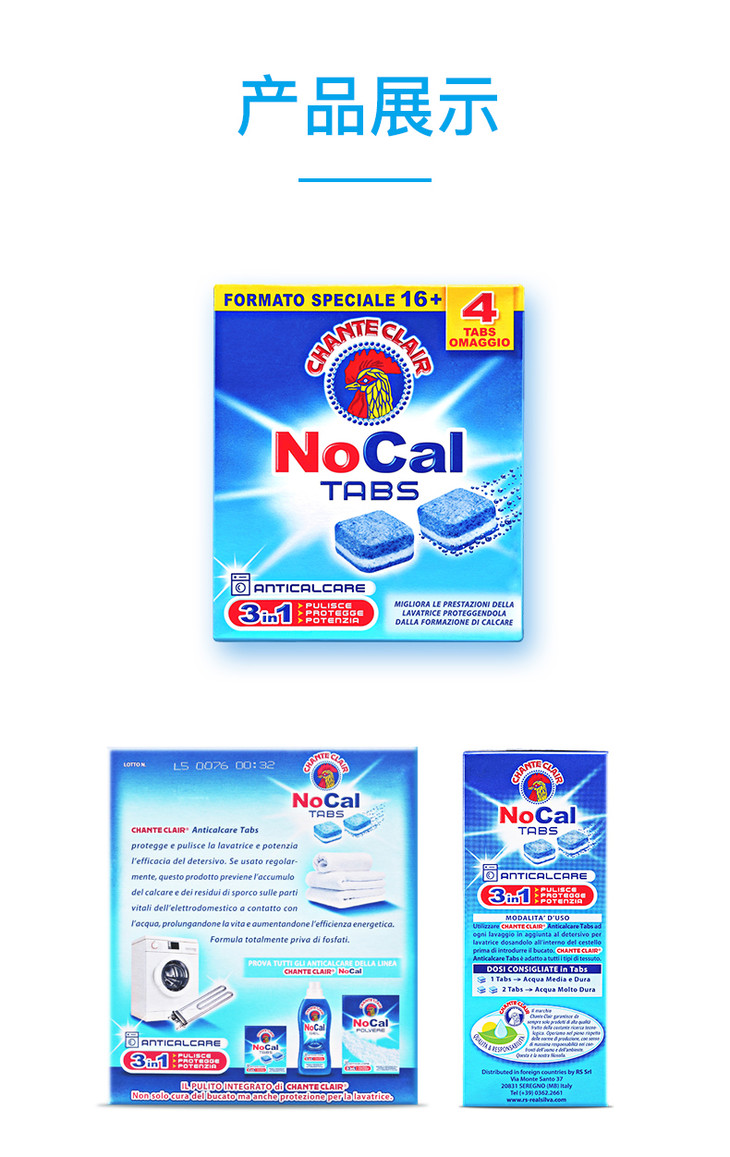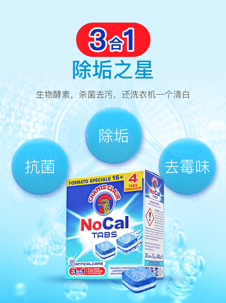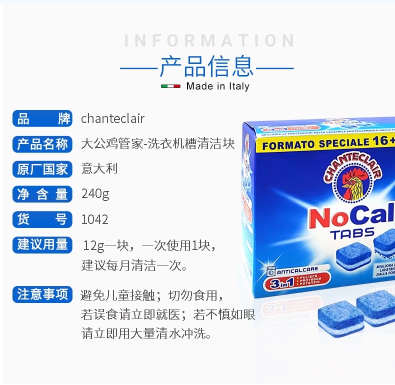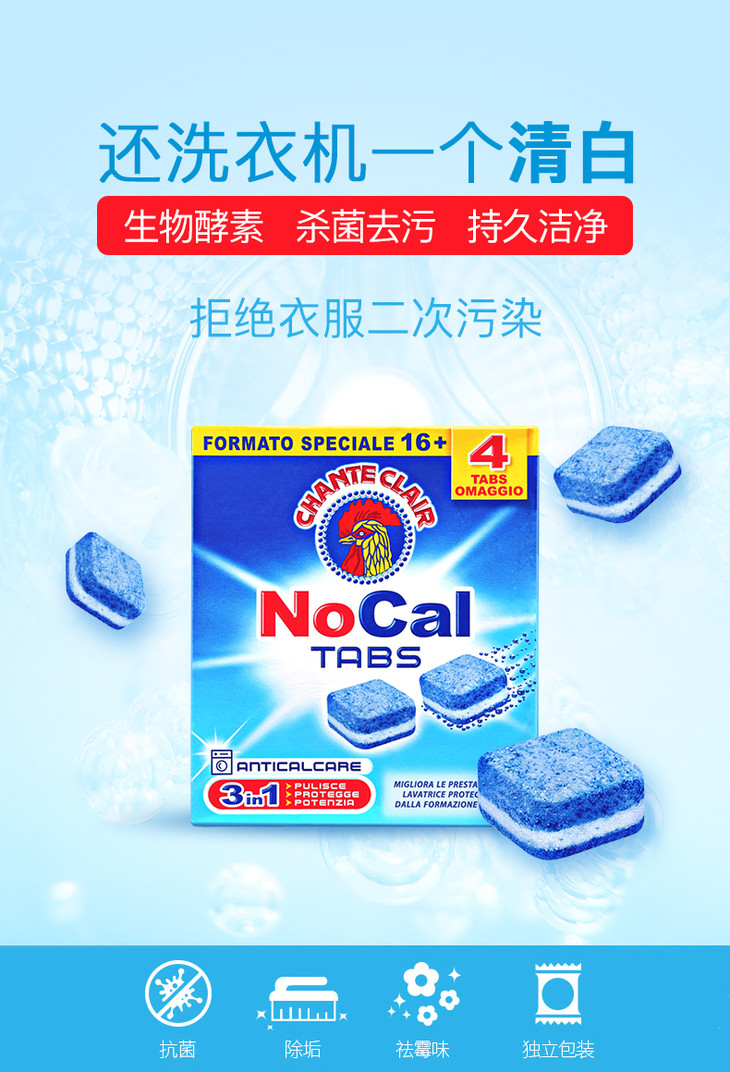 【中欧班列2盒】意大利进口大公鸡头洗衣机清洗除垢清洁块 240g/盒OC