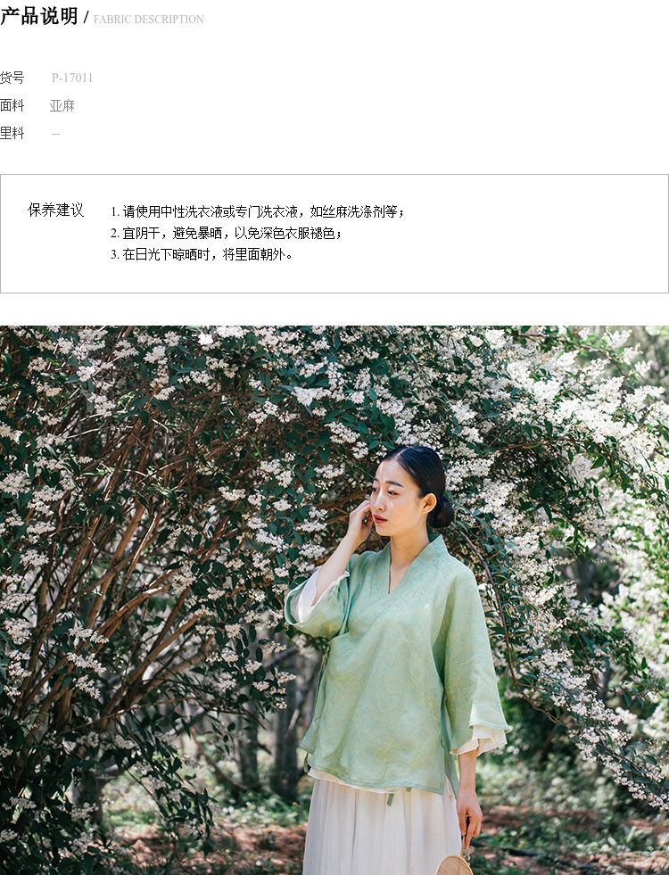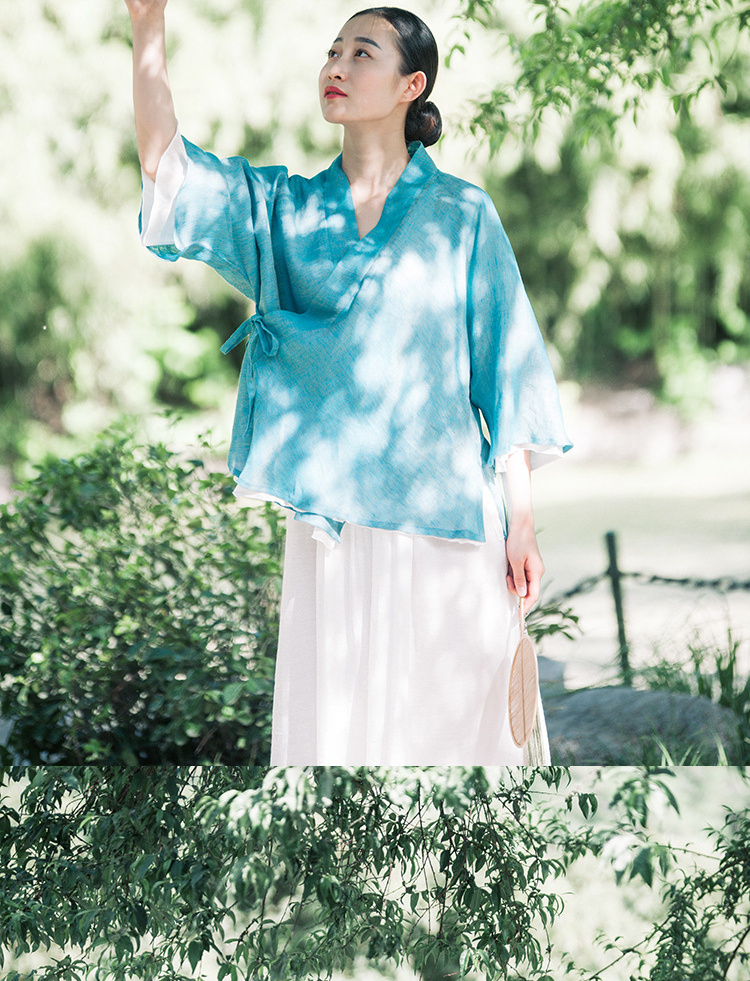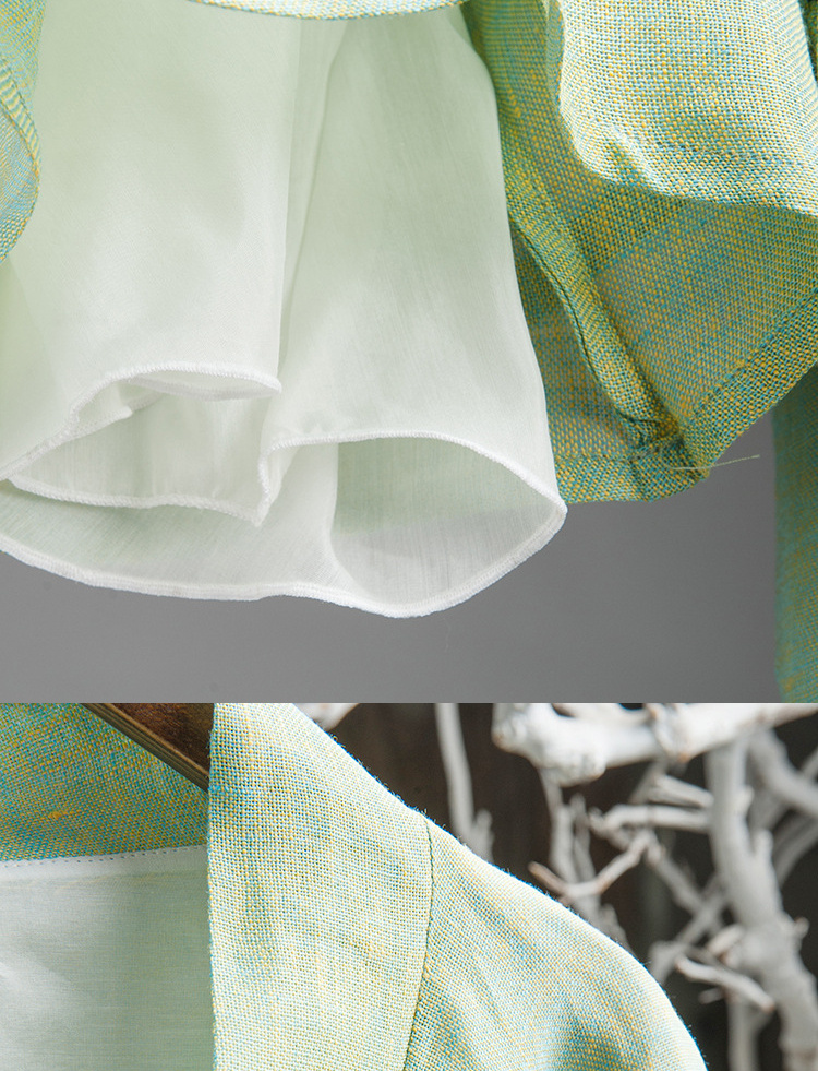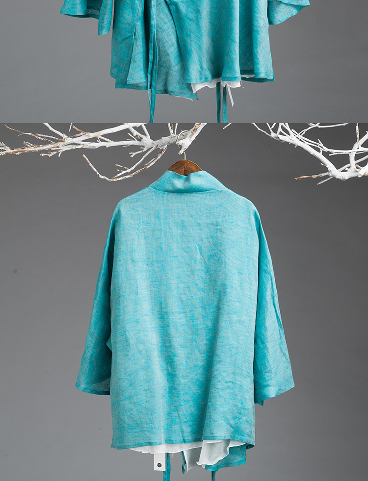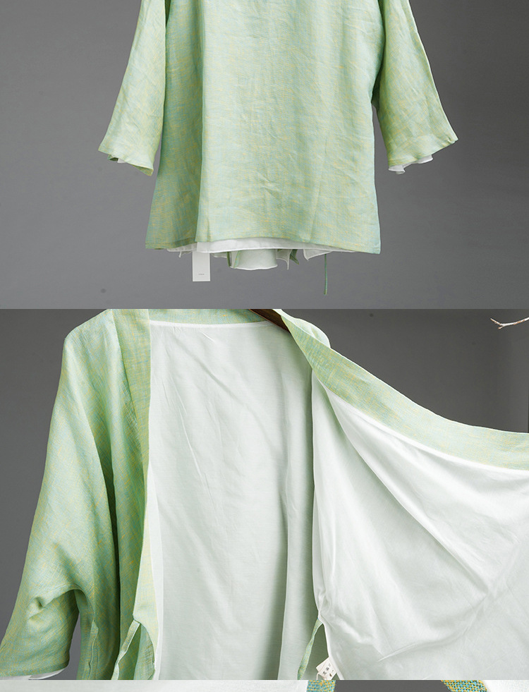 中式民族风色织亚麻禅意禅茶汉服上衣P-17011 。