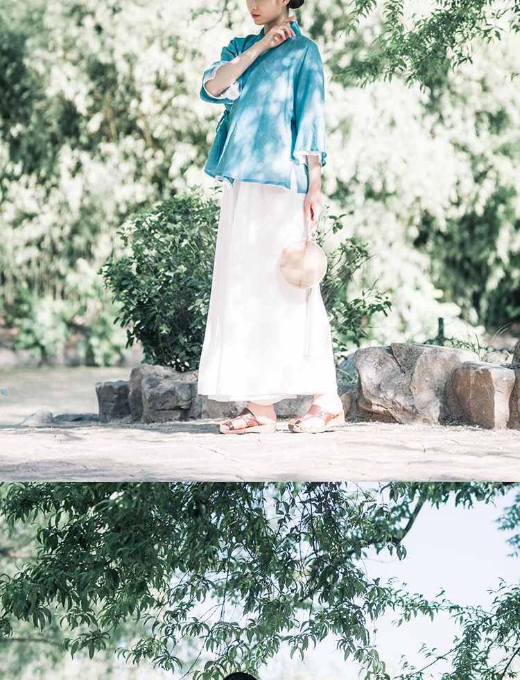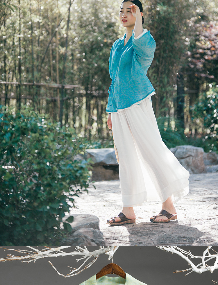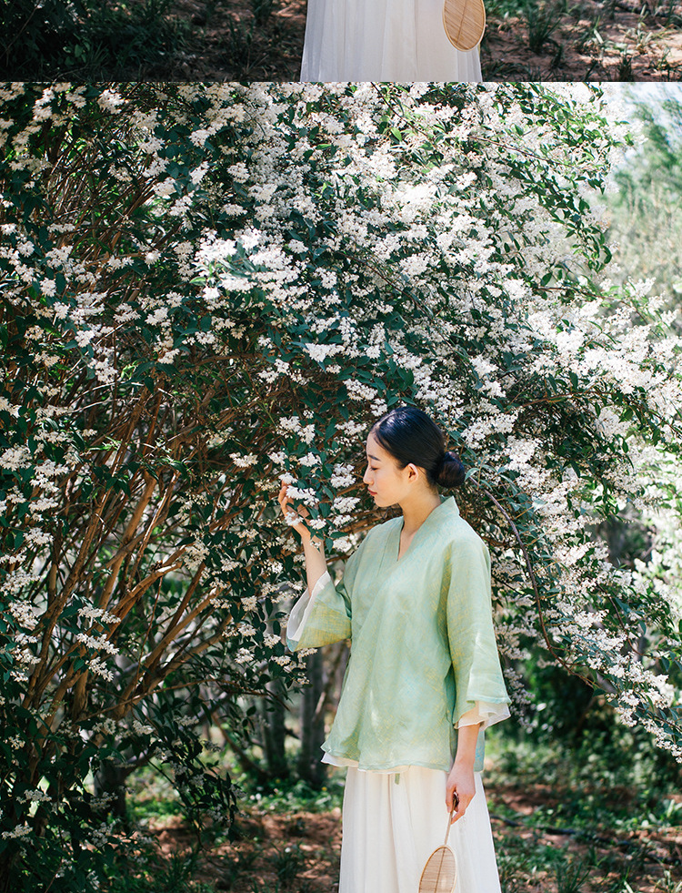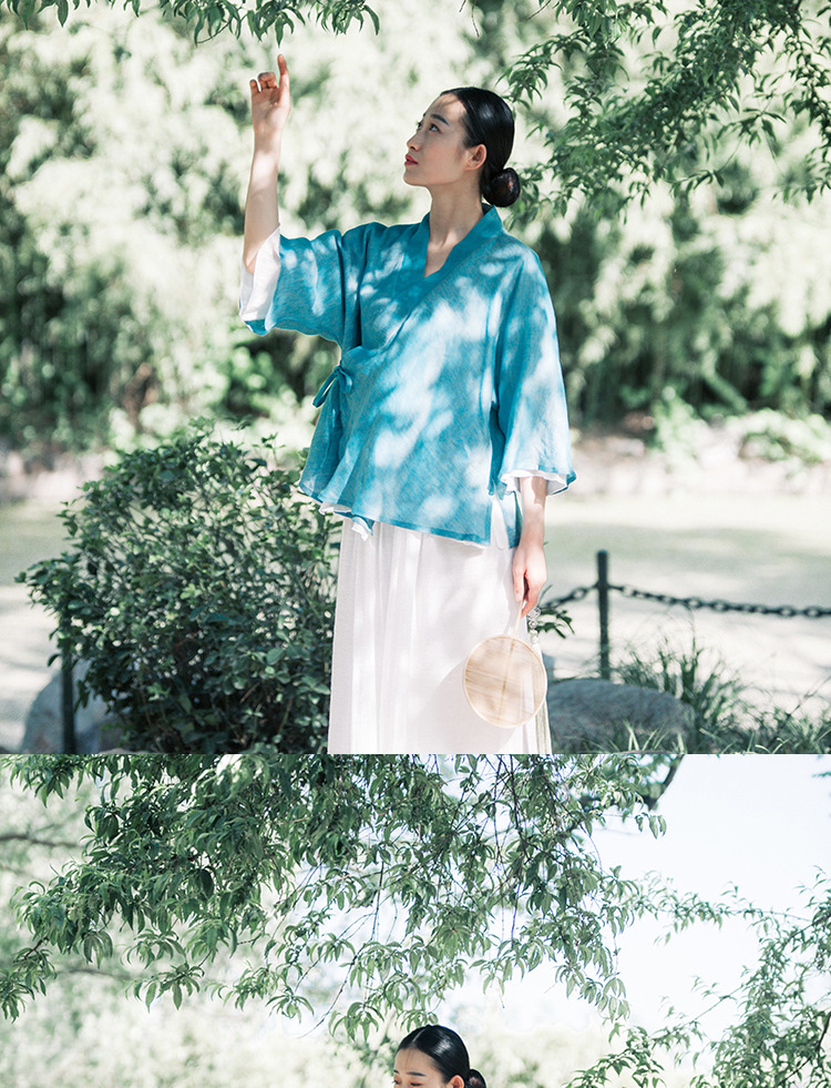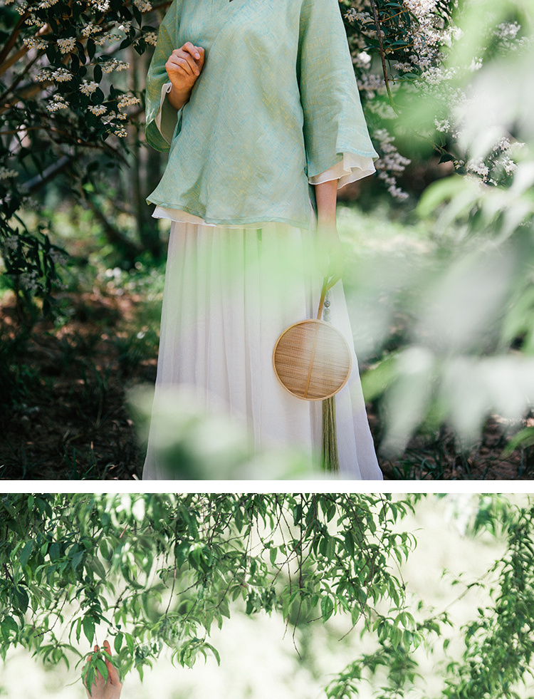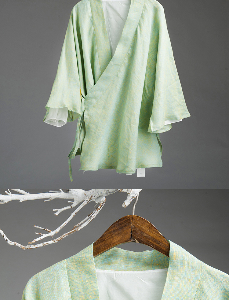 中式民族风色织亚麻禅意禅茶汉服上衣P-17011 。
