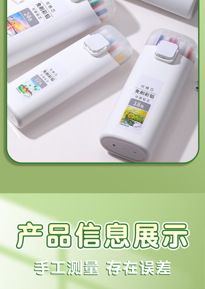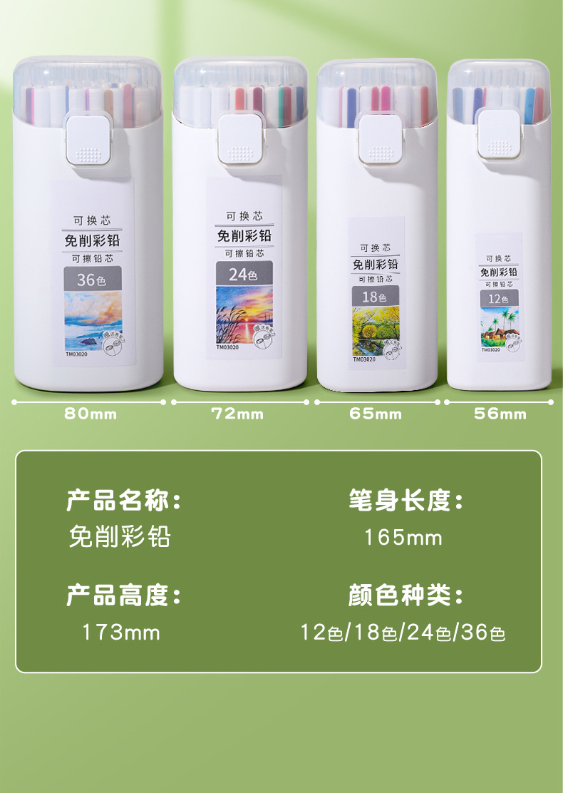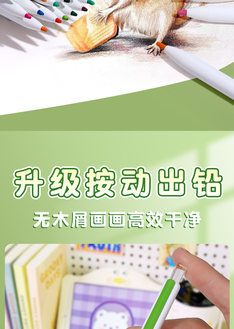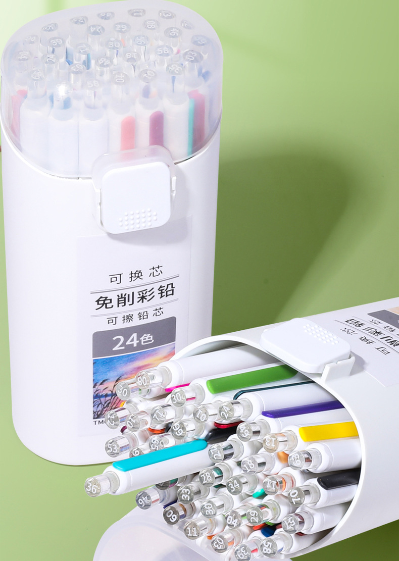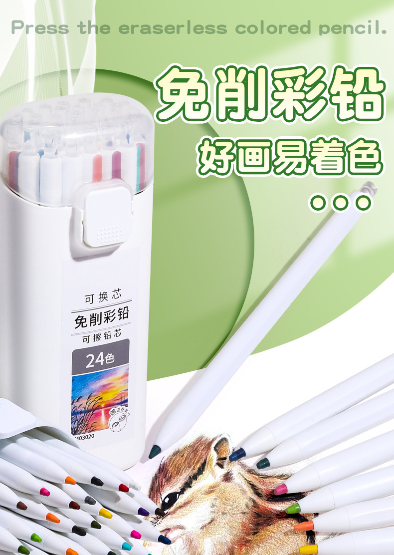 【免削可换按动自动彩铅!买就送一体式卷笔刀】免削可换芯彩色按动自动铅笔 可擦油性彩铅 儿童画画学生素描美术笔