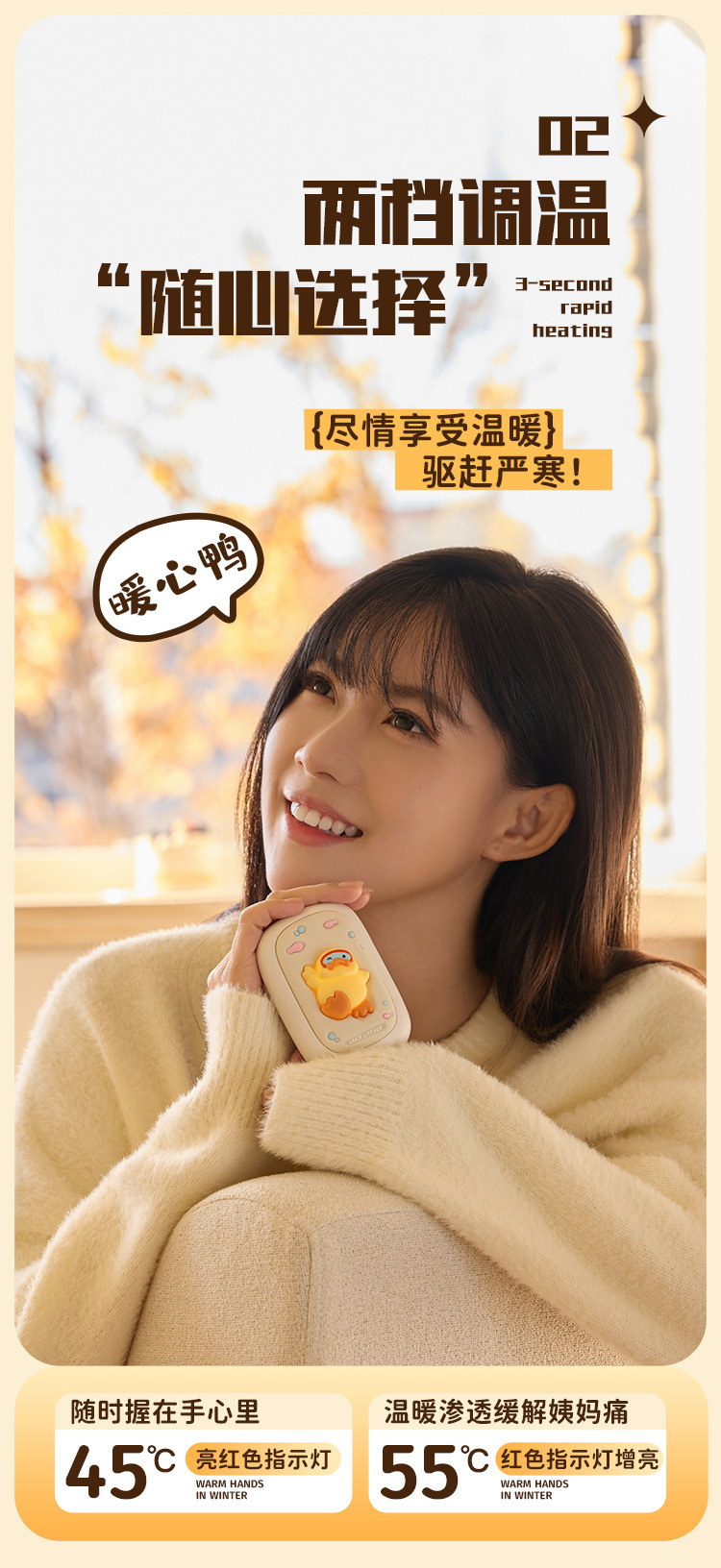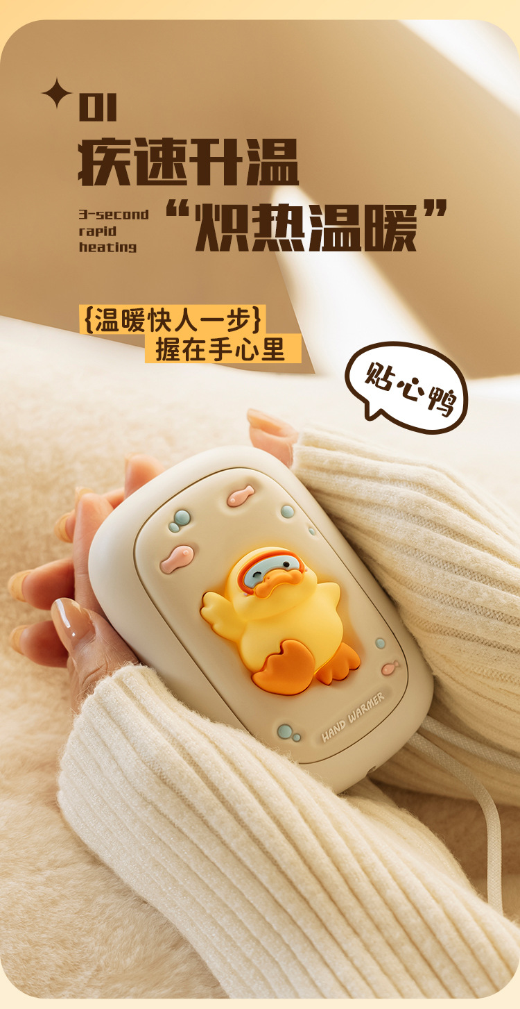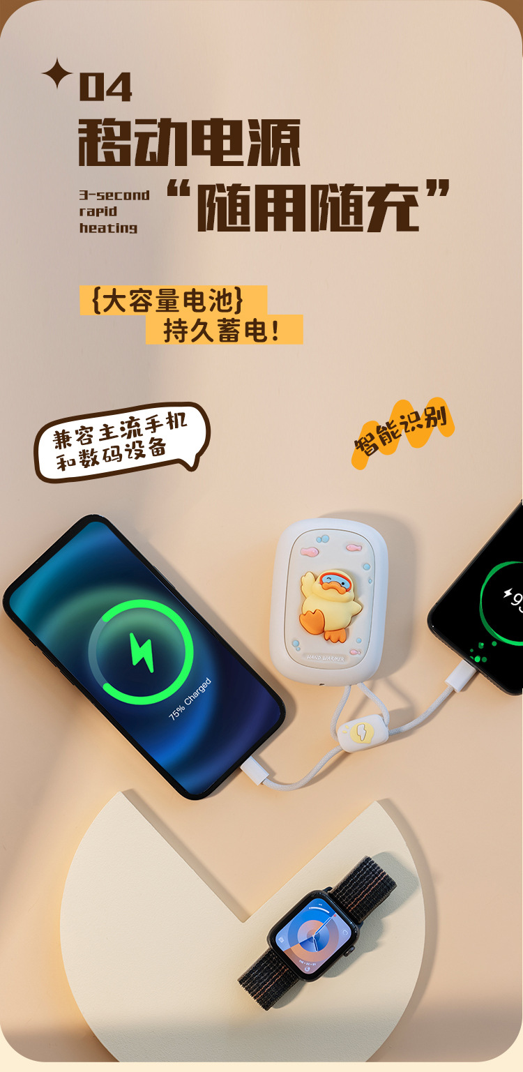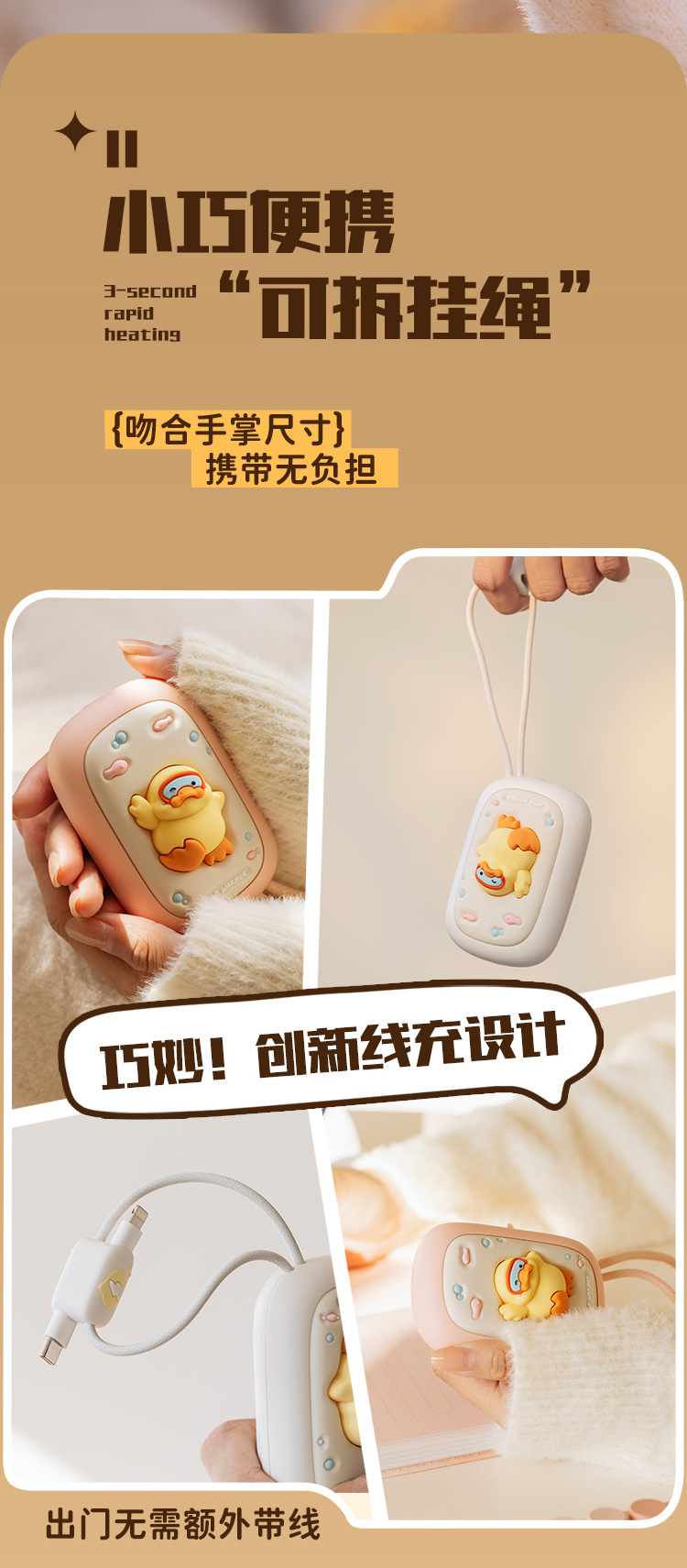 【暖手鸭!二合一暖心好物!】暖手宝 充电宝带线二合一 便携式迷你暖宝宝 生日礼物调温好物