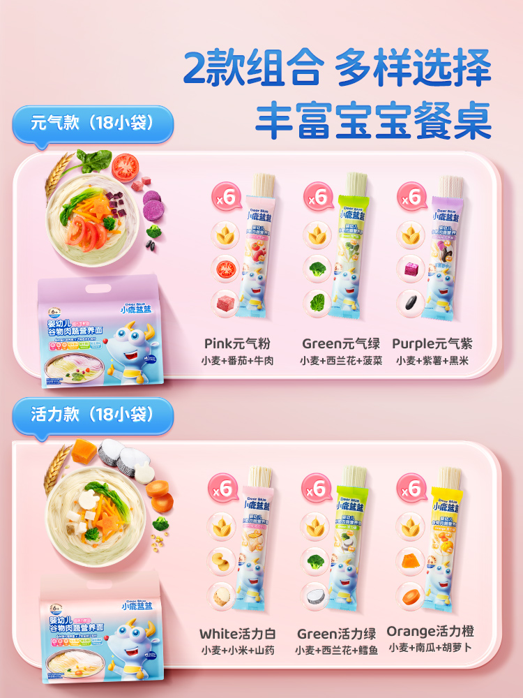 【组合爆款直降】【婴幼儿谷物肉蔬营养面/元气款+活力款】900g