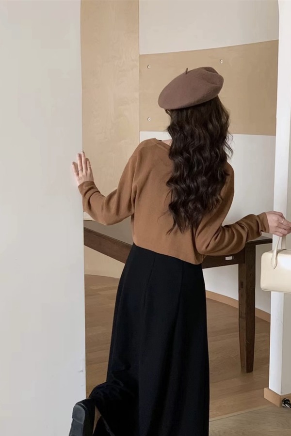 Le Malene 棕色针织开衫吊带裙套装 21228