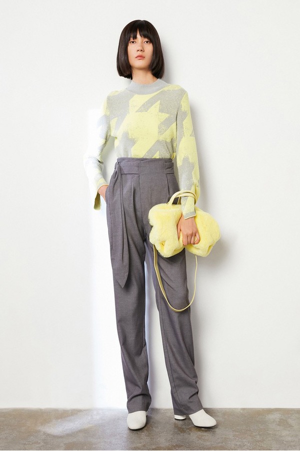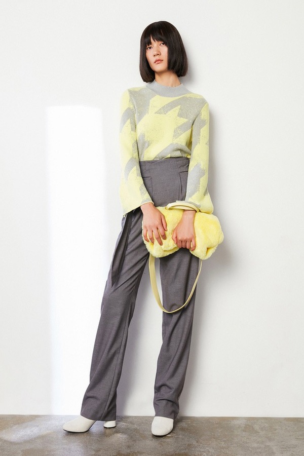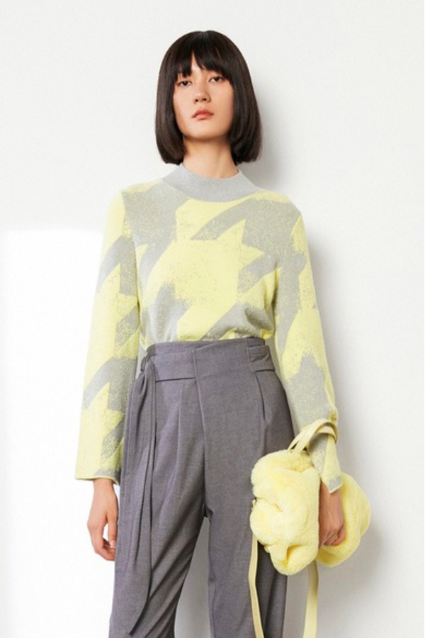 LILY 时髦撞色涂鸦喇叭袖毛衣 9602