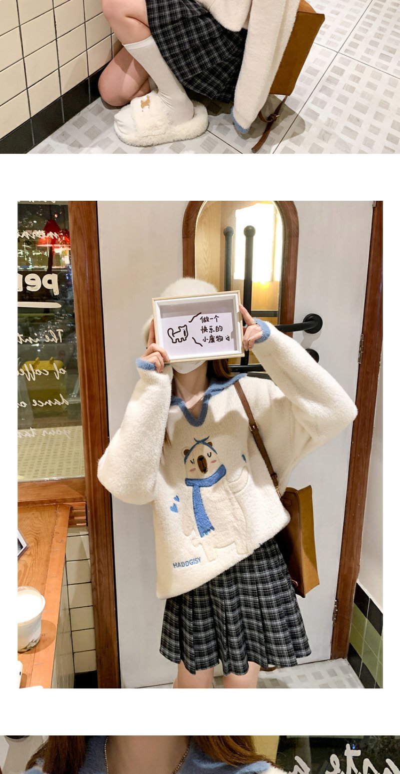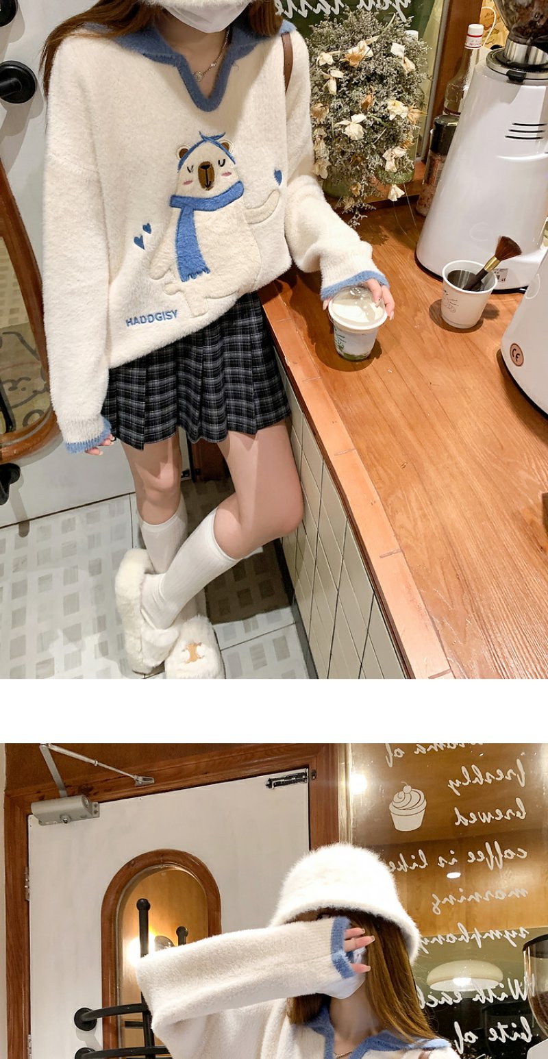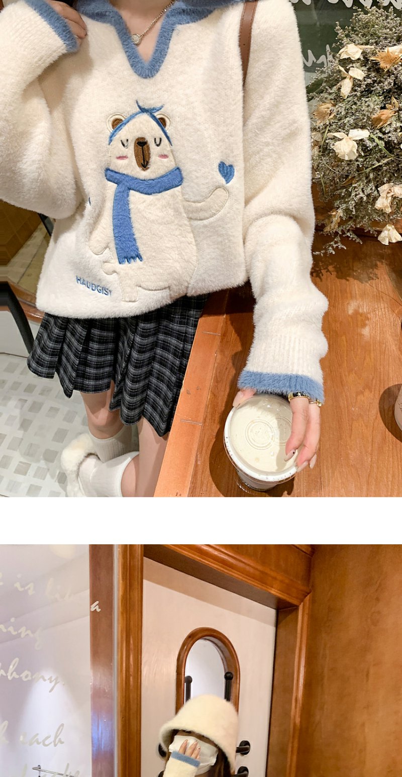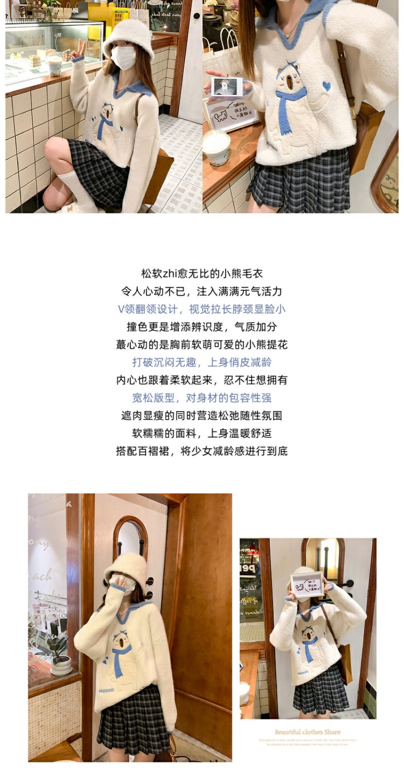 <曾小咸推荐>【甜美减龄】撞色领小熊印花毛衣