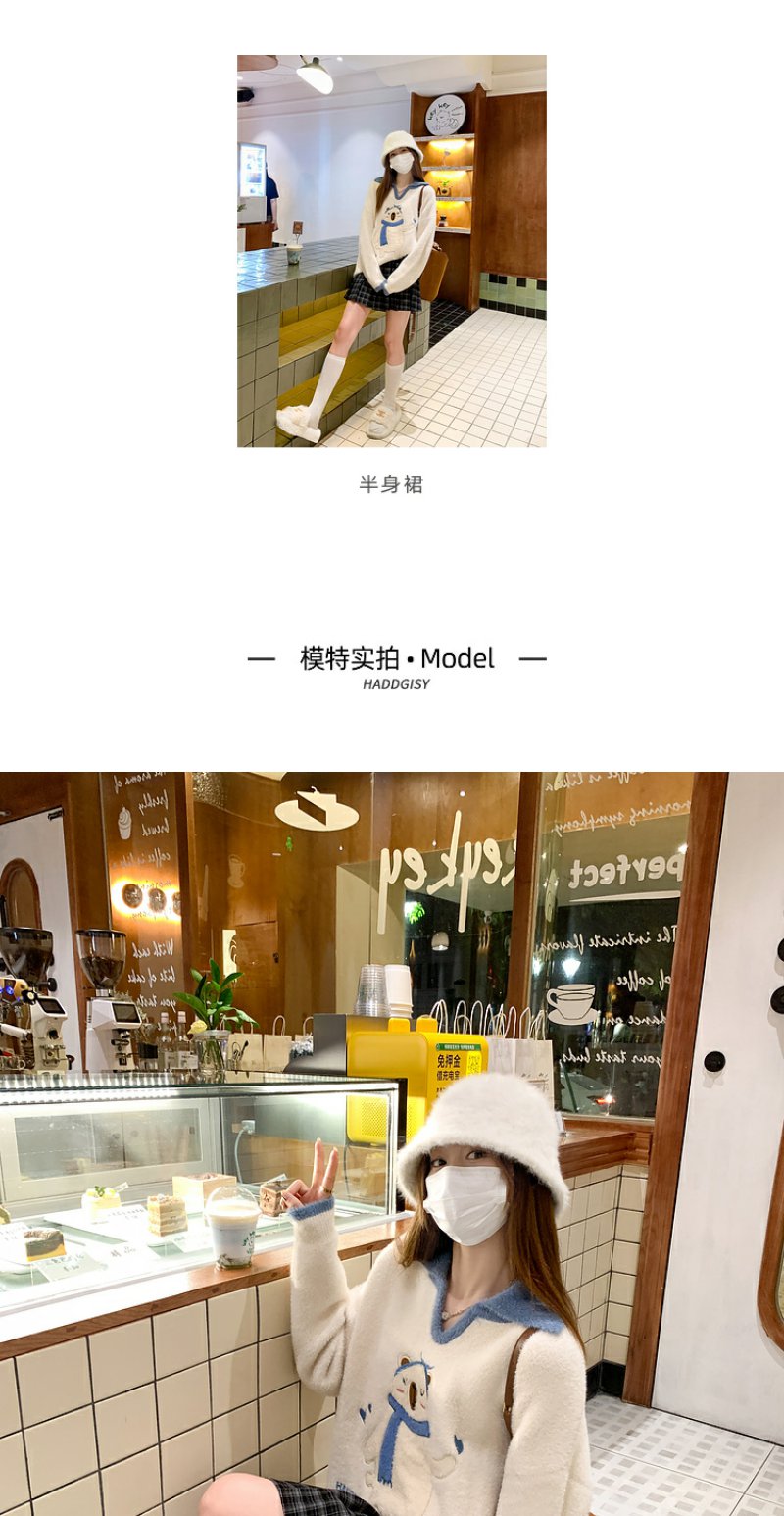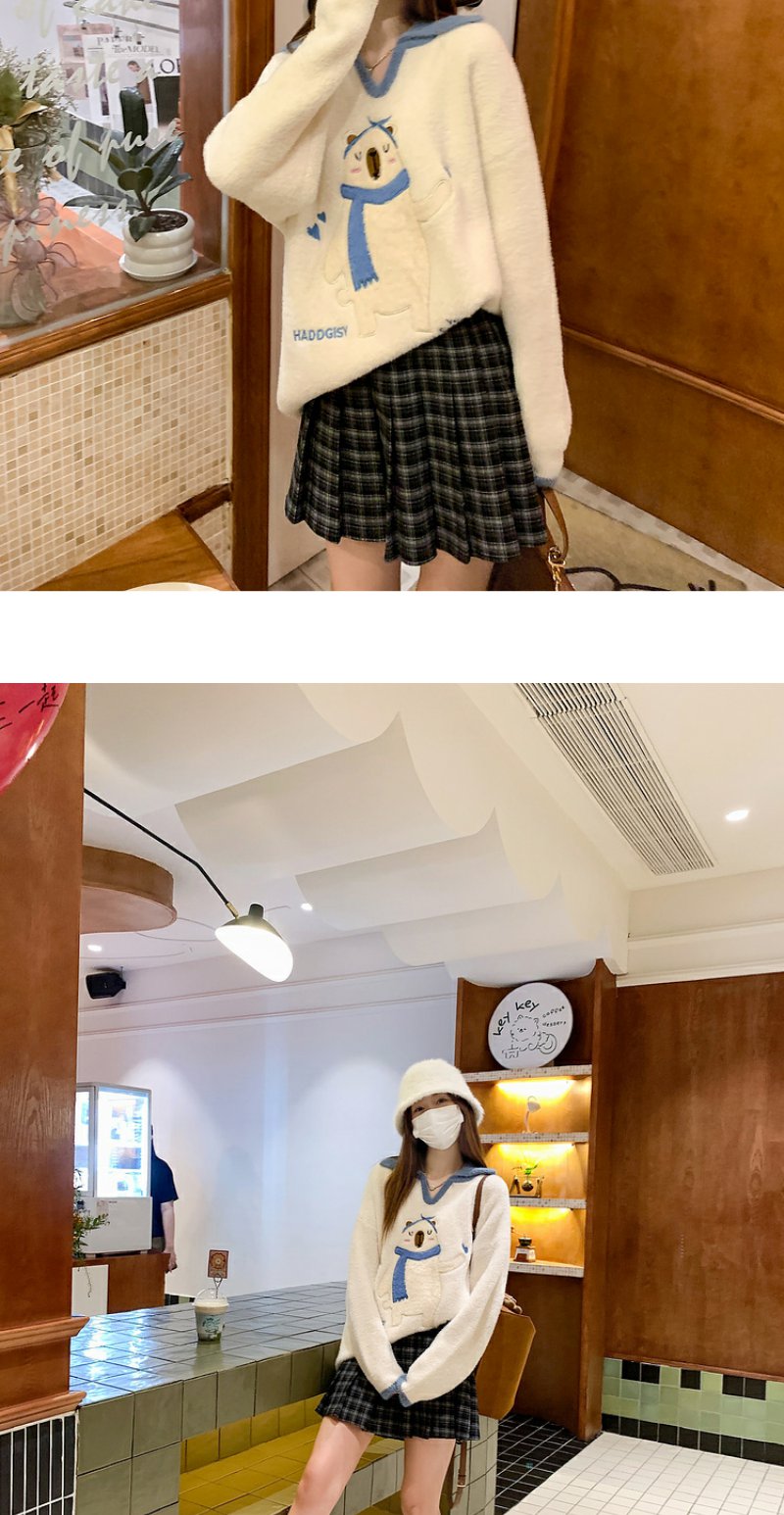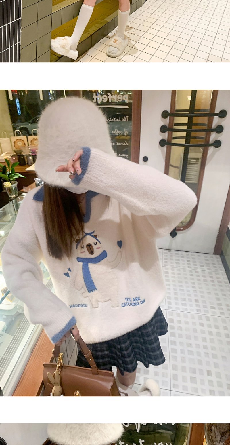 <曾小咸推荐>【甜美减龄】撞色领小熊印花毛衣